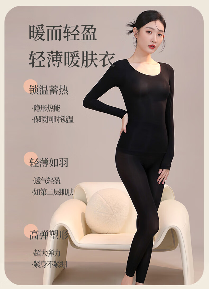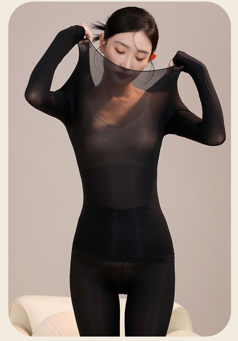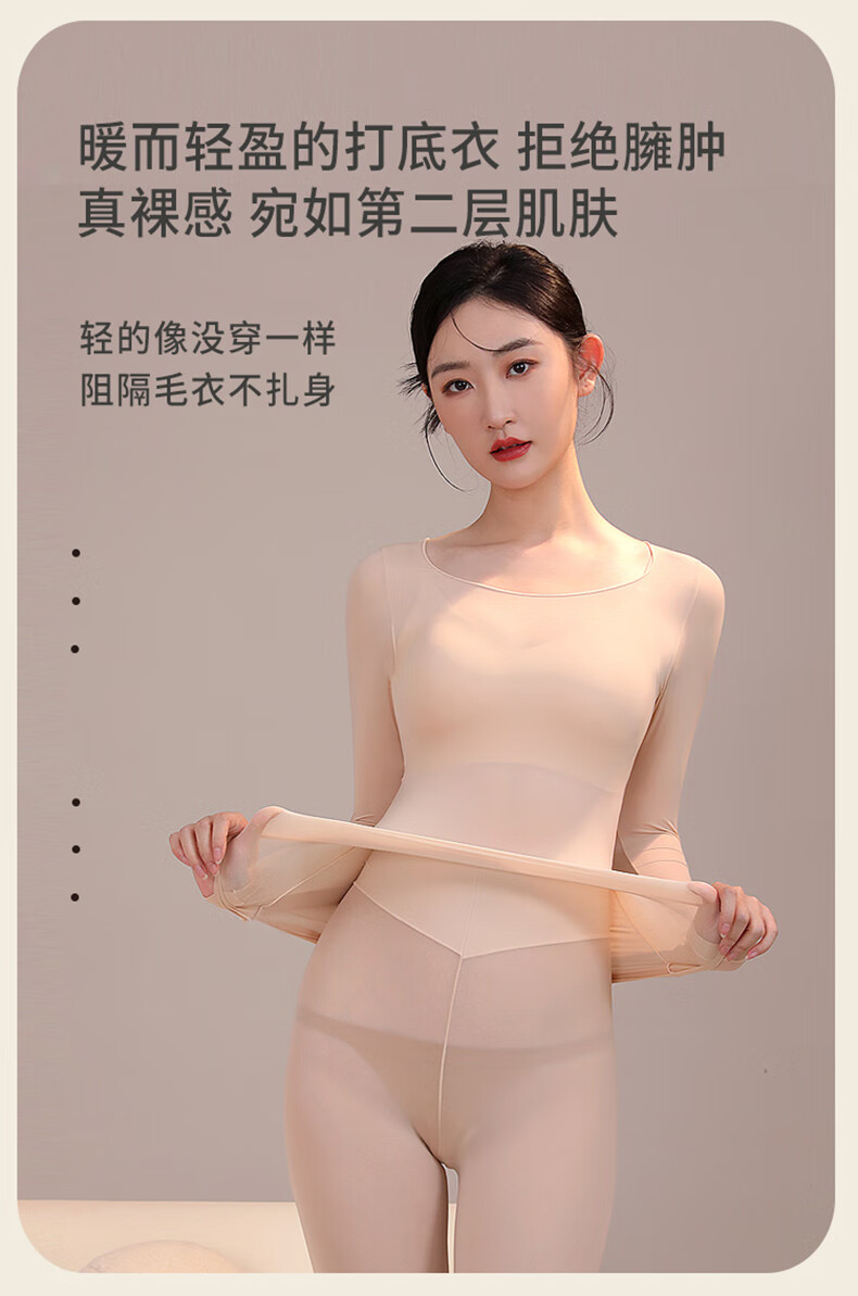 六月玫瑰 保暖内衣女新款面膜肌底衣轻薄打底秋衣秋裤保暖套装 单上衣2件装(肤+肤) 均码