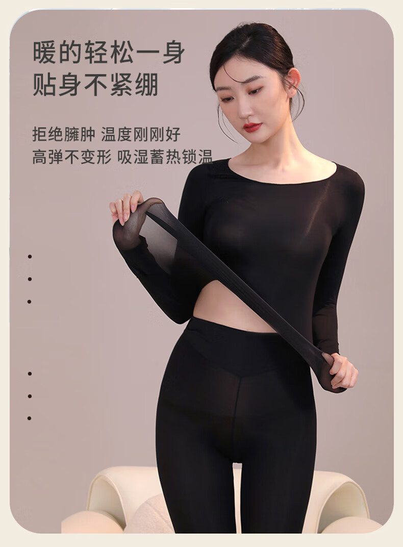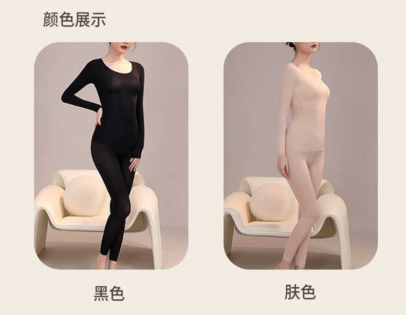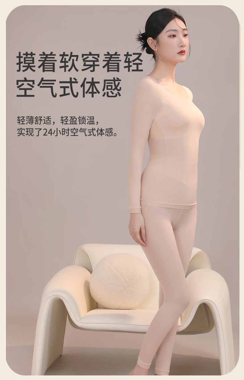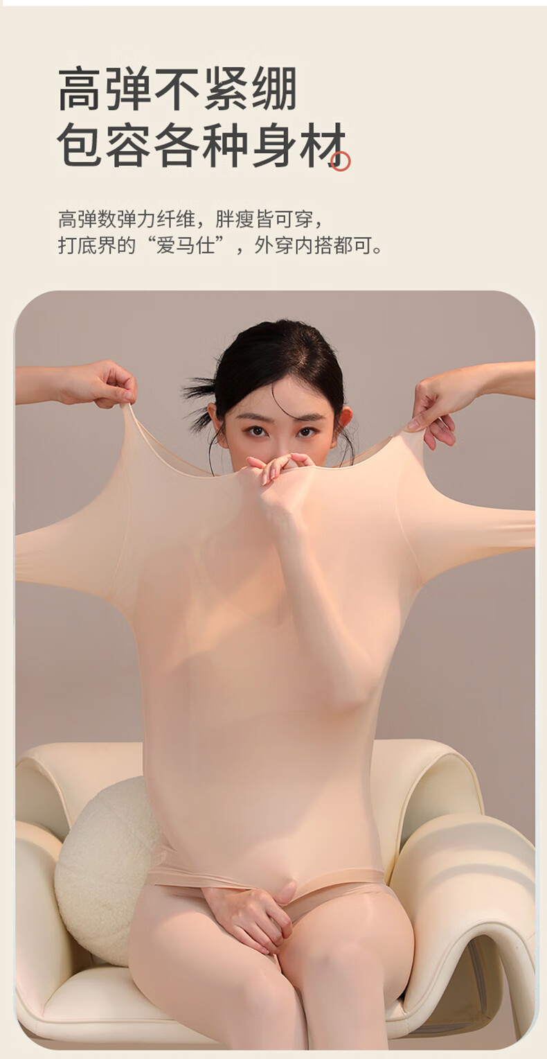 六月玫瑰 保暖内衣女新款面膜肌底衣轻薄打底秋衣秋裤保暖套装 单上衣2件装(肤+肤) 均码