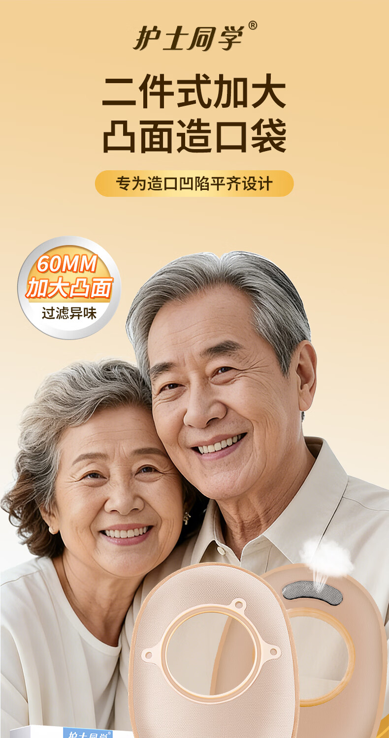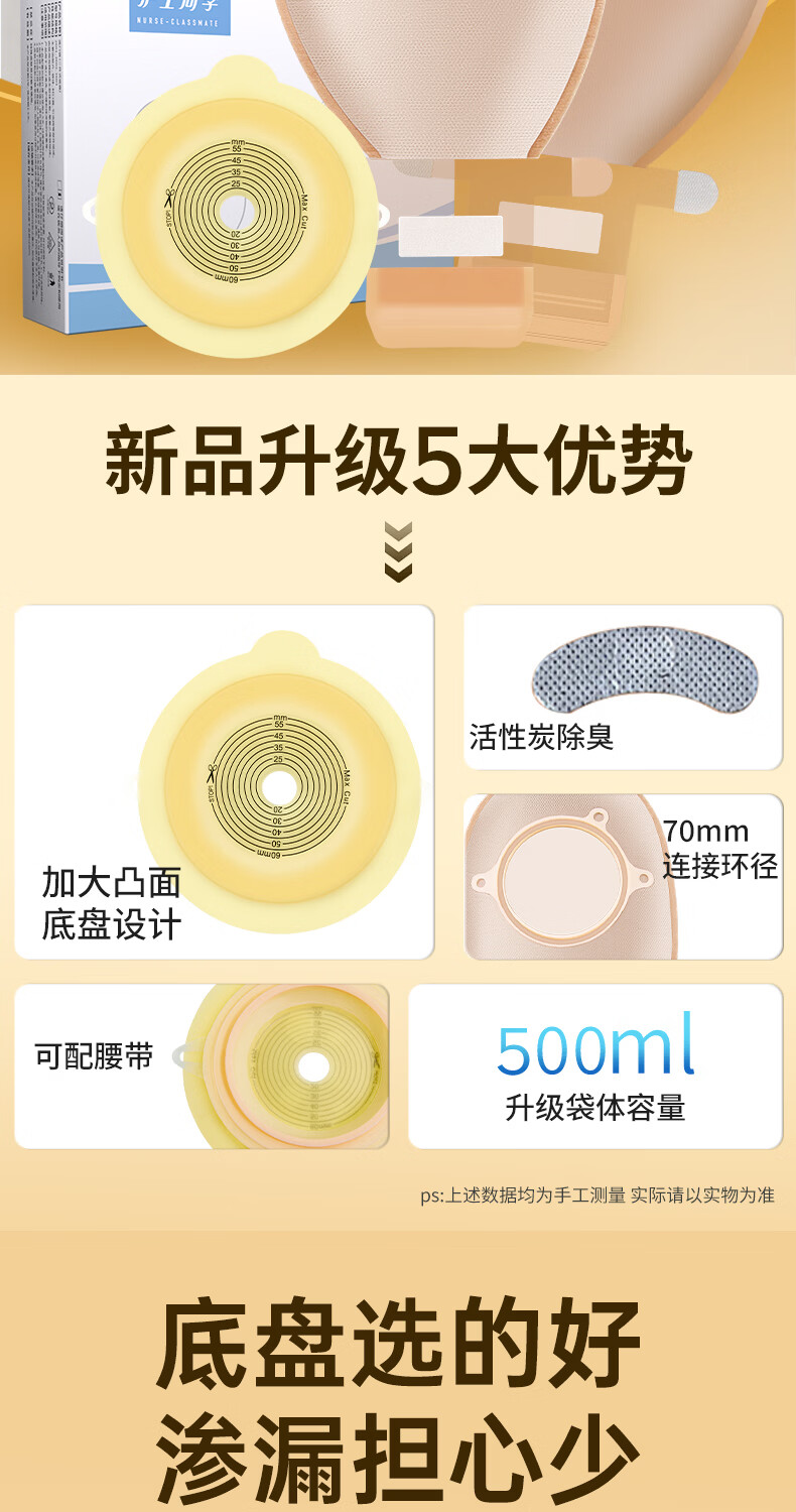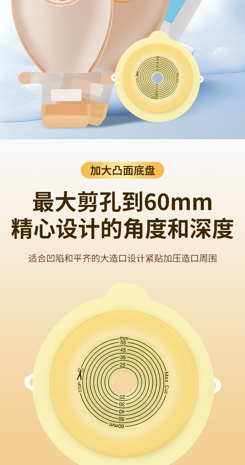 护士同学二件式造口袋60MM大剪孔凸面底盘碳片排气一次性医用两件式造瘘袋 10个袋子【囤货装】