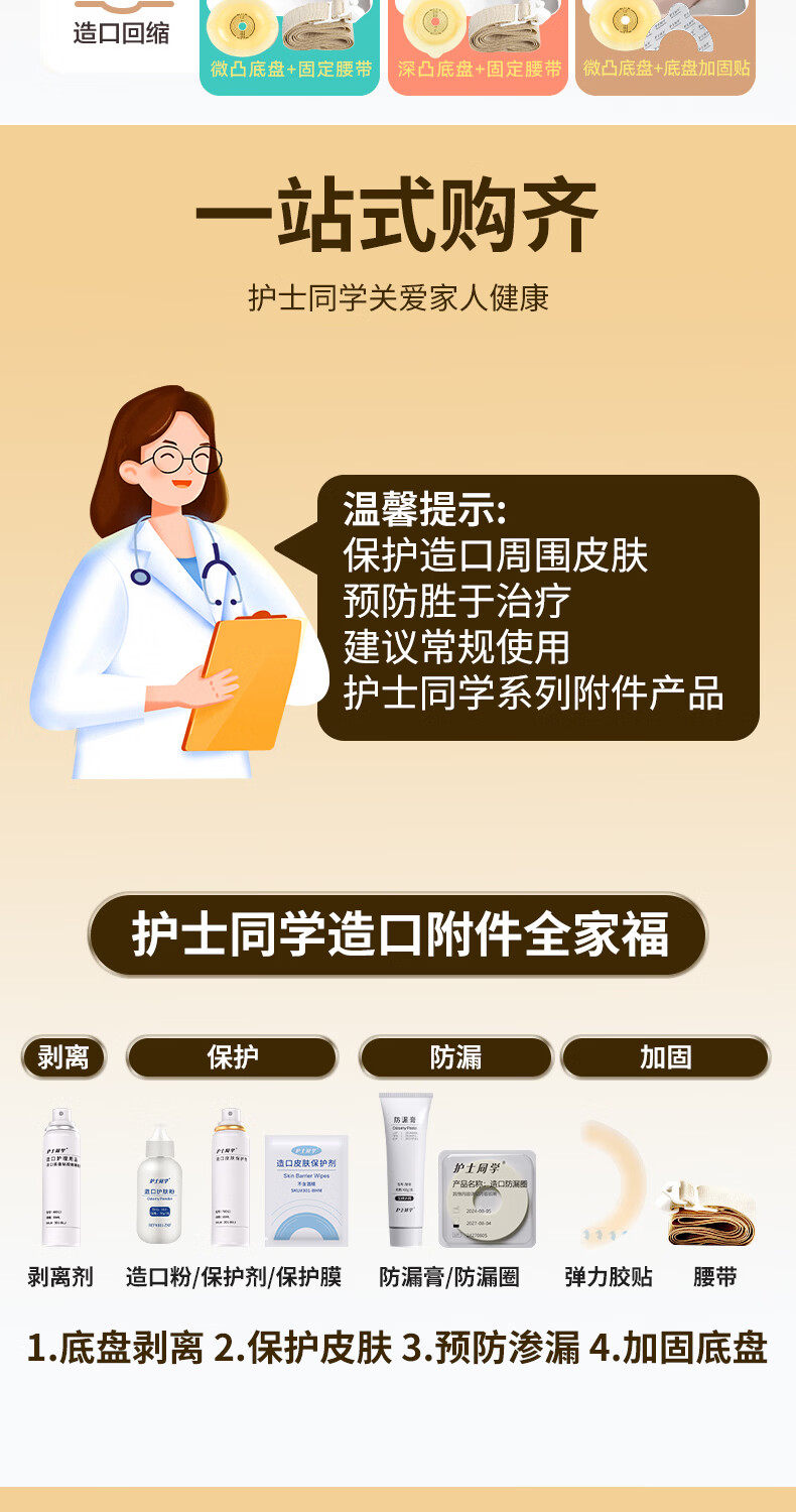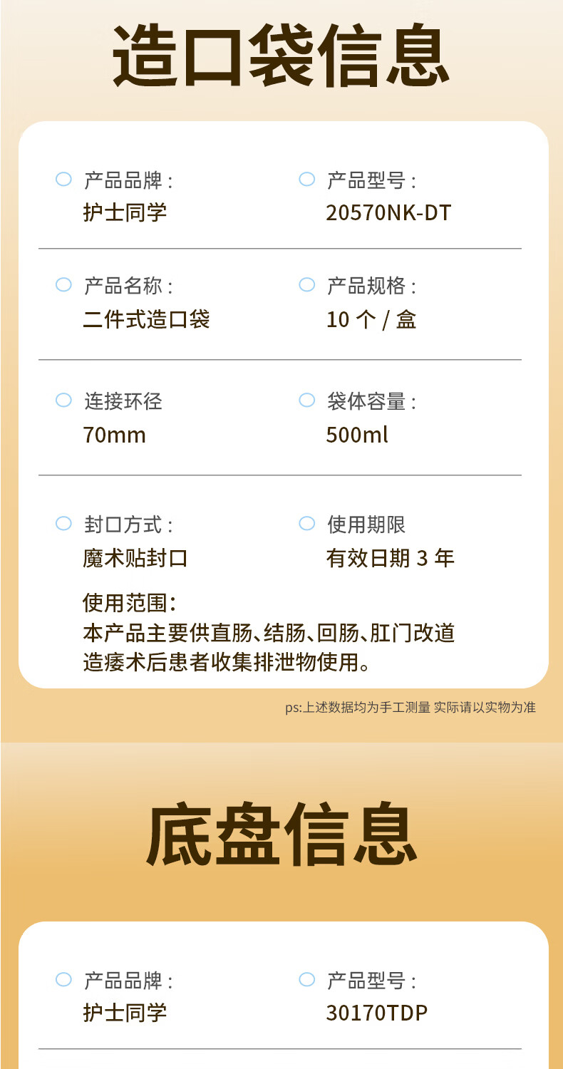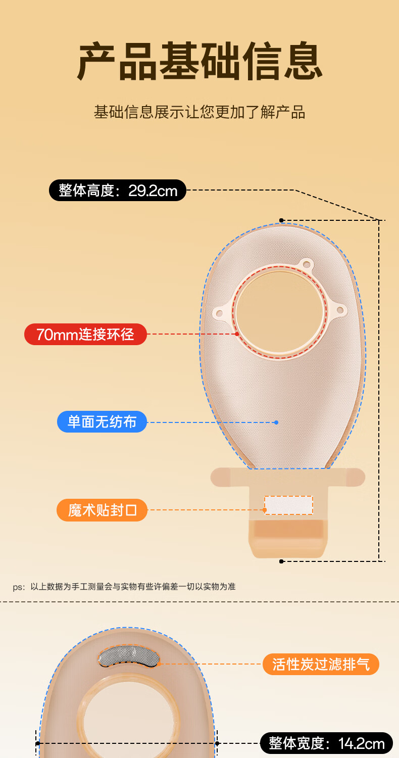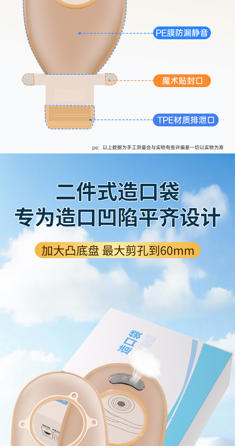 护士同学二件式造口袋60MM大剪孔凸面底盘碳片排气一次性医用两件式造瘘袋 10个袋子【囤货装】