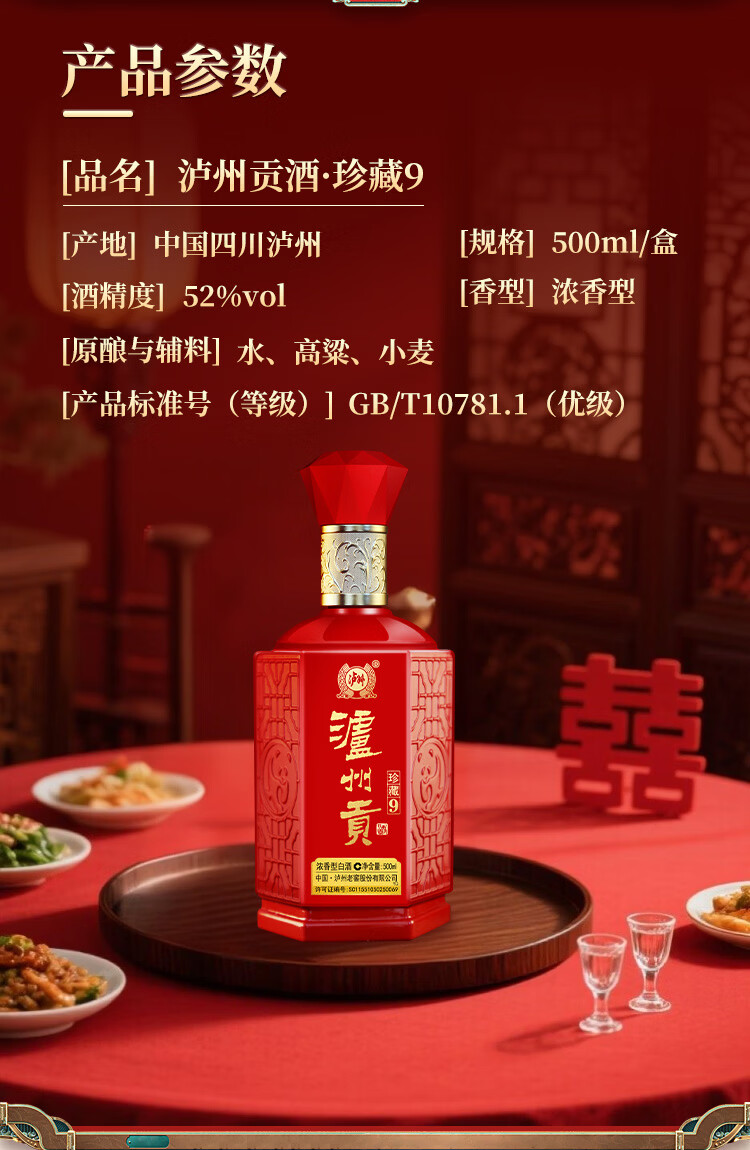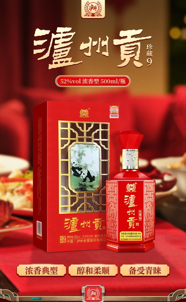 泸州老窖股份公司52度浓香型白酒整箱粮食酒白酒礼盒自饮送礼酒水商务用酒 52度 500mL 6瓶 【泸州贡珍藏9】
