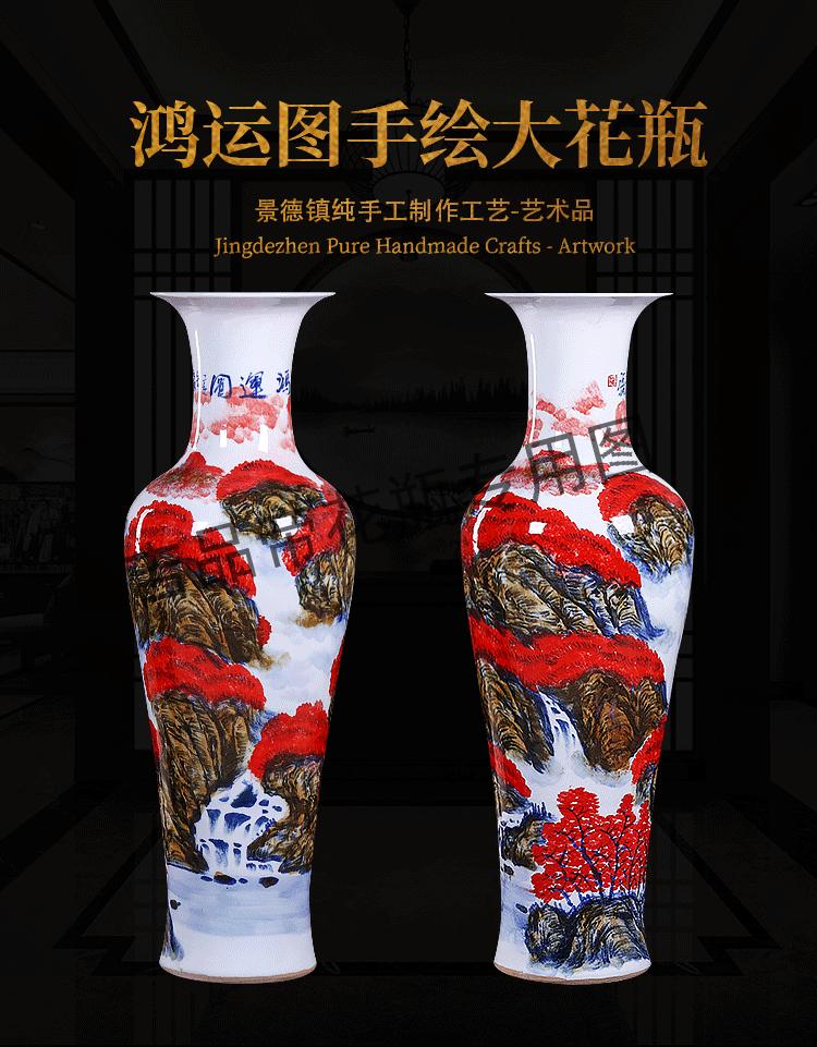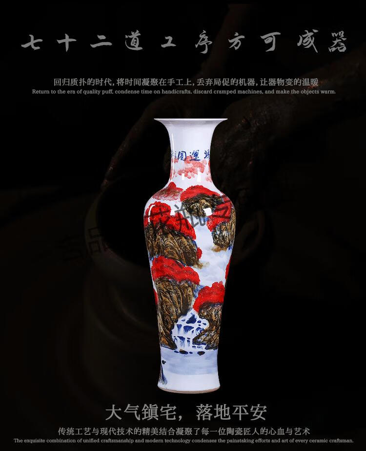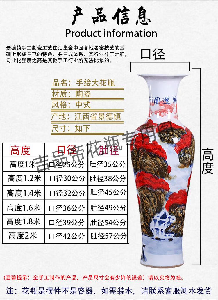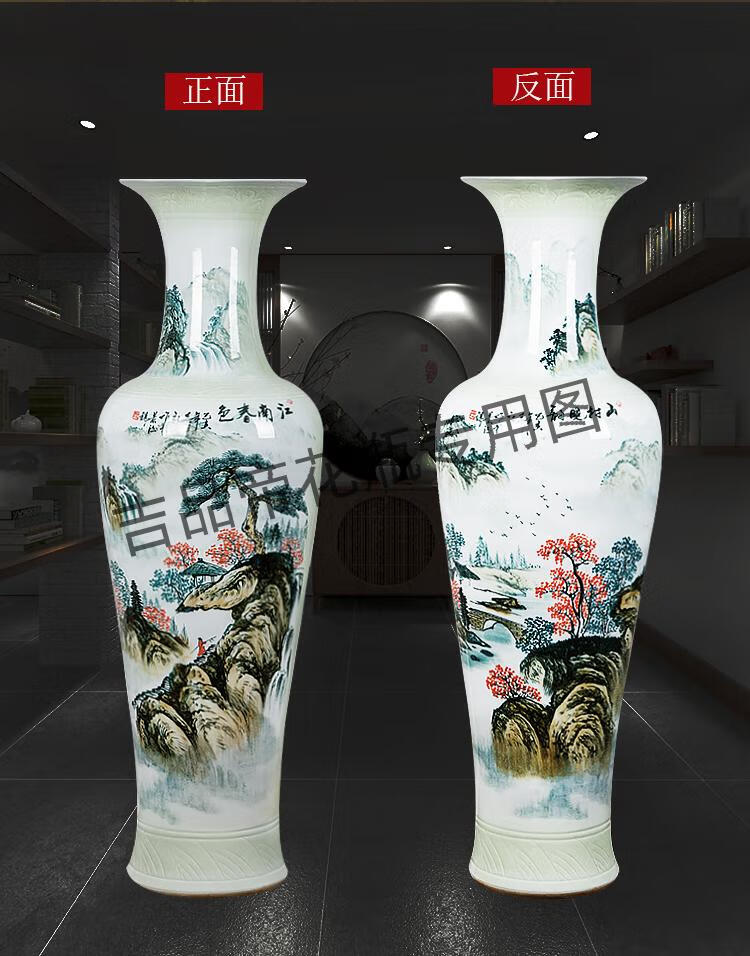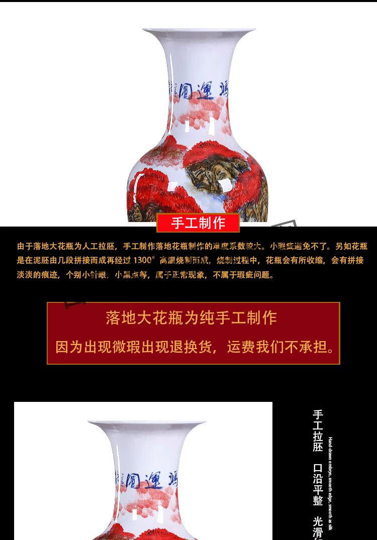 吉品帝景德镇手绘陶瓷器落地大花瓶鸿运图客厅家居新房开业装饰中式摆件 高-江南春色-单个 送底座 200cm