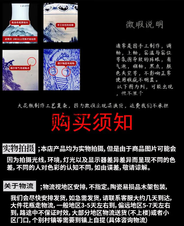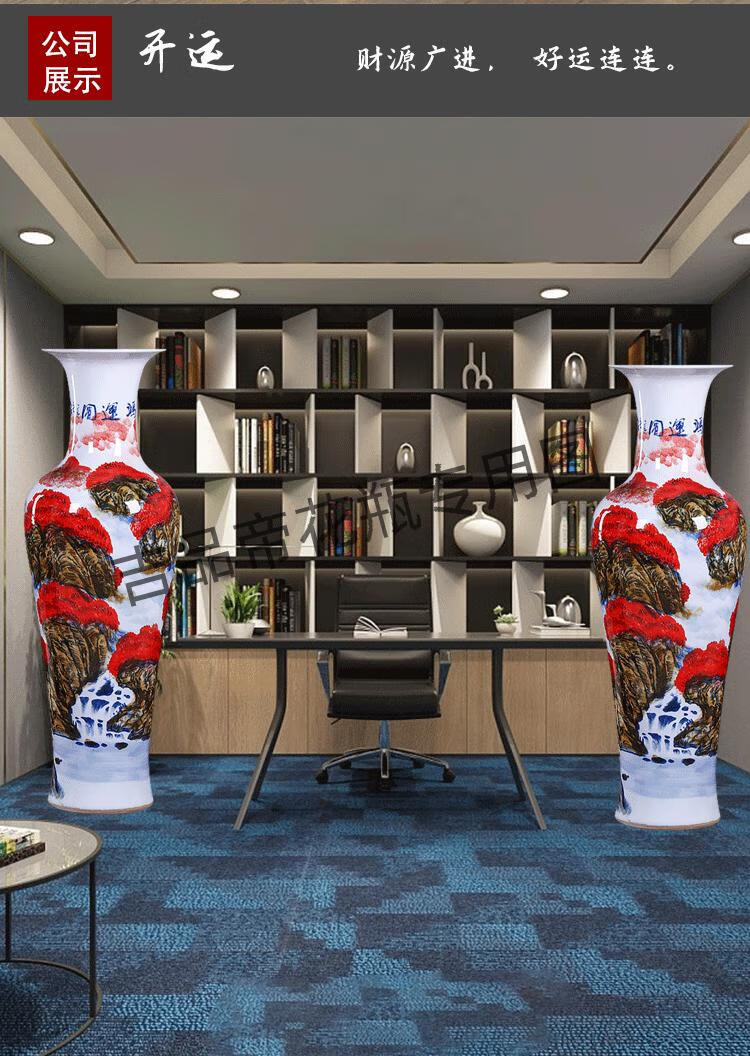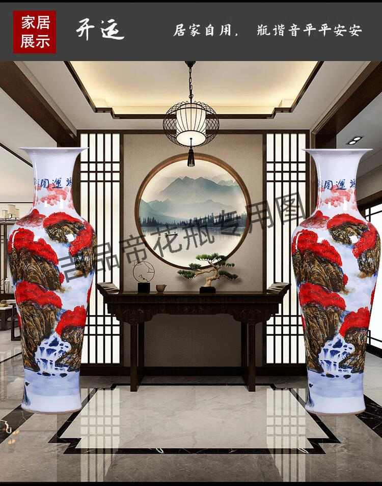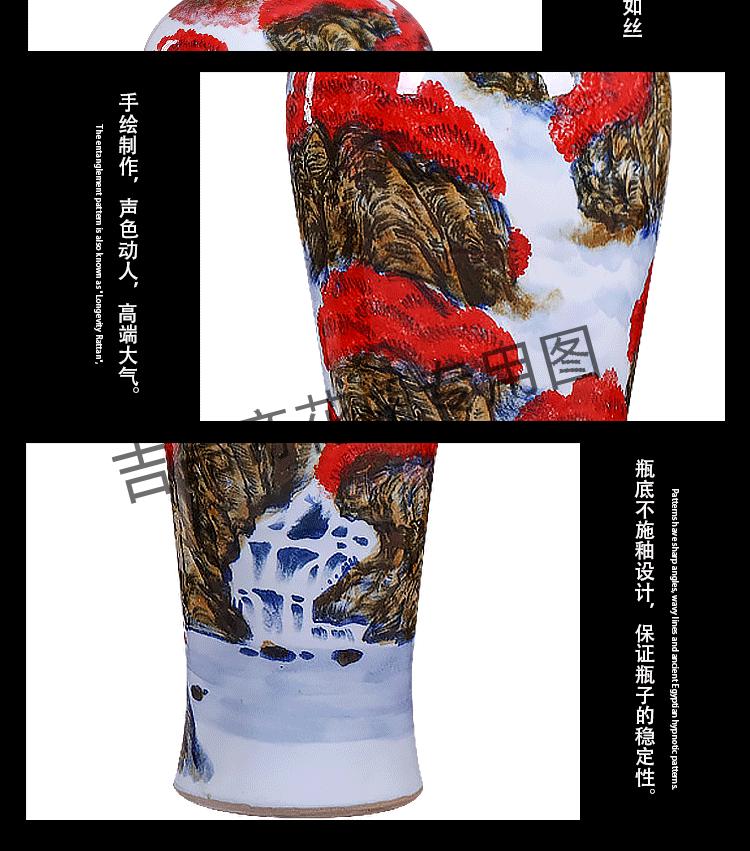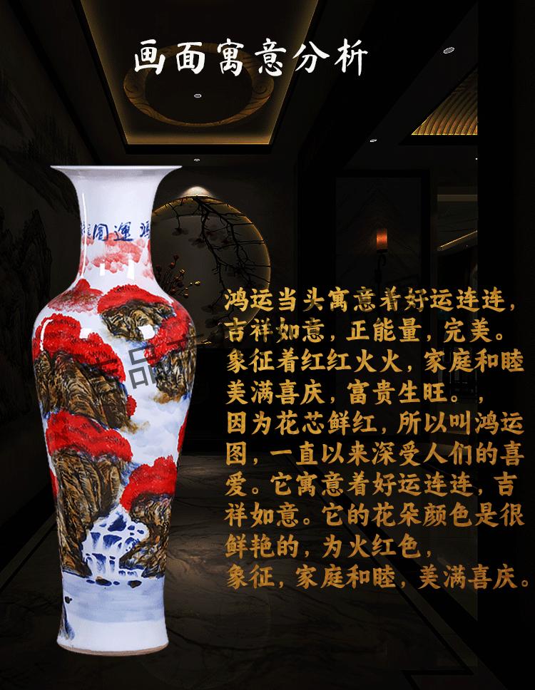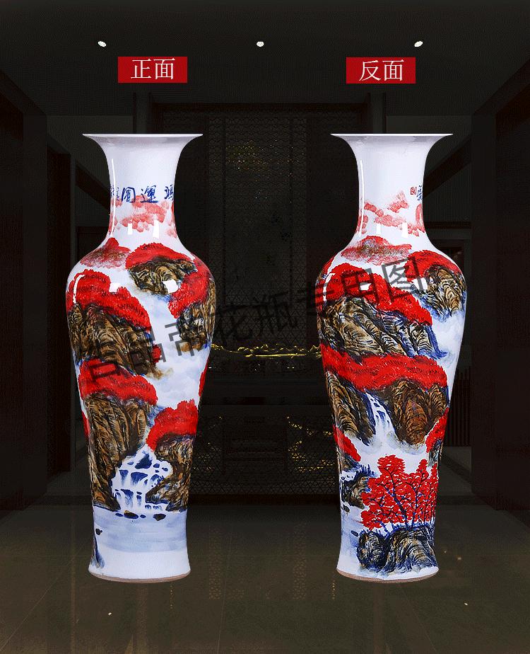 吉品帝景德镇手绘陶瓷器落地大花瓶鸿运图客厅家居新房开业装饰中式摆件 高-江南春色-单个 送底座 200cm