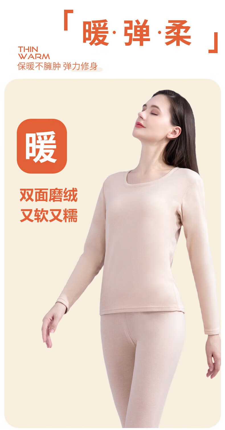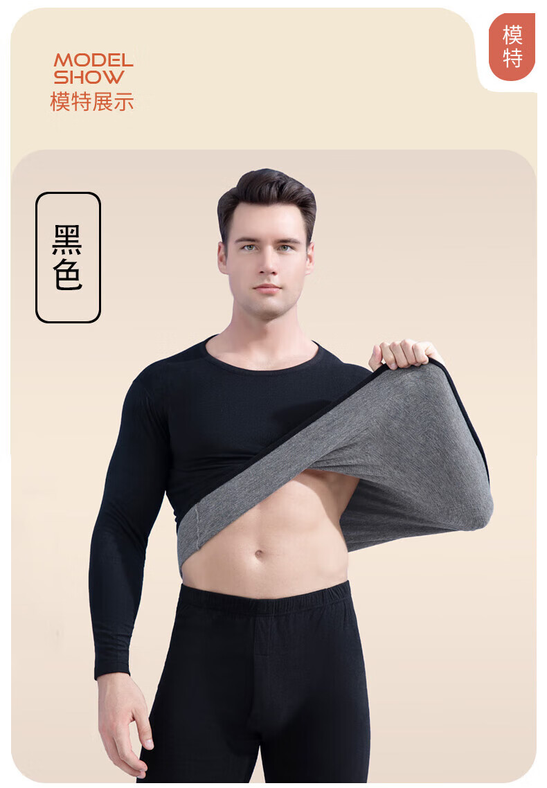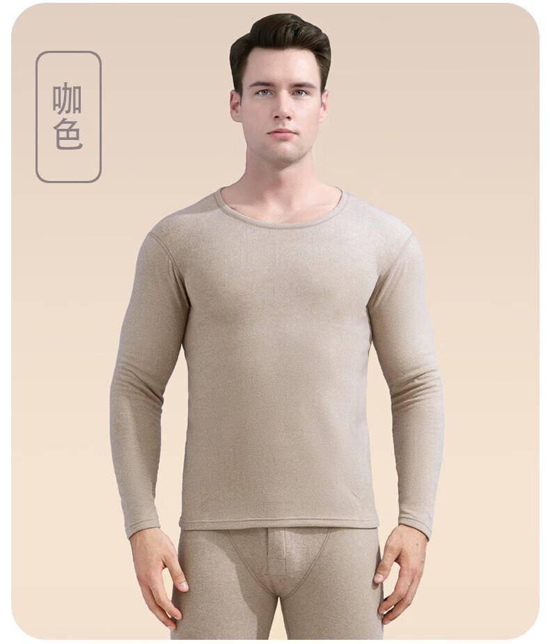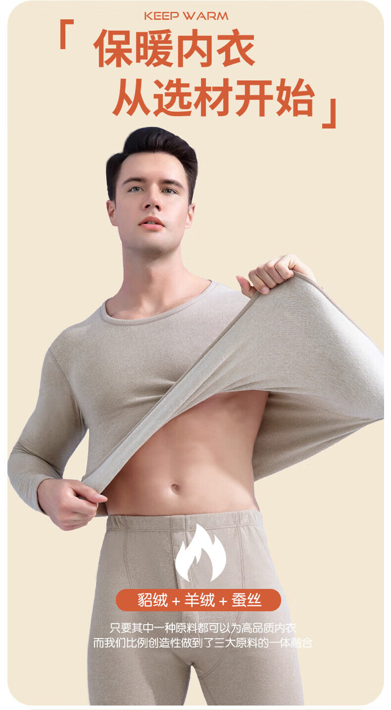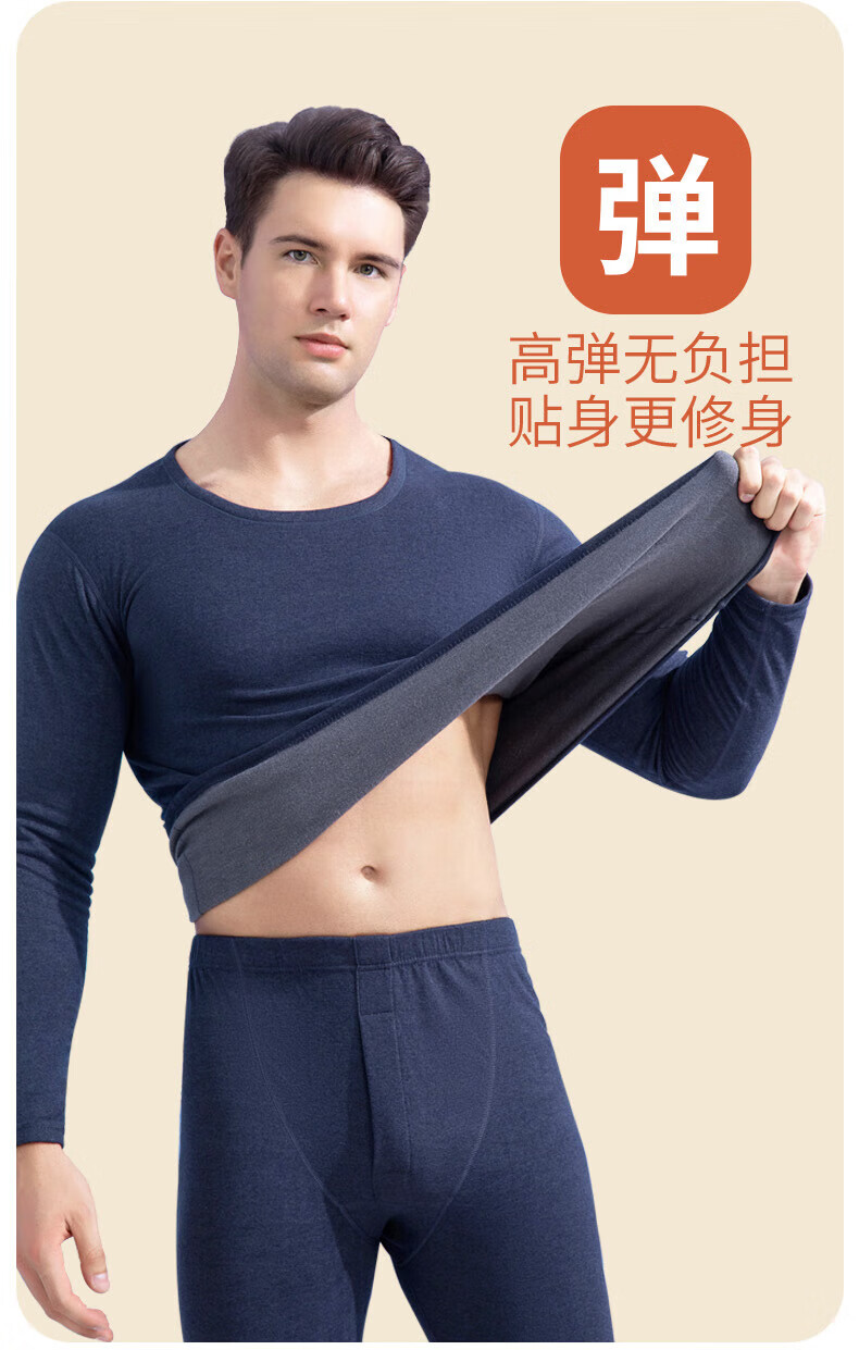 宜而爽纯色貂绒山羊绒蚕丝保暖套装圆领男女同款情侣款修身秋衣秋裤 男款【藏青】 L