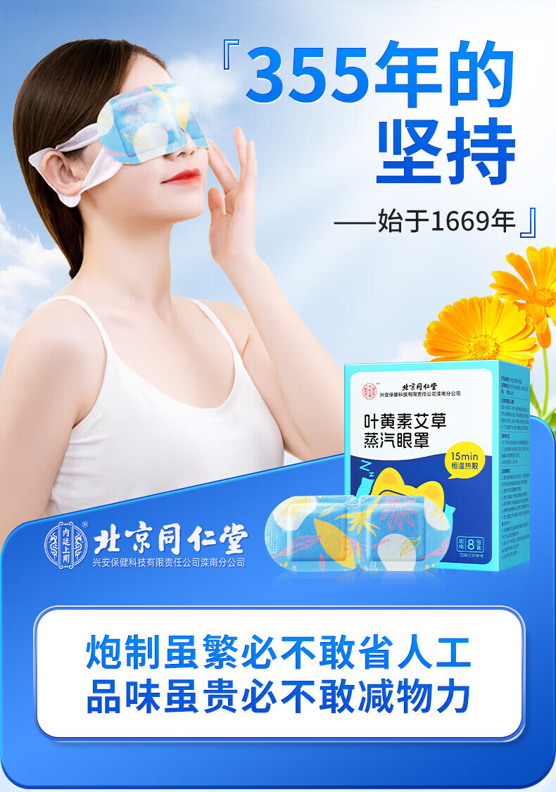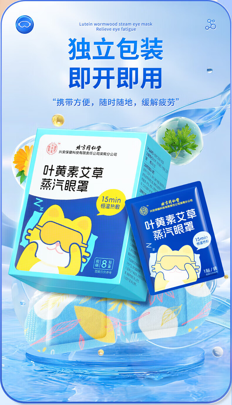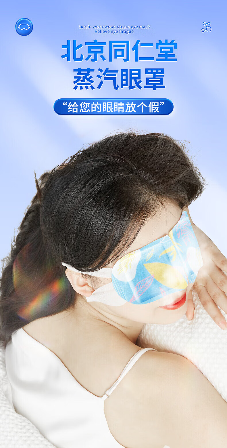 内廷上用北京同仁堂叶黄素艾草蒸汽眼罩缓解眼疲劳干涩热敷遮光睡眠贴 蒸汽热敷眼罩12贴/盒 【1盒体验装】