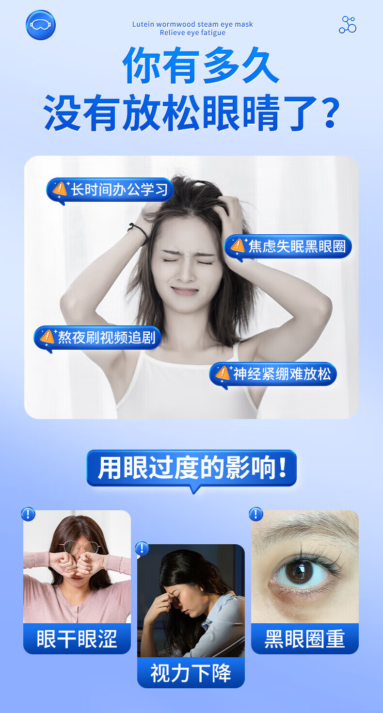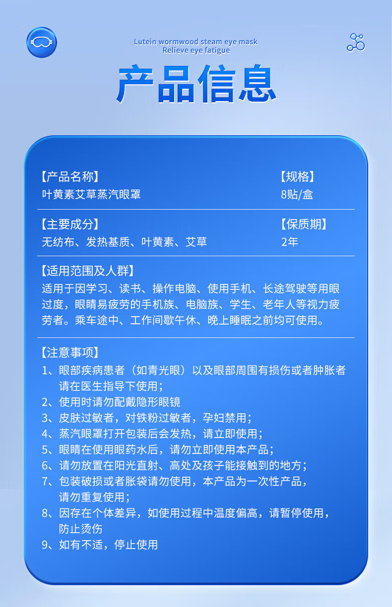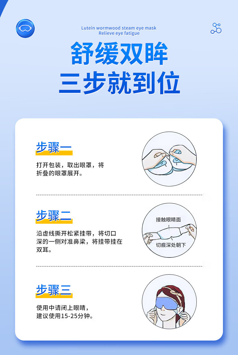 内廷上用北京同仁堂叶黄素艾草蒸汽眼罩缓解眼疲劳干涩热敷遮光睡眠贴 蒸汽热敷眼罩12贴/盒 【1盒体验装】