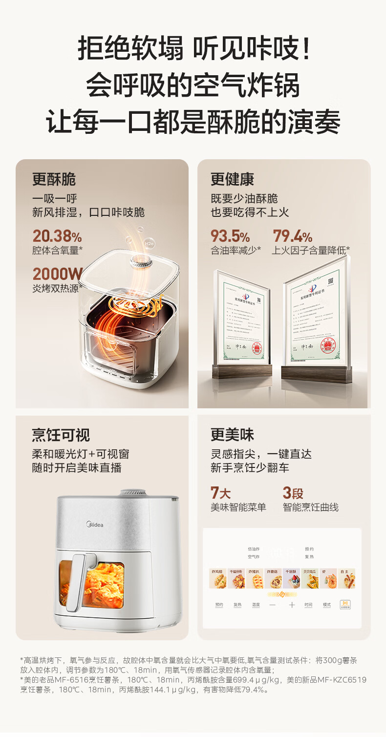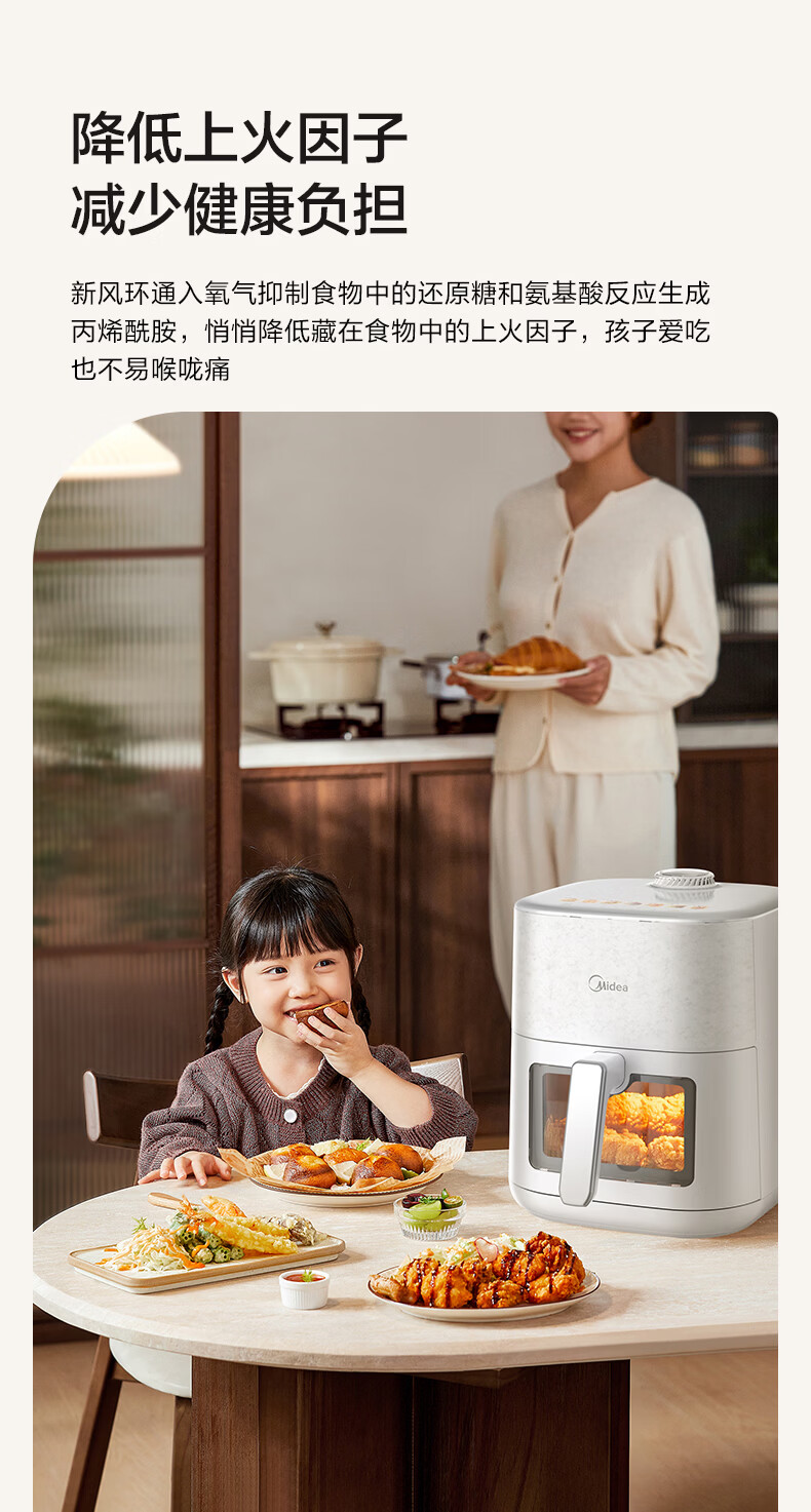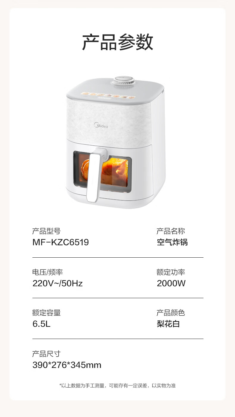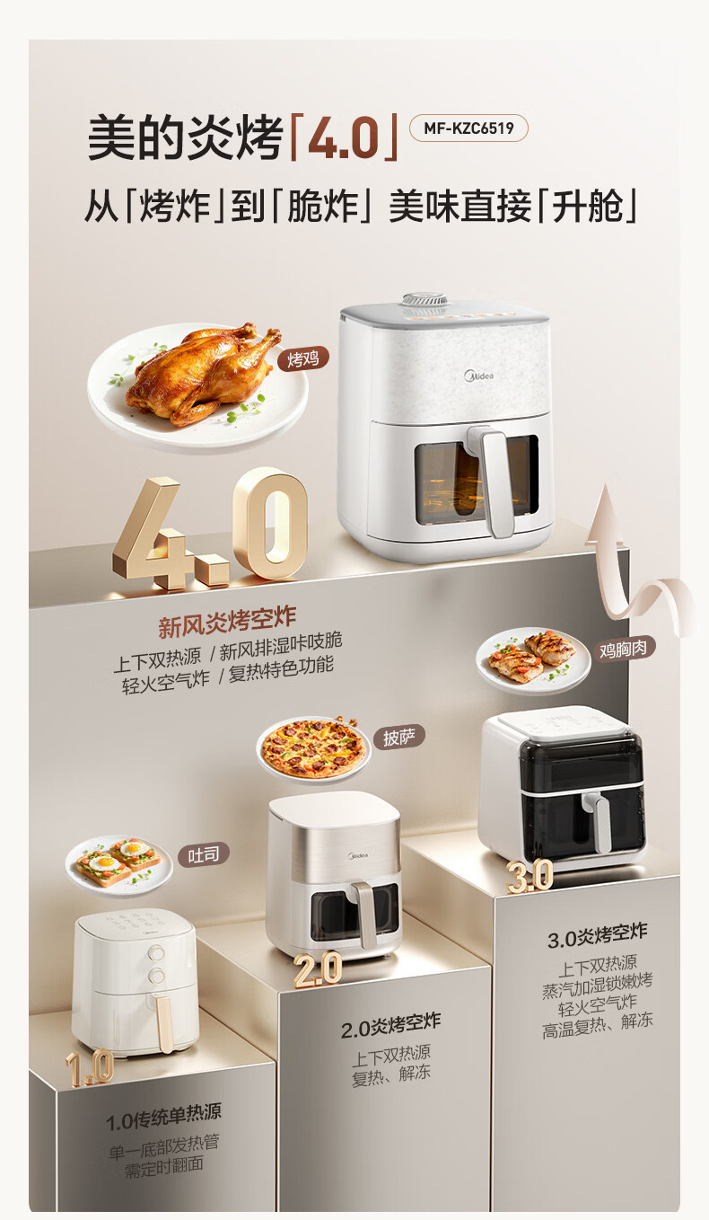 美的(Midea)新风炎烤空气炸锅 家用大容量6.5L双热源免翻面 2025年新款蒸烤一体可视窗免洗自营KZC6519年货
