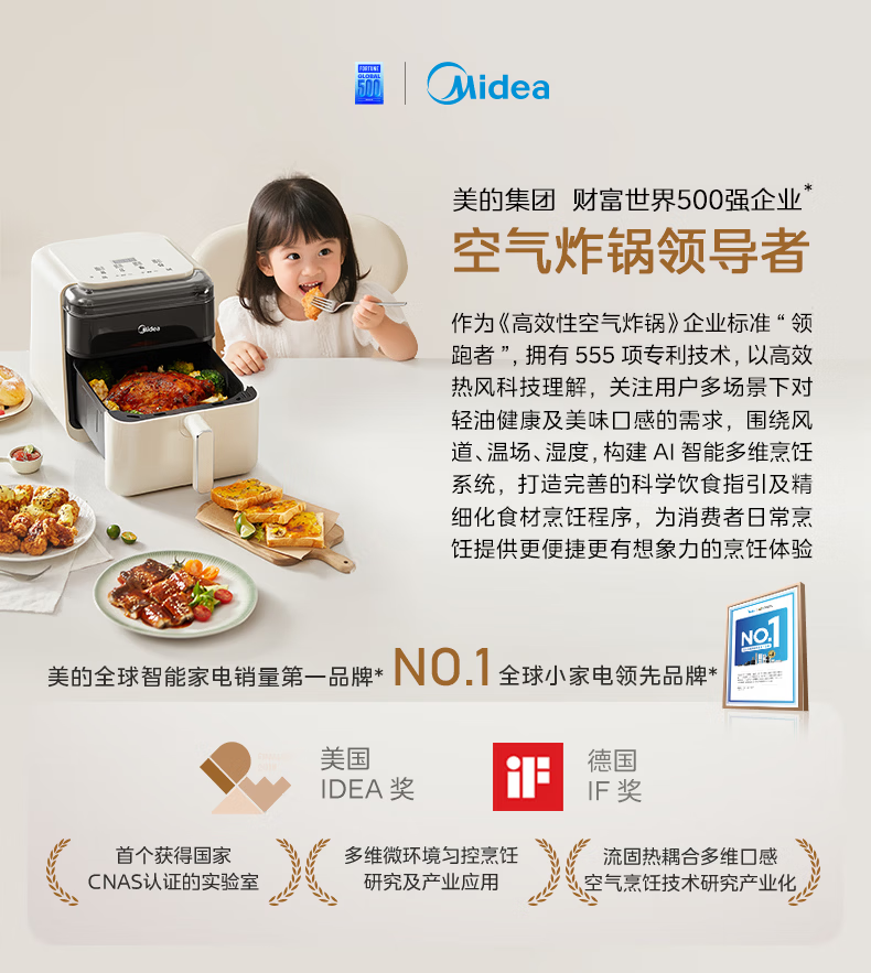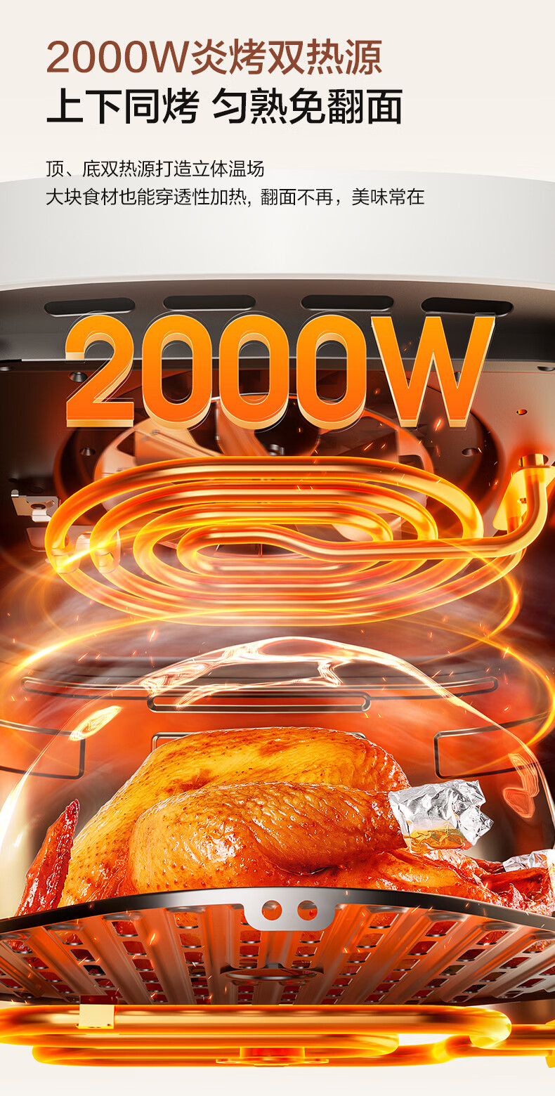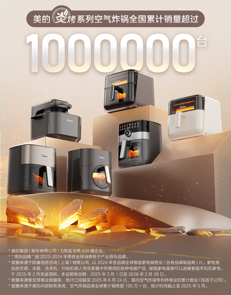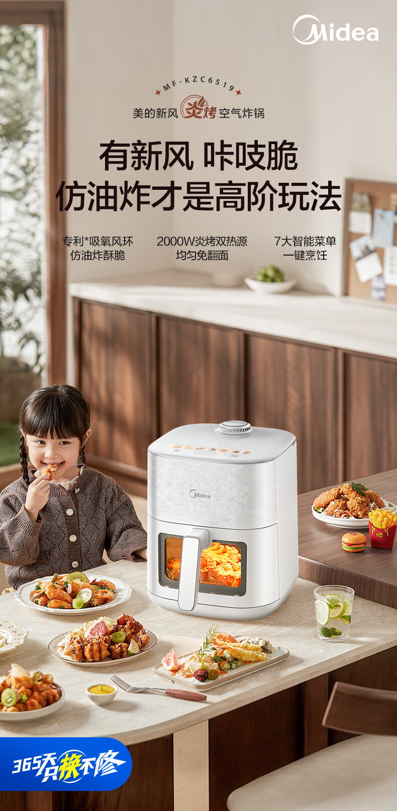 美的(Midea)新风炎烤空气炸锅 家用大容量6.5L双热源免翻面 2025年新款蒸烤一体可视窗免洗自营KZC6519年货