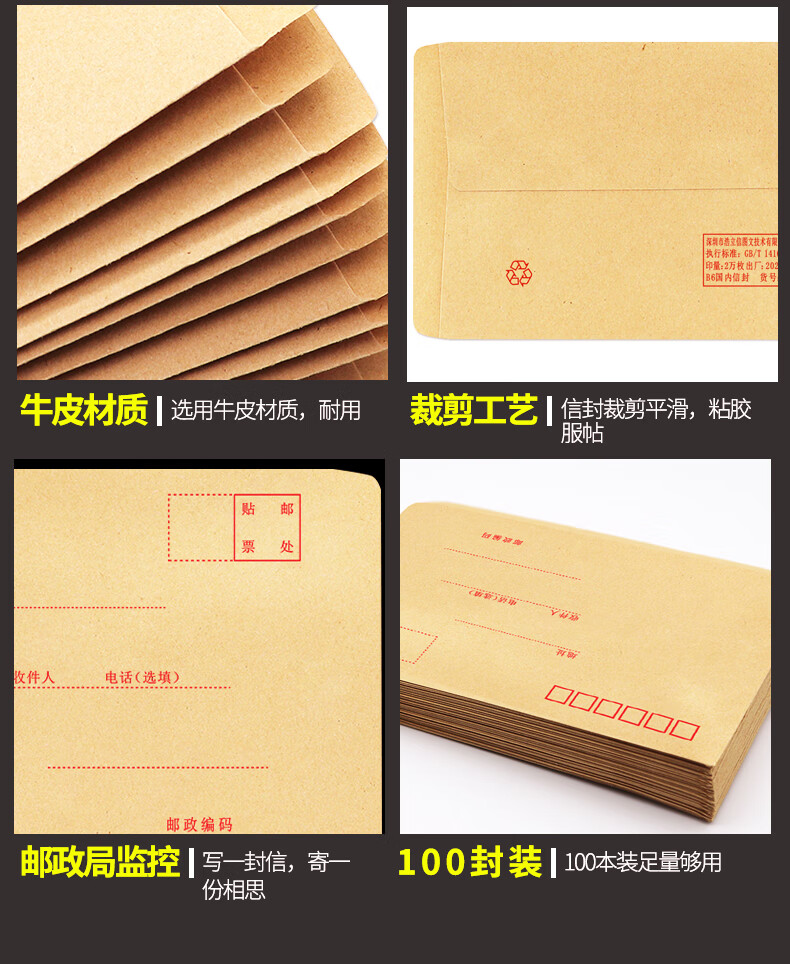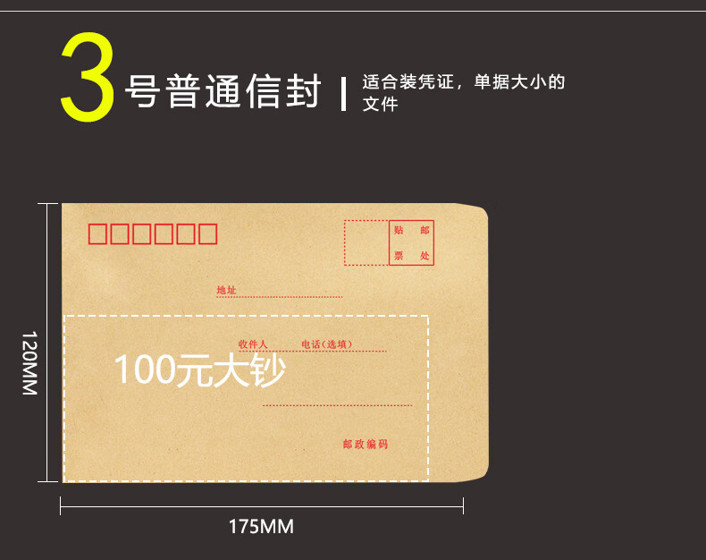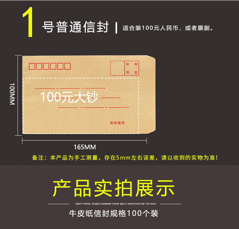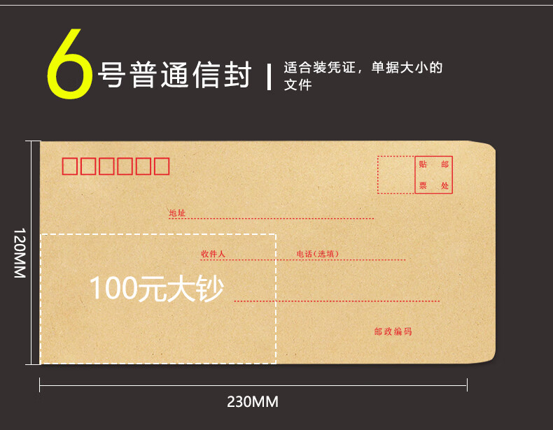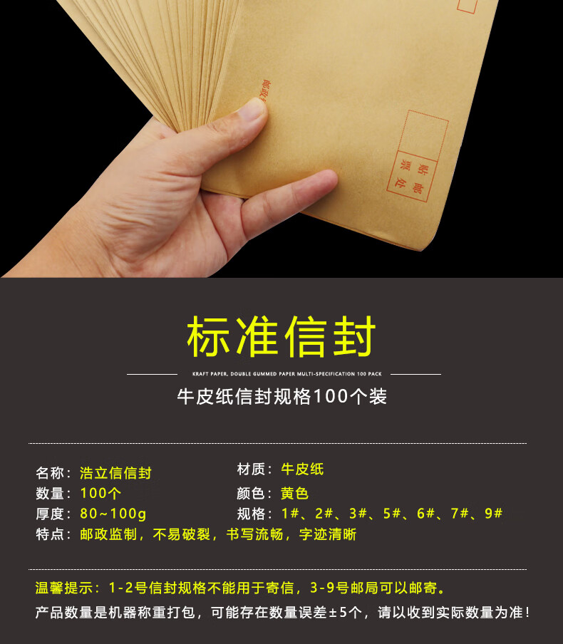 浩立信(LISON)【全网低价】浩立信 1519-5号信封 220*110 100个/包牛皮纸信封邮局标准信纸发票工资袋信封袋