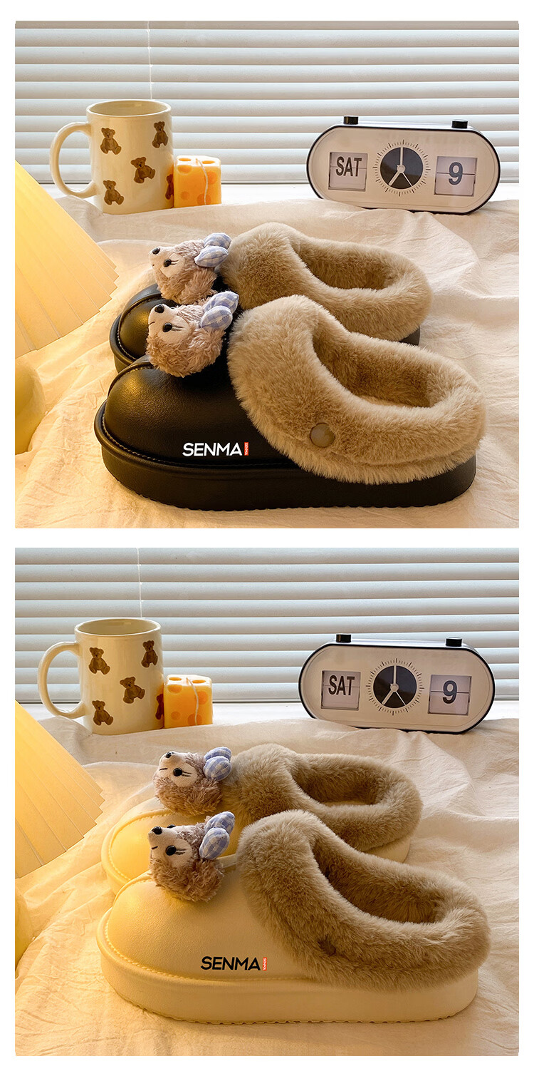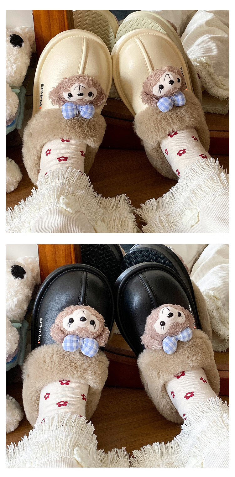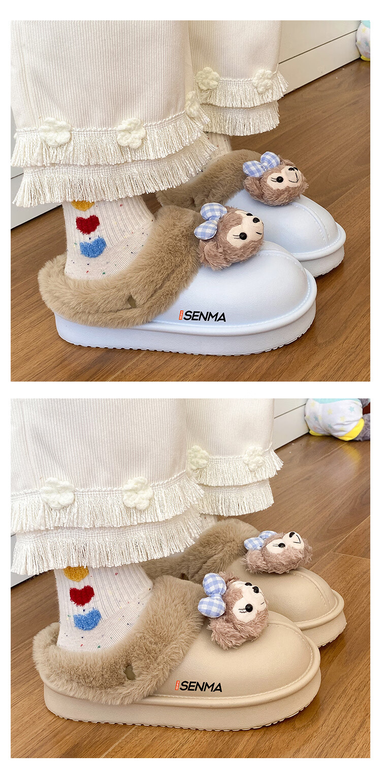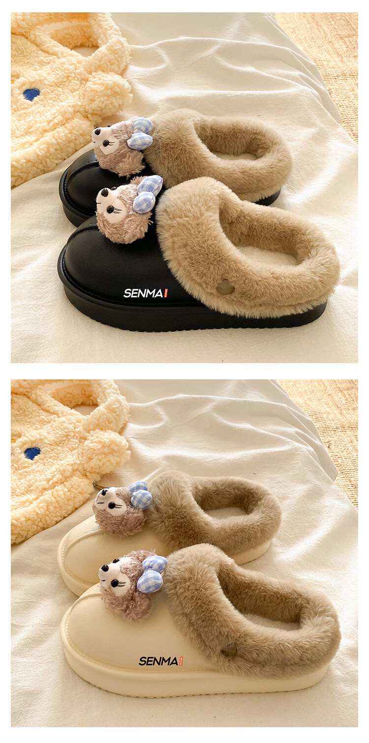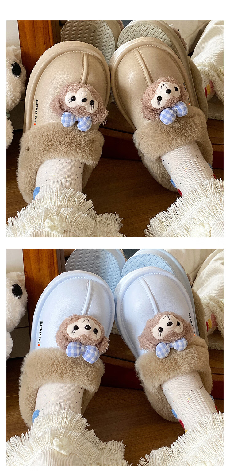 森馬棉拖女冬季加绒保暖防滑耐磨棉拖鞋女生宿舍居家室内休闲包头棉拖 米白【基础款】 35-36 【现货秒发】