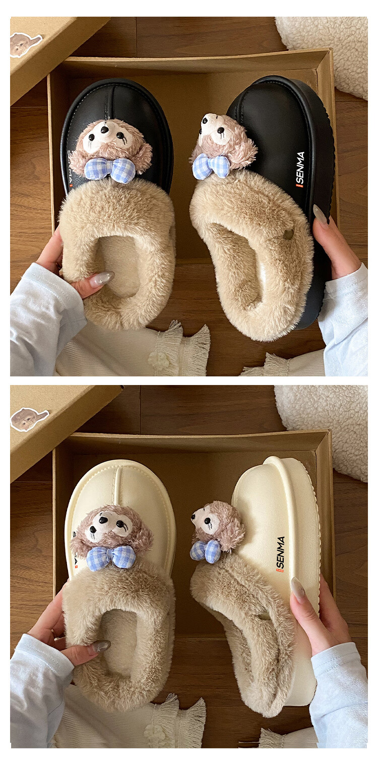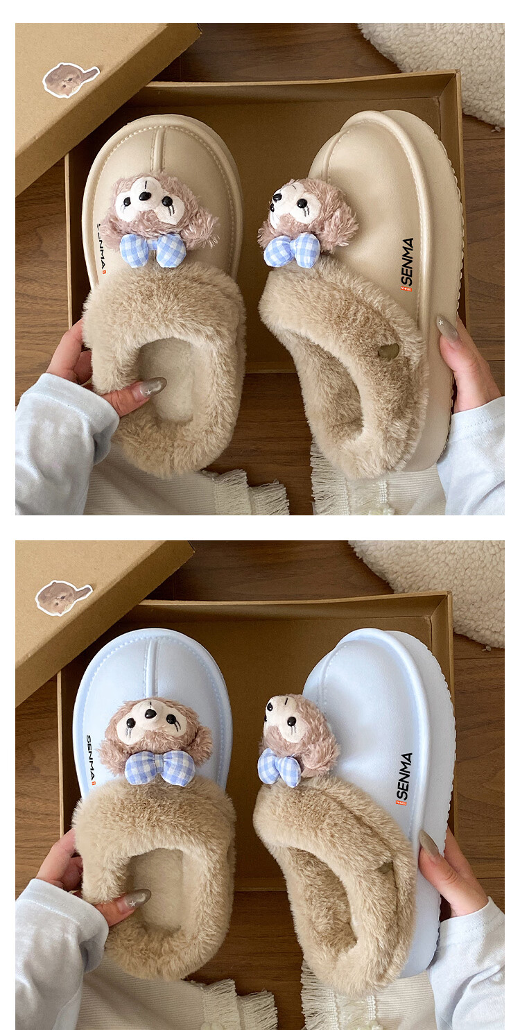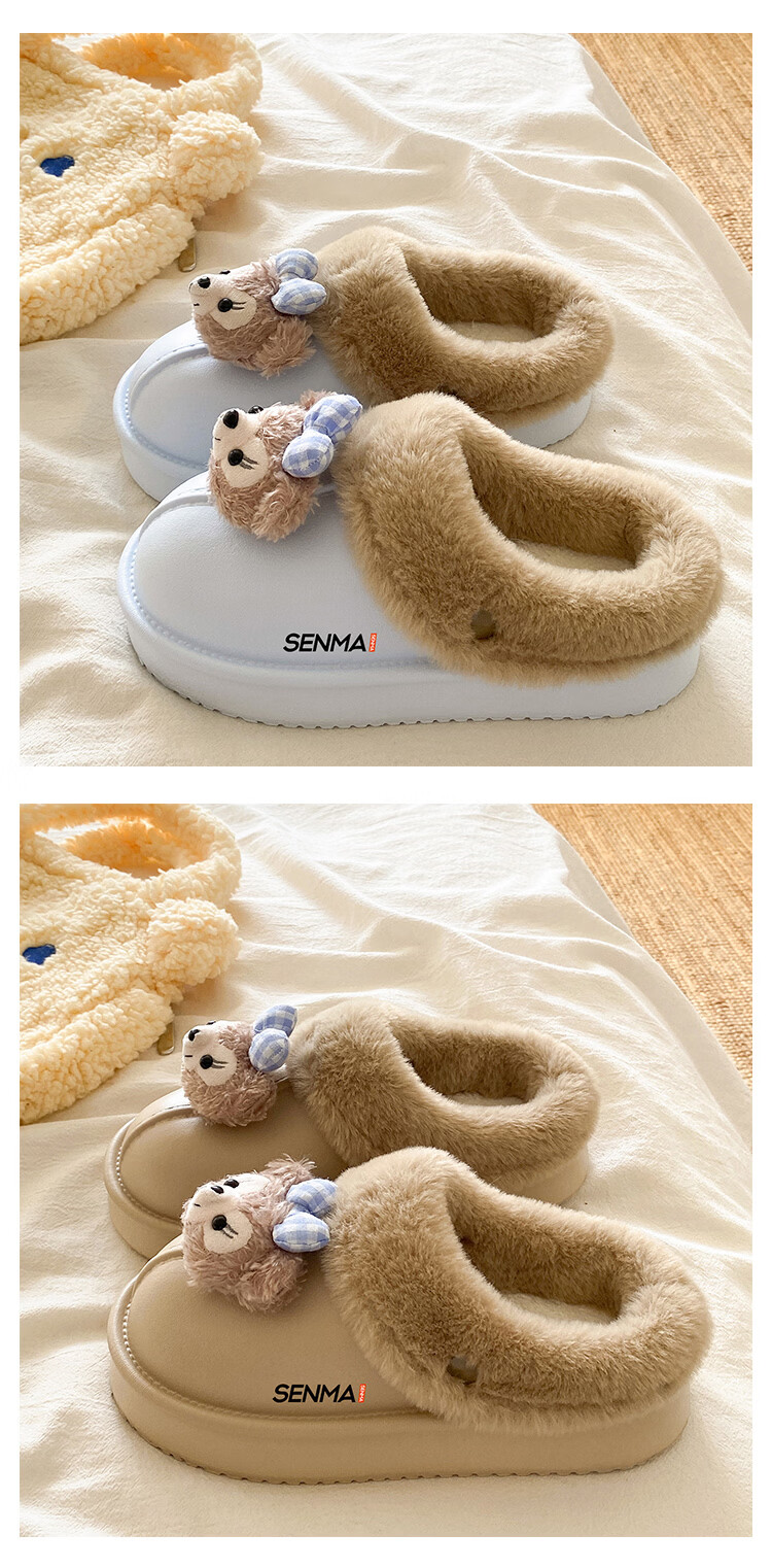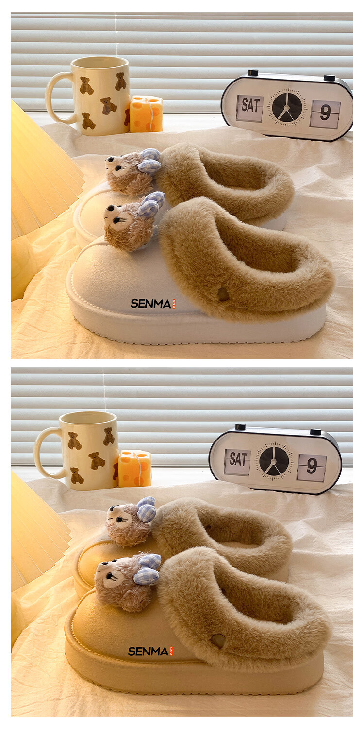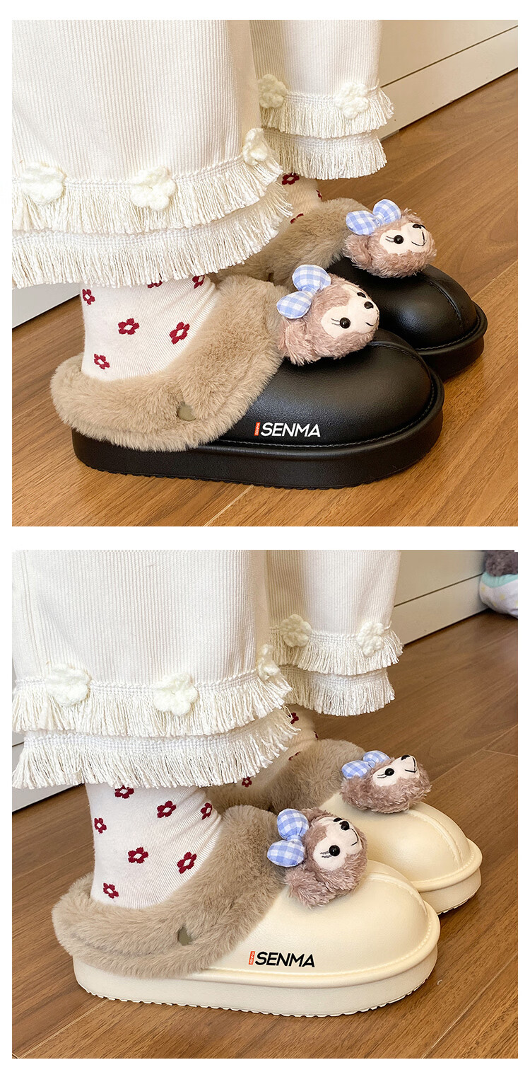 森馬棉拖女冬季加绒保暖防滑耐磨棉拖鞋女生宿舍居家室内休闲包头棉拖 米白【基础款】 35-36 【现货秒发】