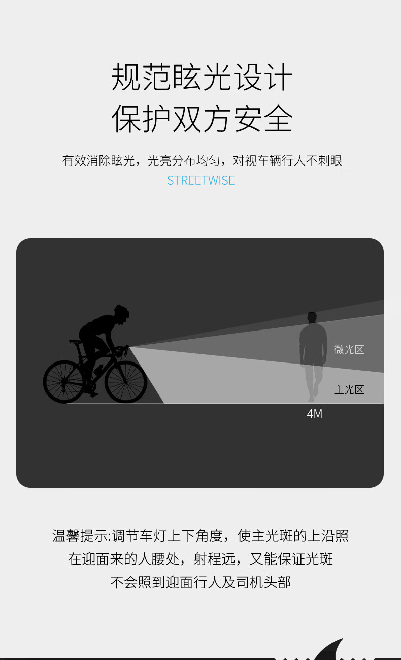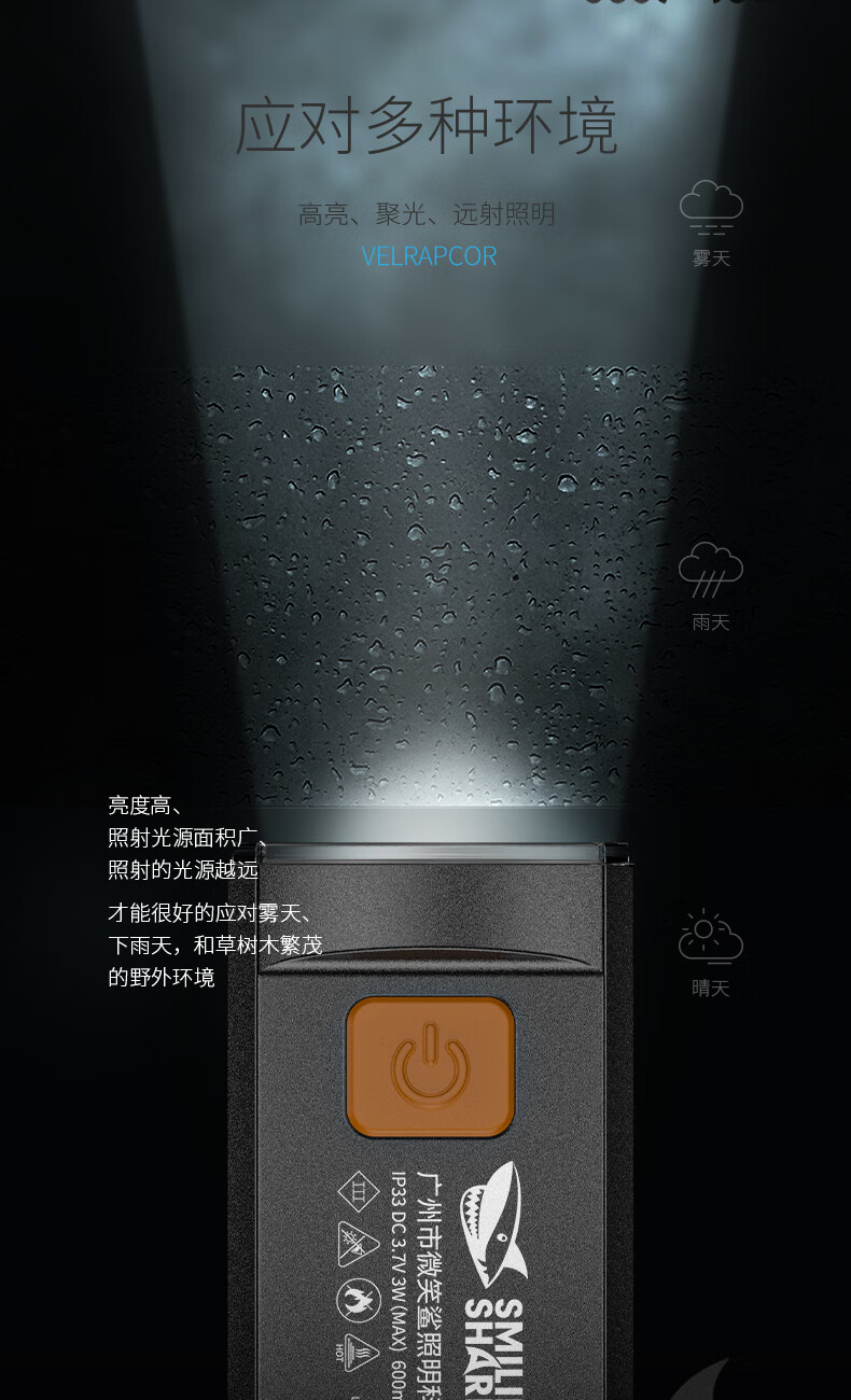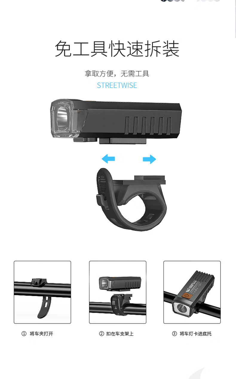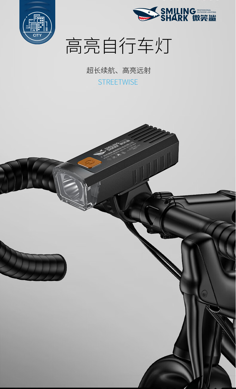 微笑鲨手电筒自行车强光户外装备骑行山地车夜骑前灯可充电防水照明车灯 【快速安装】190度广角大泛光+防雨