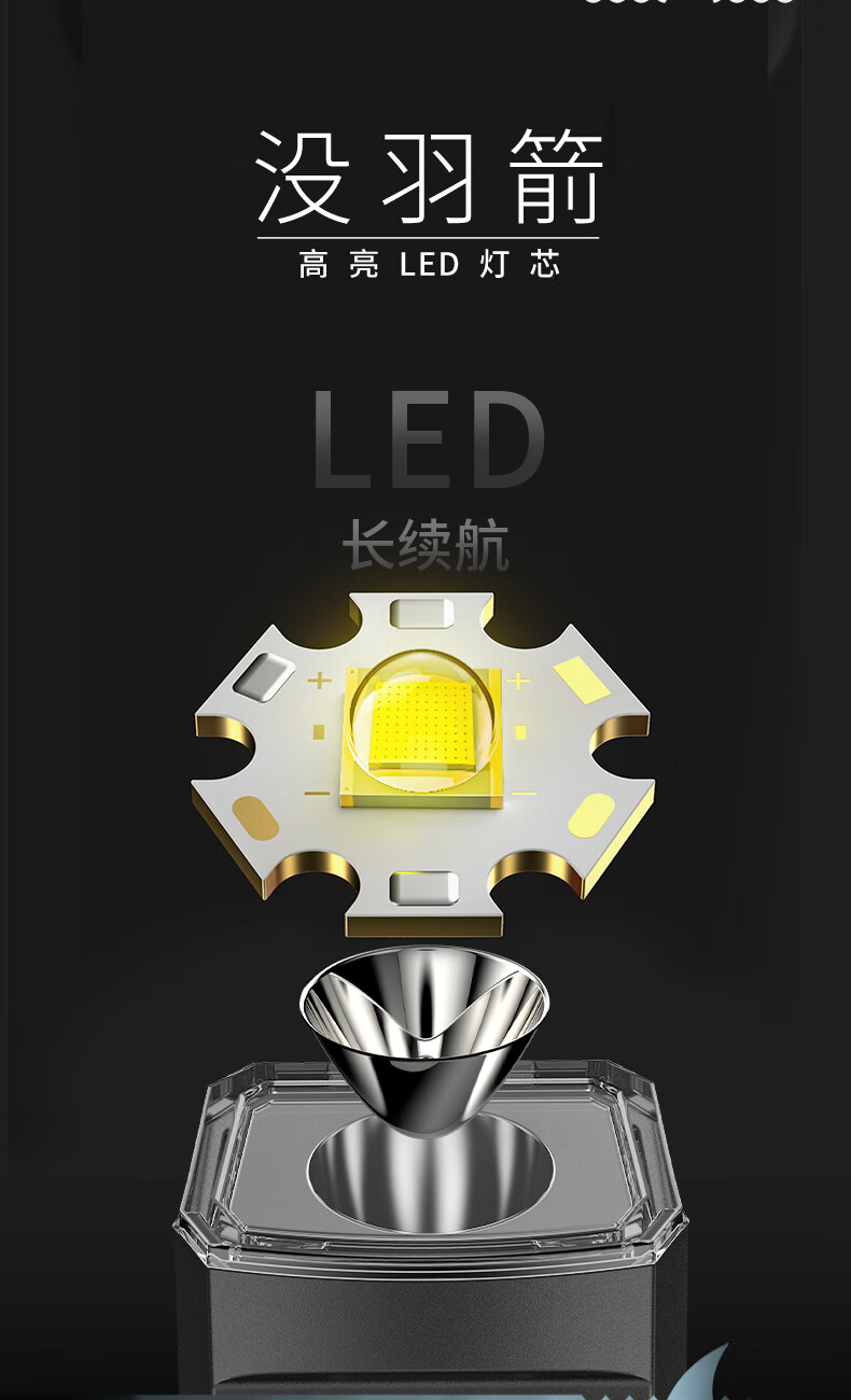 微笑鲨强光手电筒超亮变焦远射户外可充电超长续航大功率便携应急照明灯 爆亮远射【铝合金外壳】伸缩调焦