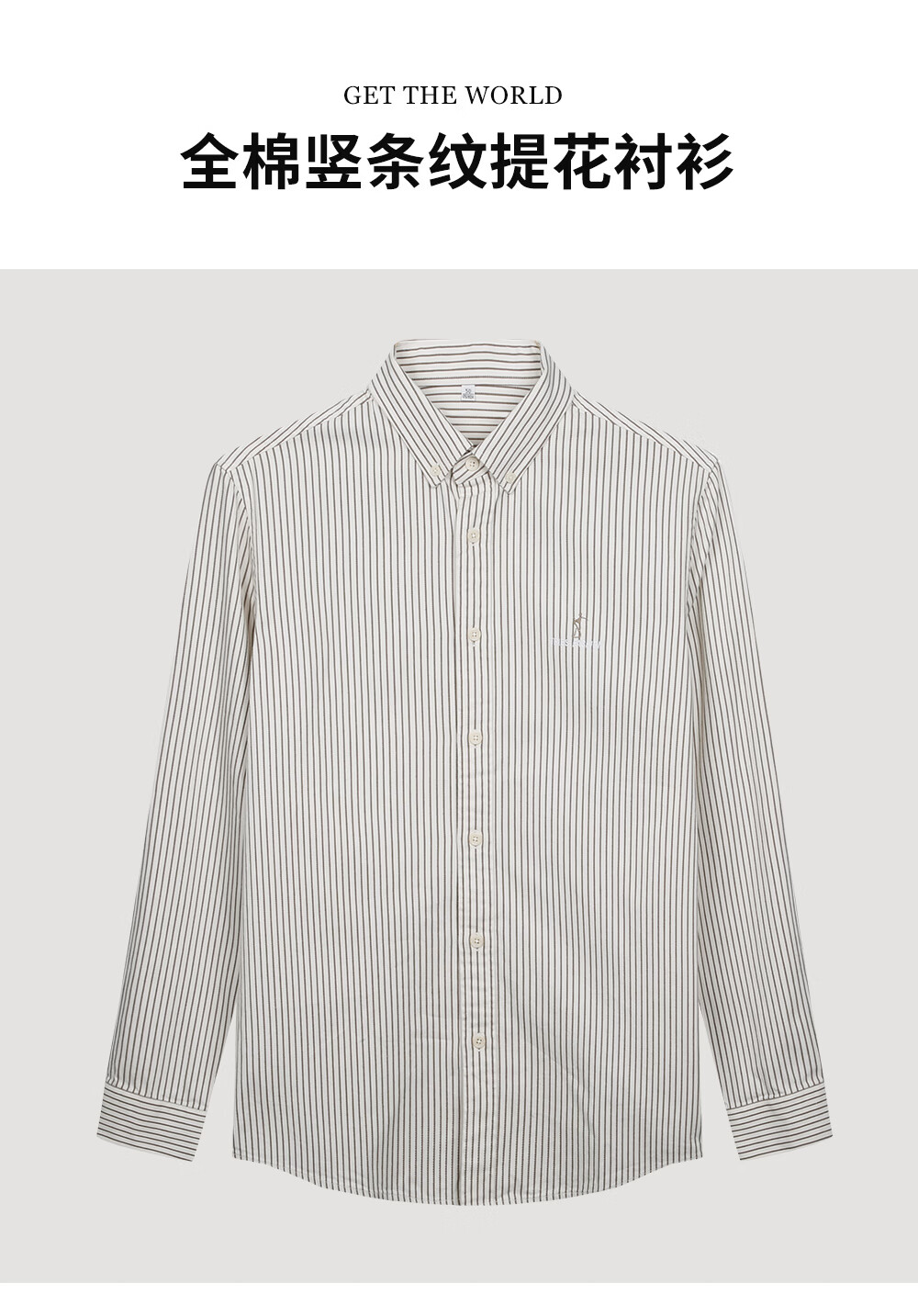 才子(TRIES)商务休闲男士纯棉竖条纹提花衬衫春秋款透气舒适简约长袖衬衣 灰色 2XL (180/96A)