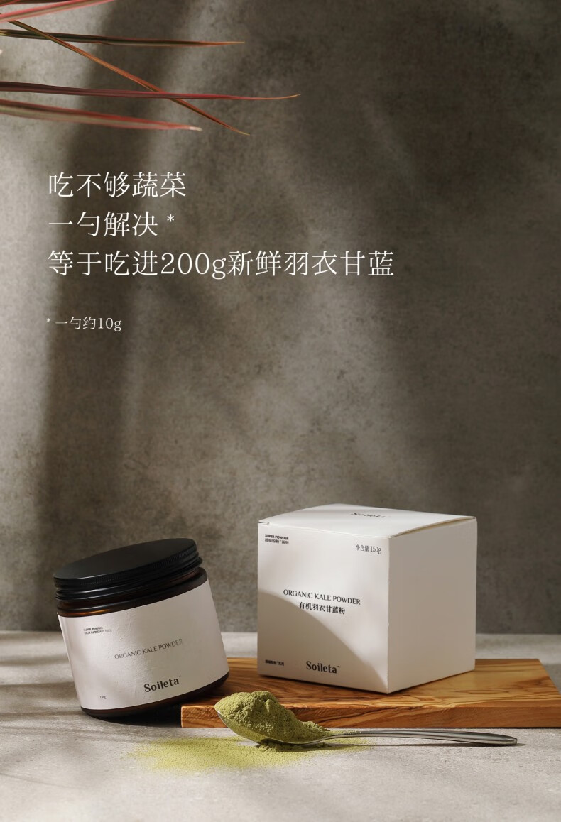 SOILETA有机羽衣甘蓝粉150g 膳食纤维冲饮代餐蔬菜粉清汁果蔬粉