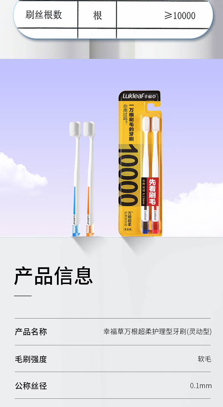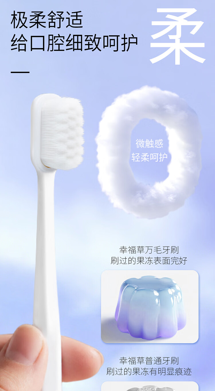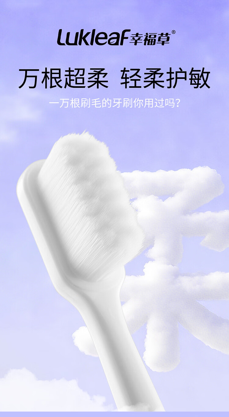 幸福草(Lukleaf)【万根软毛】超柔护理牙刷 男女成人牙刷家庭装灵动型2支装
