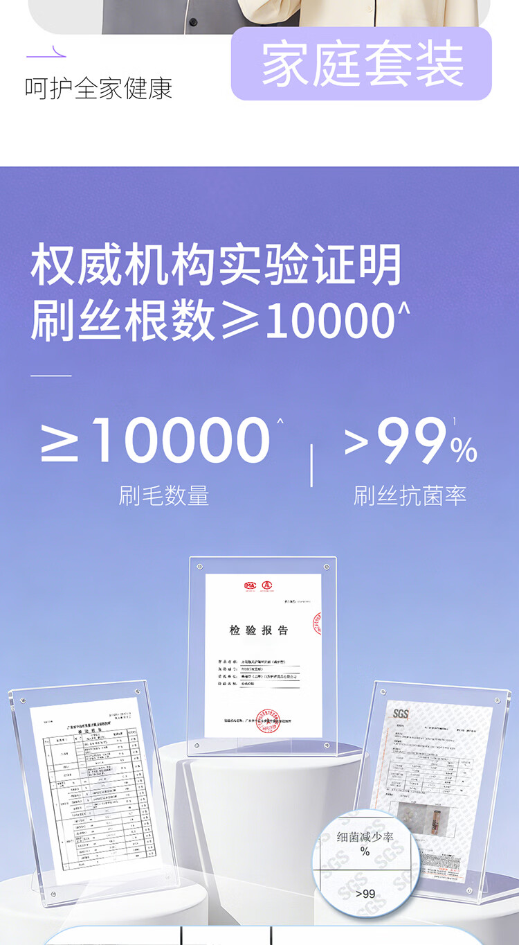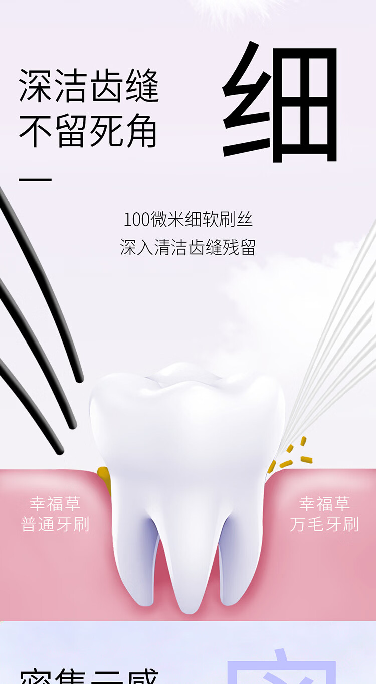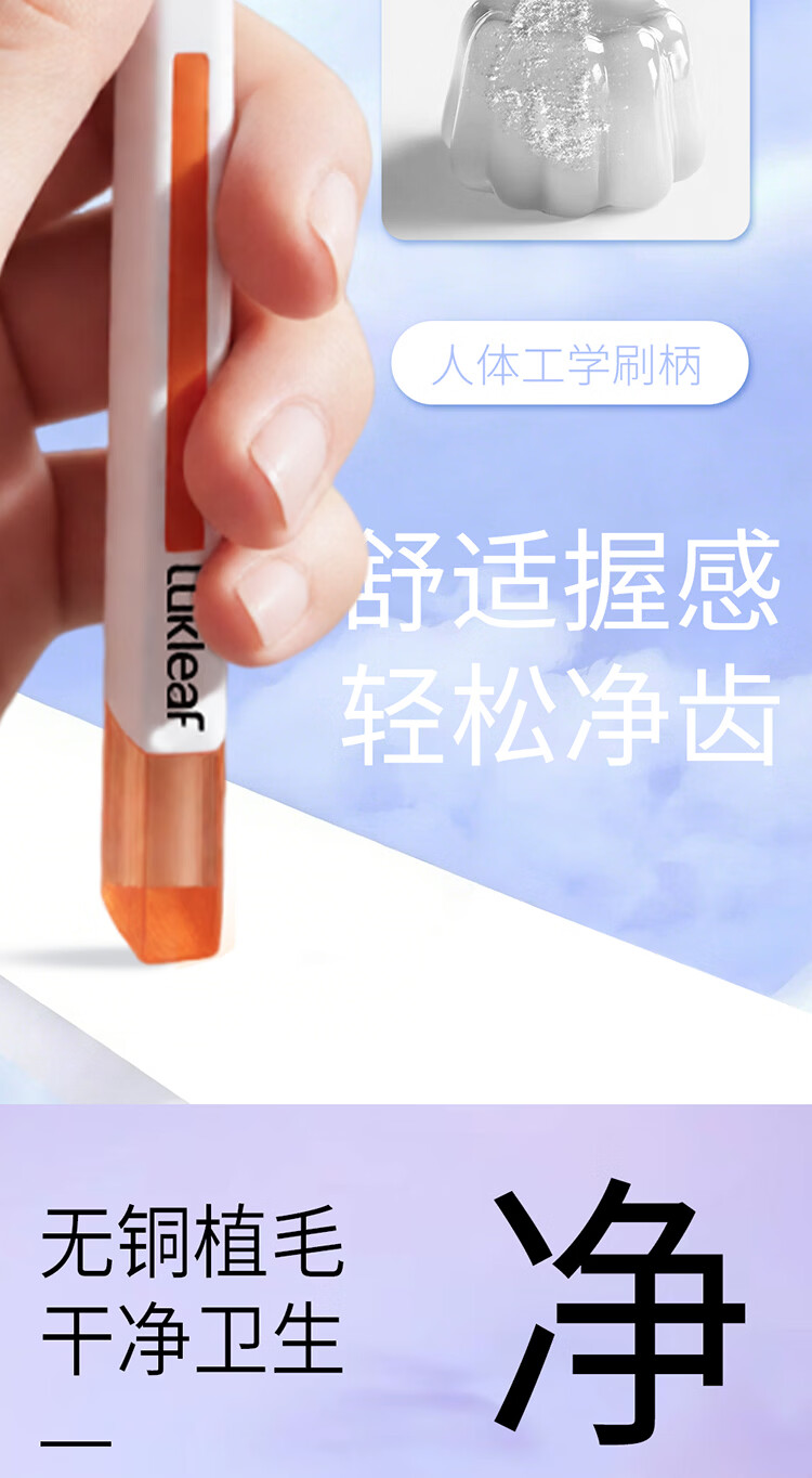 幸福草(Lukleaf)百孔超洁【1分钟快刷】护龈牙刷 男女成人牙刷家庭装护敏型2支装