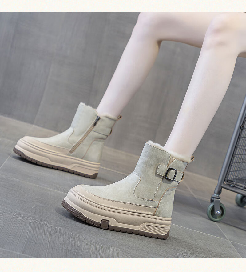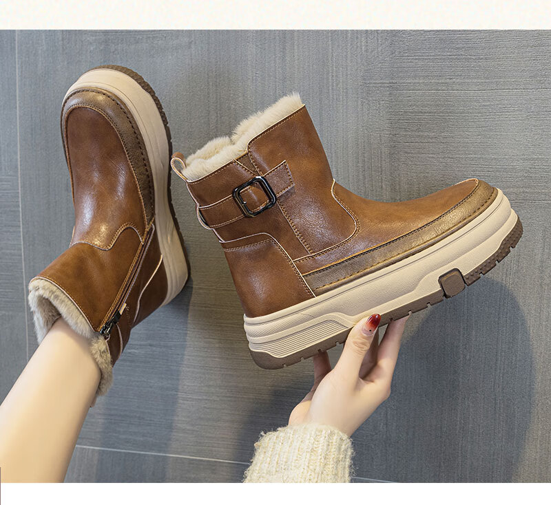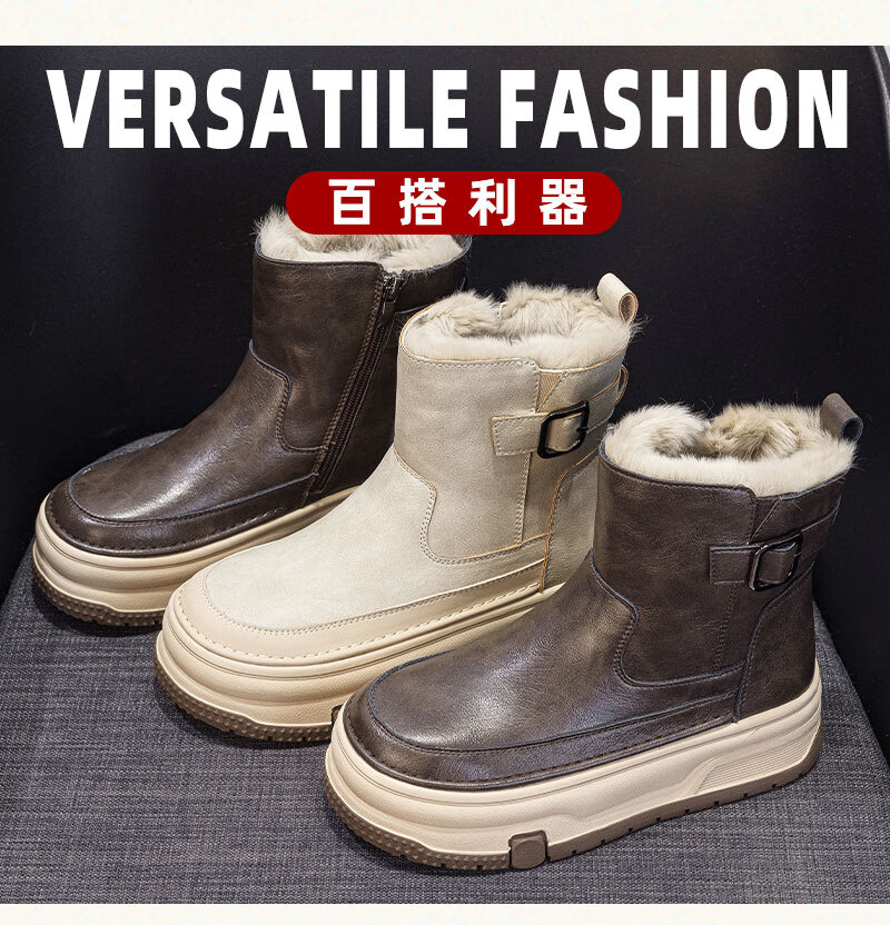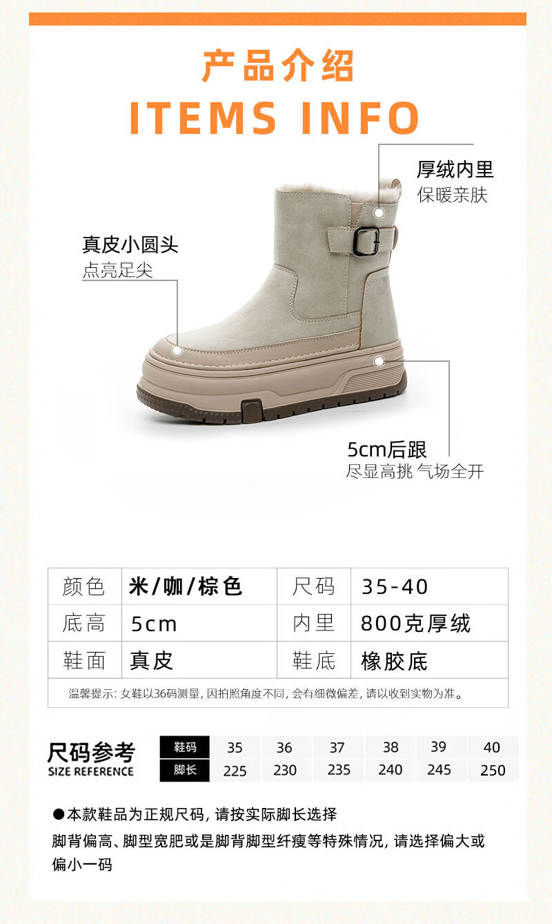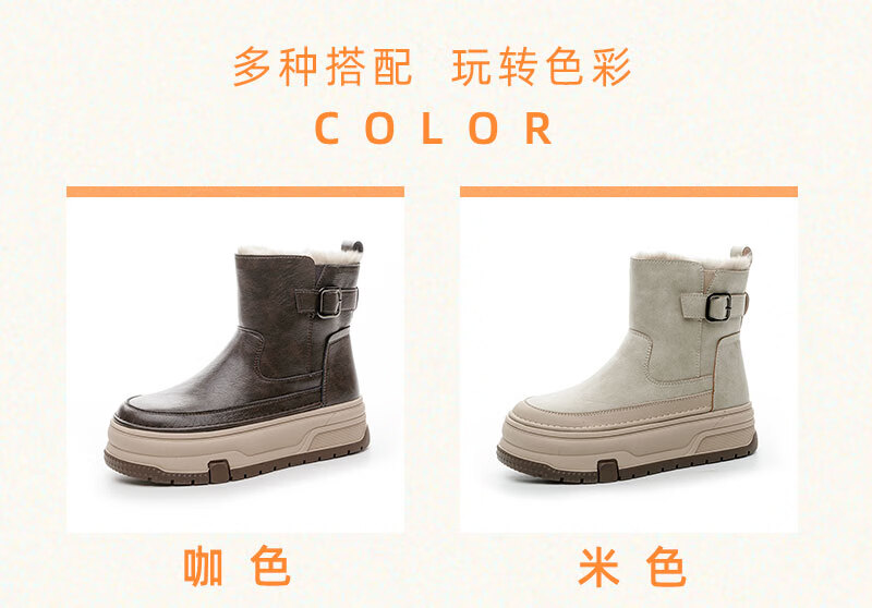 星期六加绒保暖厚底雪地靴2025冬季新款百搭轻便时尚棉鞋东北防寒毛毛鞋 驼色 【厚底加绒】跟高4cm 38