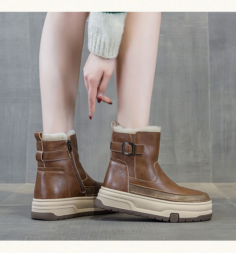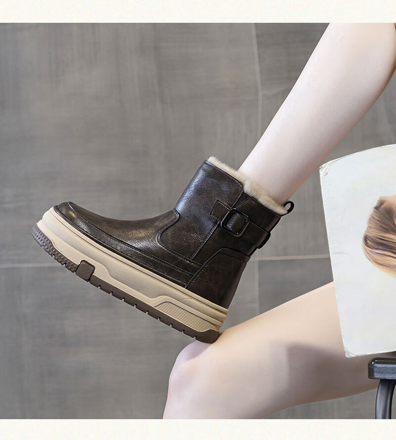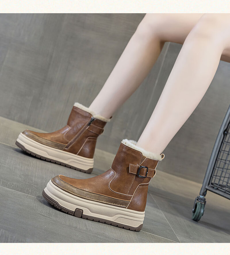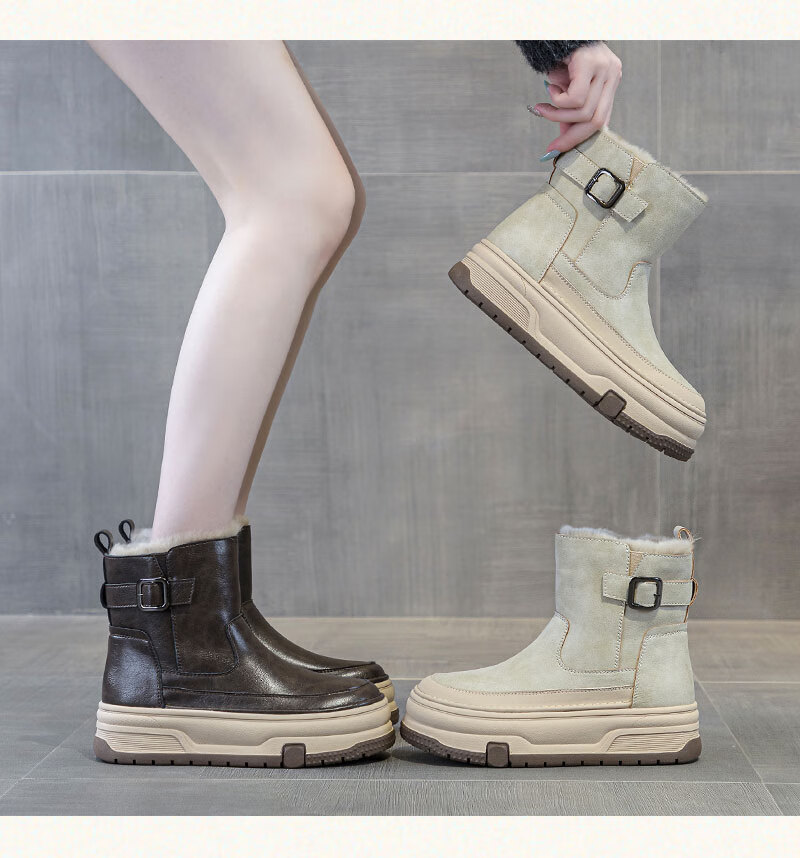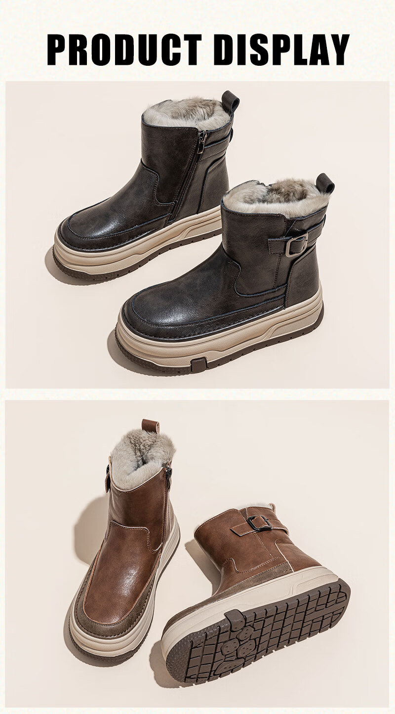 星期六加绒保暖厚底雪地靴2025冬季新款百搭轻便时尚棉鞋东北防寒毛毛鞋 驼色 【厚底加绒】跟高4cm 38