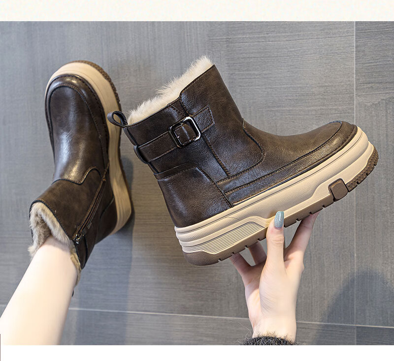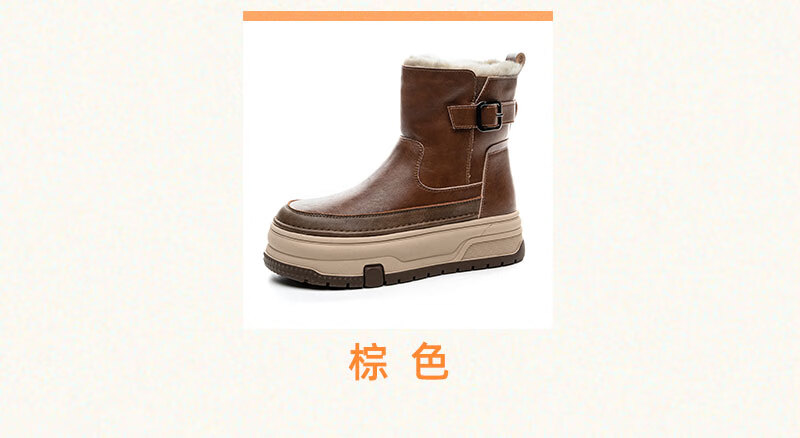 星期六厚底雪地靴女款2025新款秋冬季加绒加厚棉鞋巨好看保暖毛毛面包鞋 棕色 【超暖绒毛】跟高4cm 35