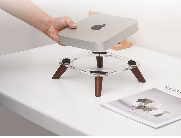 圆佑堂适用于苹果Mac mini支架亚克力桌面增高底座 M4/M4Pro 迷你电脑主机支撑架支架实木托架配件增高 【亚克力+胡桃实木脚】 【适用Mac mini/M4/M4Pro】