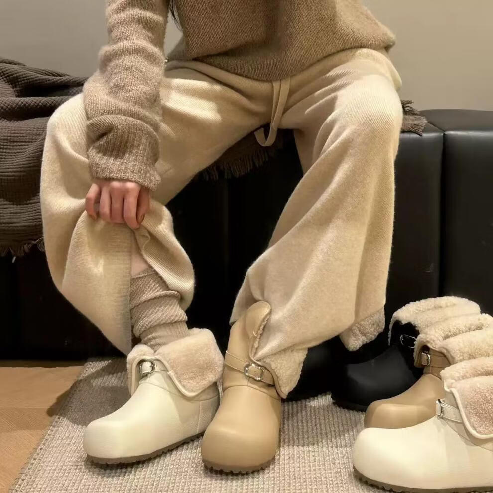 星期六加绒全包勃肯鞋女鞋冬季保暖雪地靴2025新款厚底增高一脚蹬毛毛鞋 驼色 【厚底加绒】跟高4cm 39