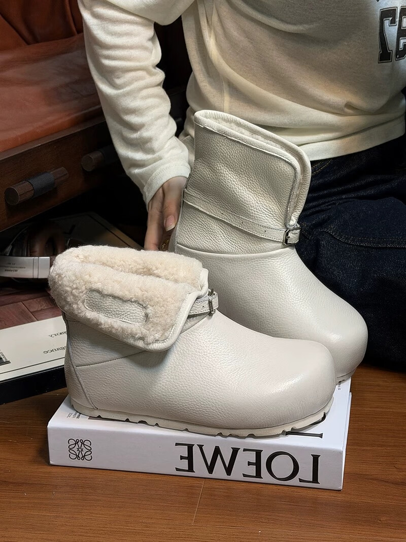 稻草人(MEXICAN)厚底内增高小土豆勃肯鞋雪地靴女2026新款冬加绒保暖防水短靴棉鞋 杏色.【真皮】 【保暖指数100%】 38