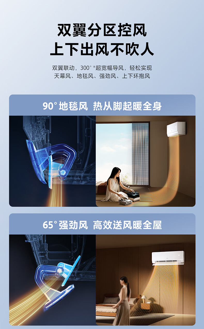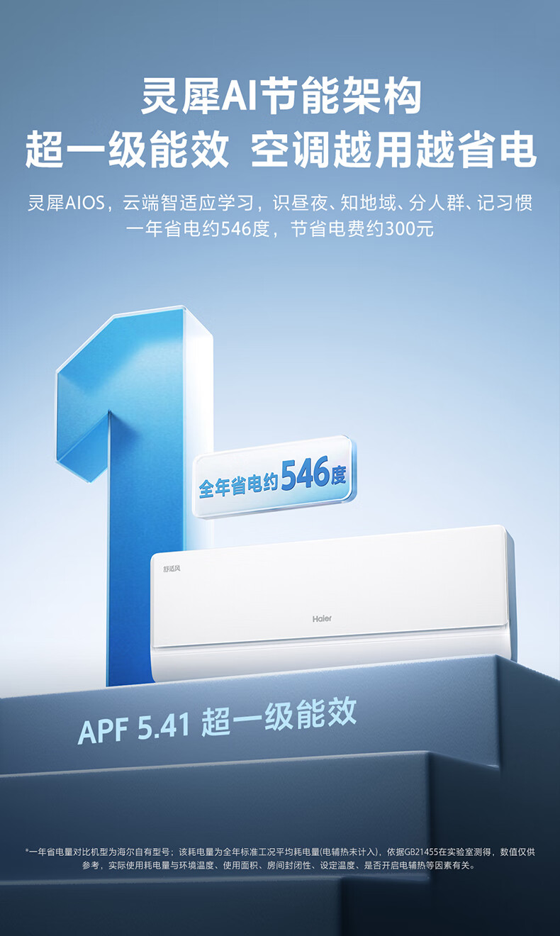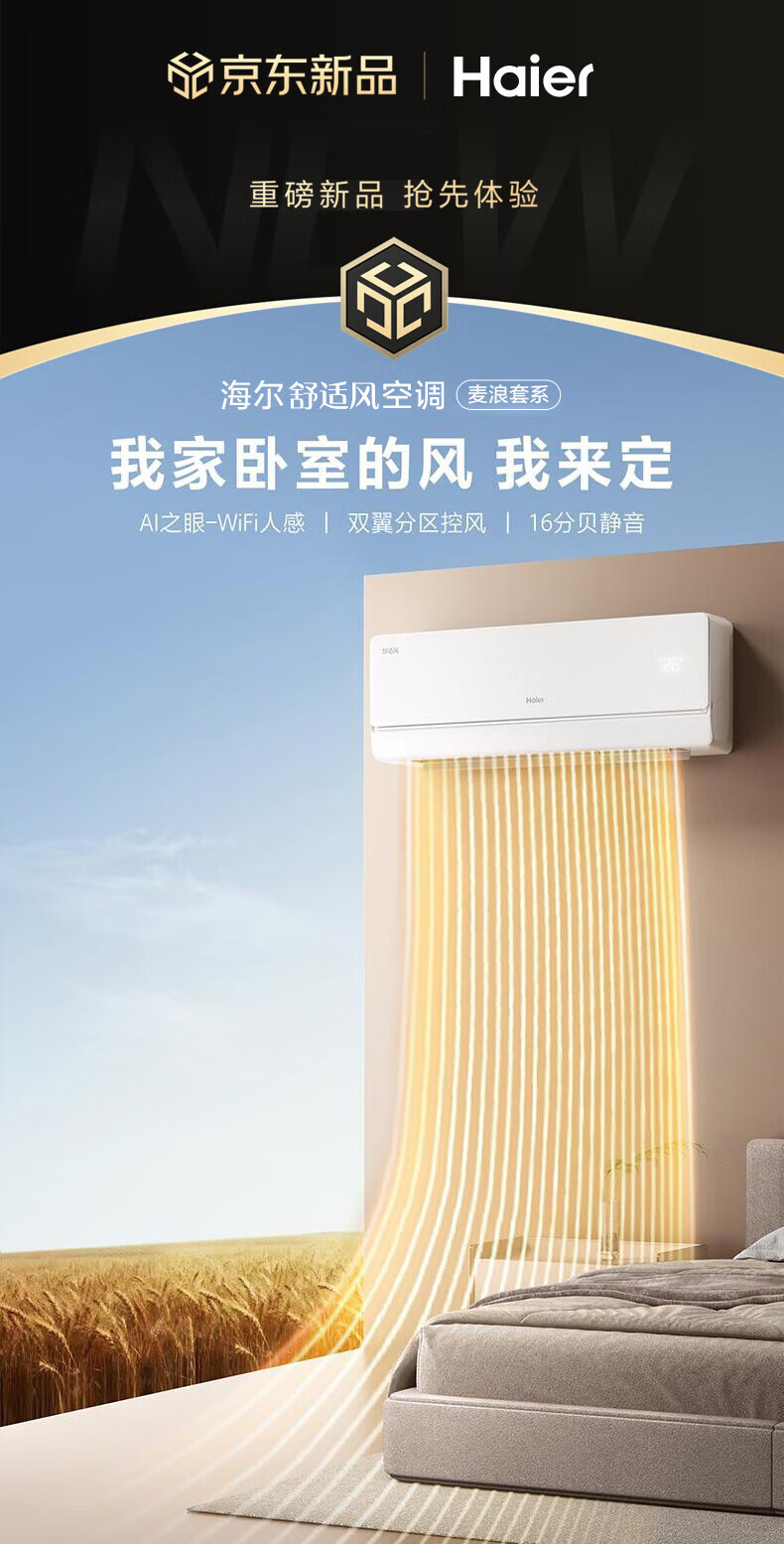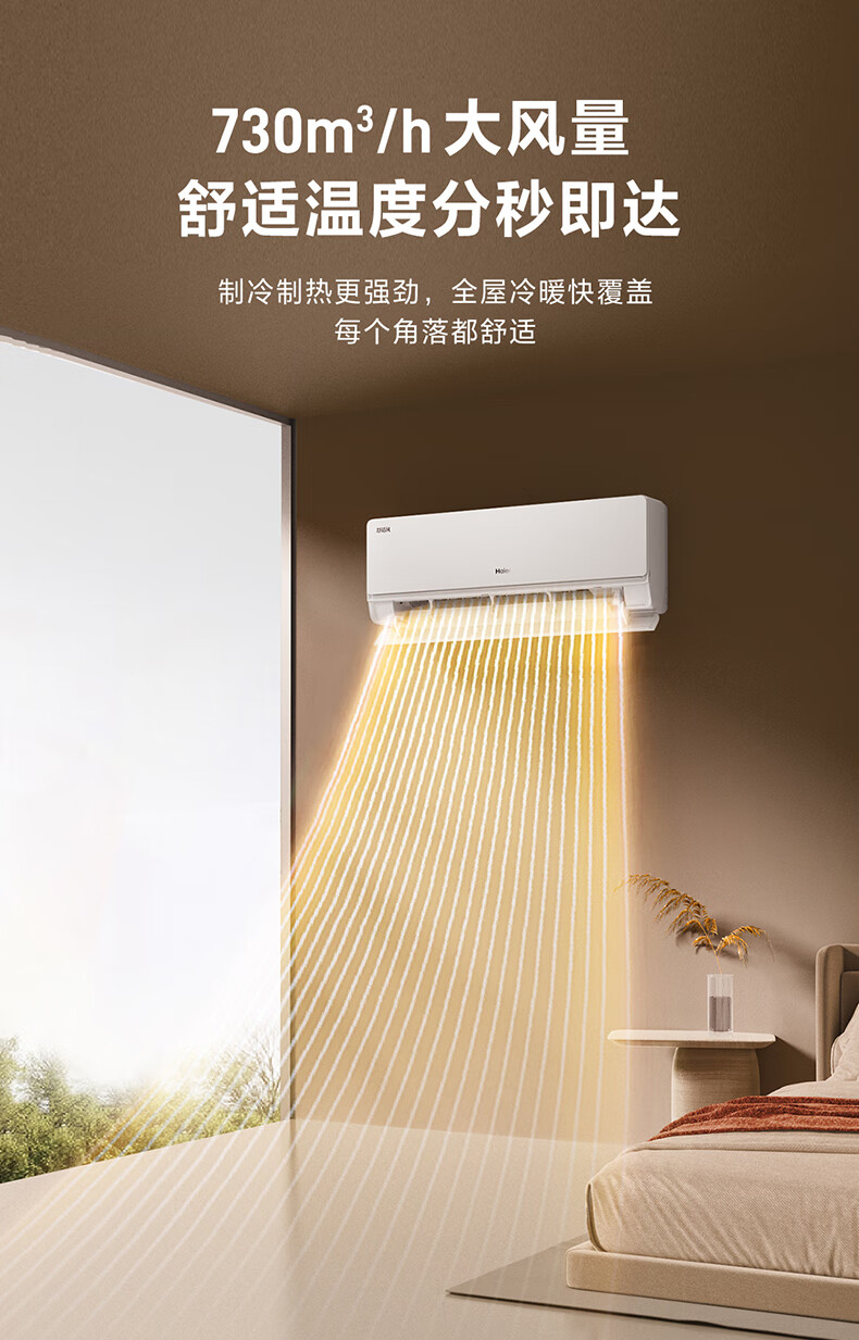 海尔舒适风空调 麦浪套系大1匹 一级变频冷暖卧室挂机 双排铜管蒸发器 国家补贴以旧换新KFR-26GW/E2-1