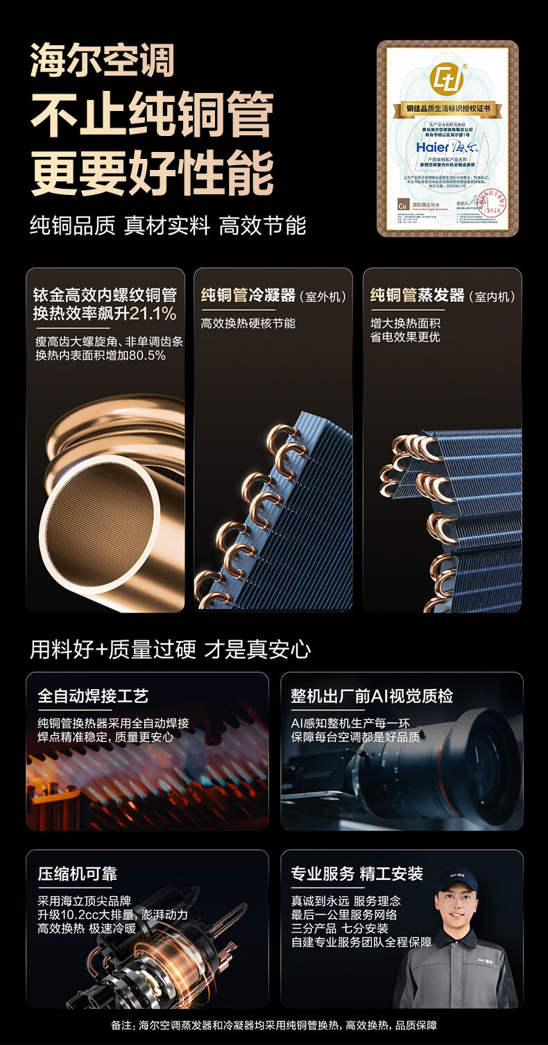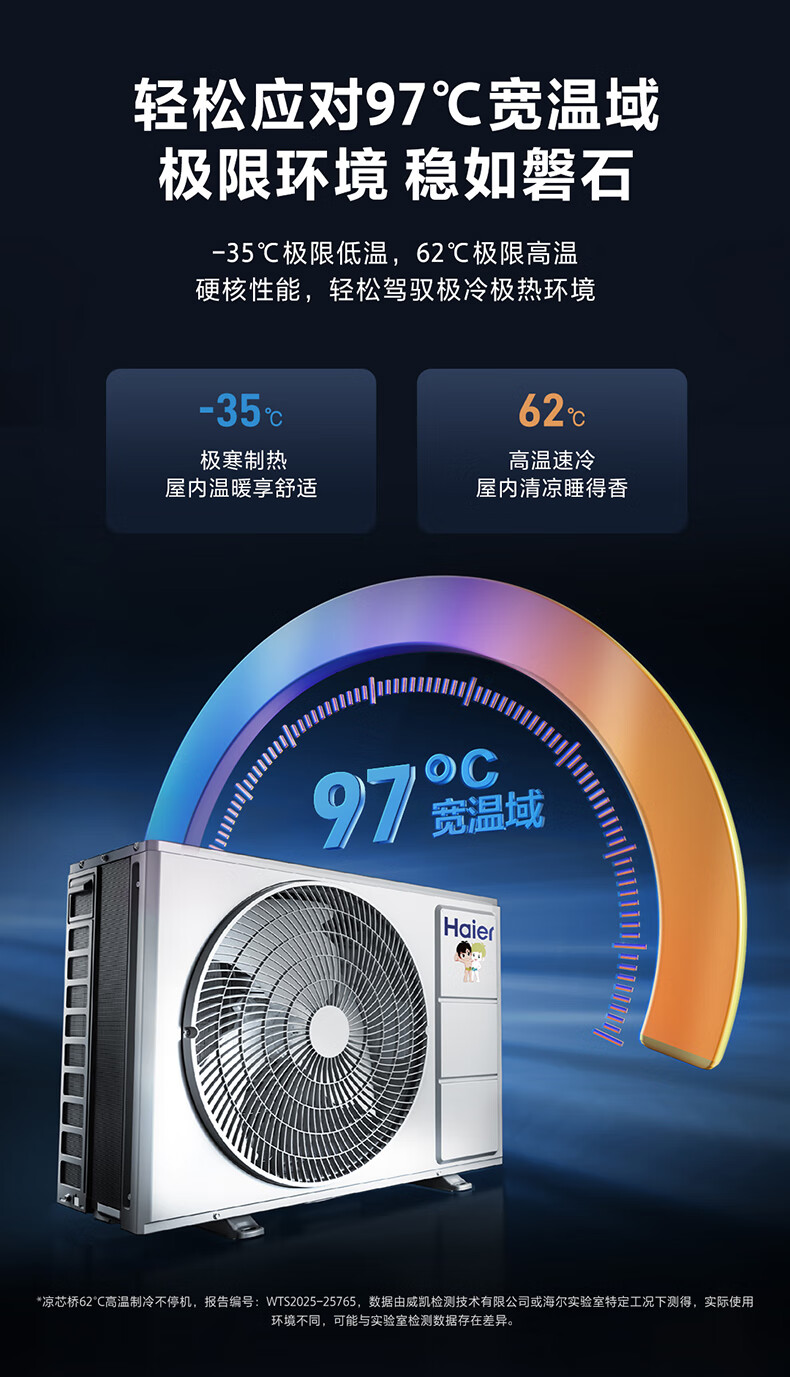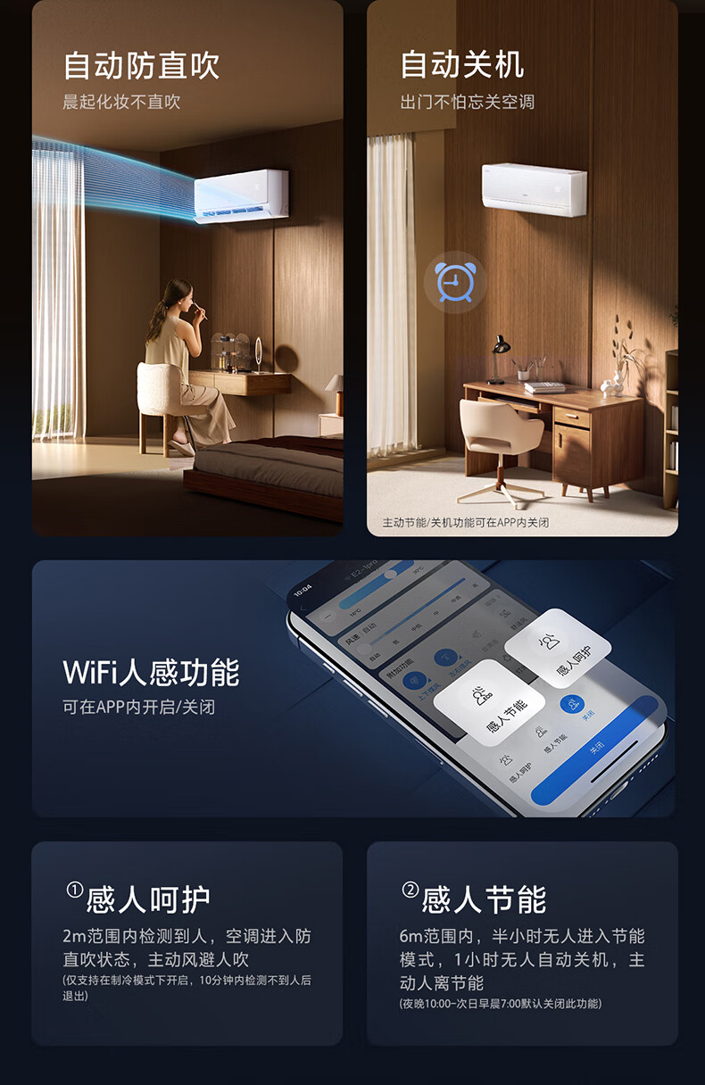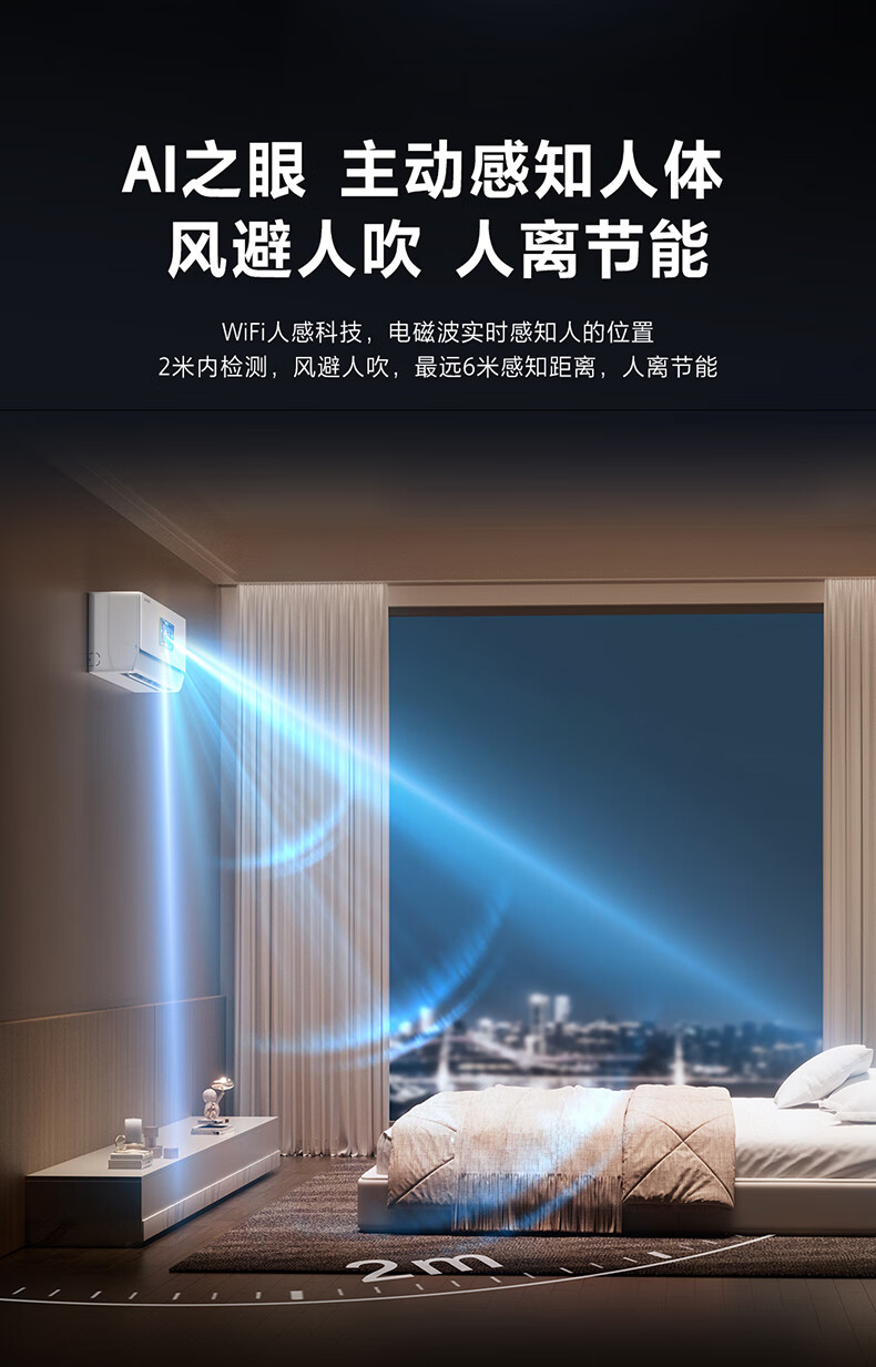 海尔舒适风空调 麦浪套系大1匹 一级变频冷暖卧室挂机 双排铜管蒸发器 国家补贴以旧换新KFR-26GW/E2-1