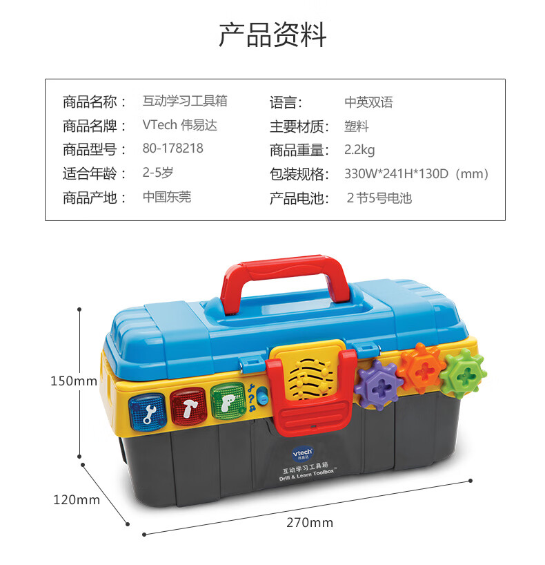 伟易达(Vtech)儿童过家家玩具互动学习工具箱双语早教2-5岁男女孩生日新年礼物 互动学习工具箱【2-5岁】