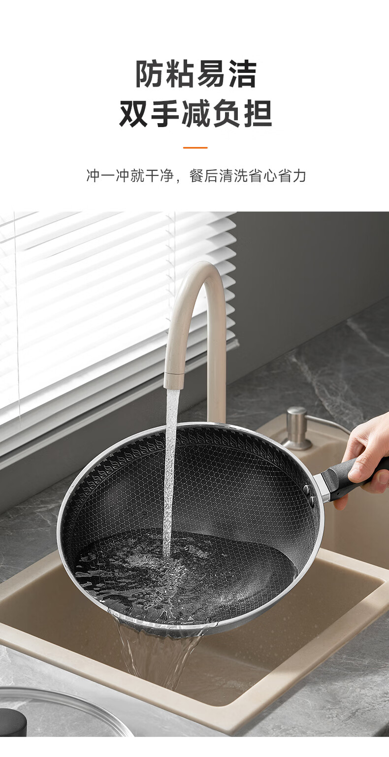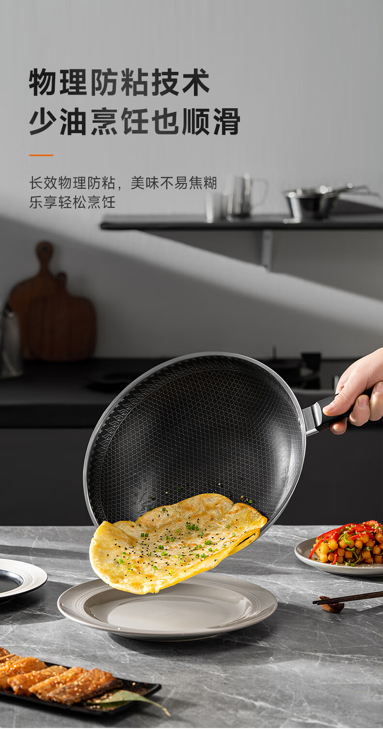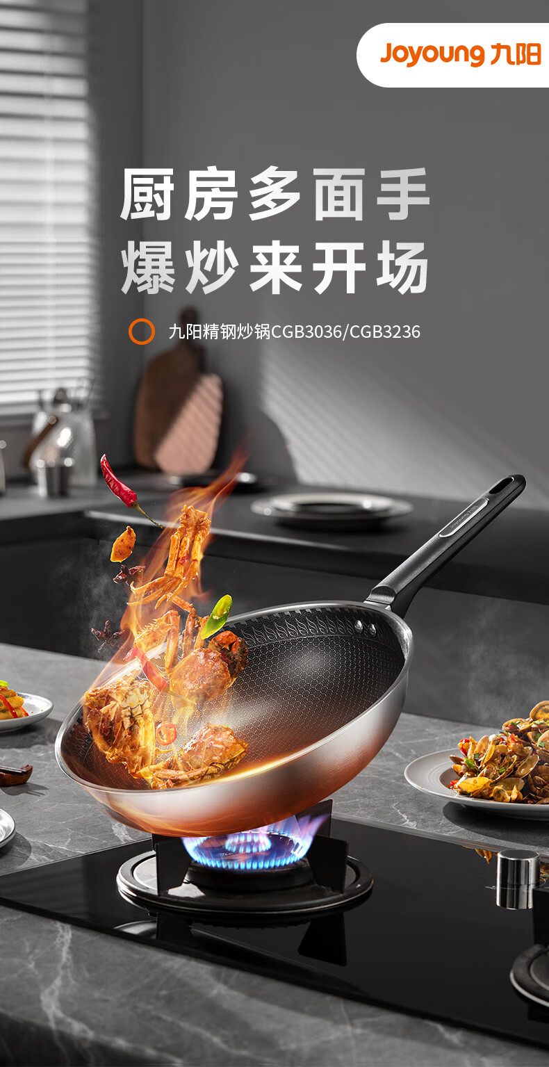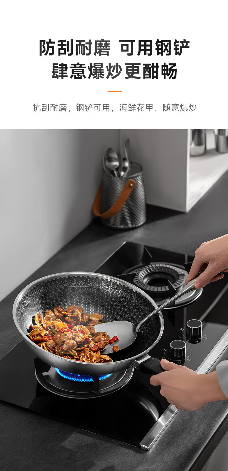 九阳(Joyoung)炒锅不锈钢蜂窝不粘炒菜锅煎锅炉灶通用32cm