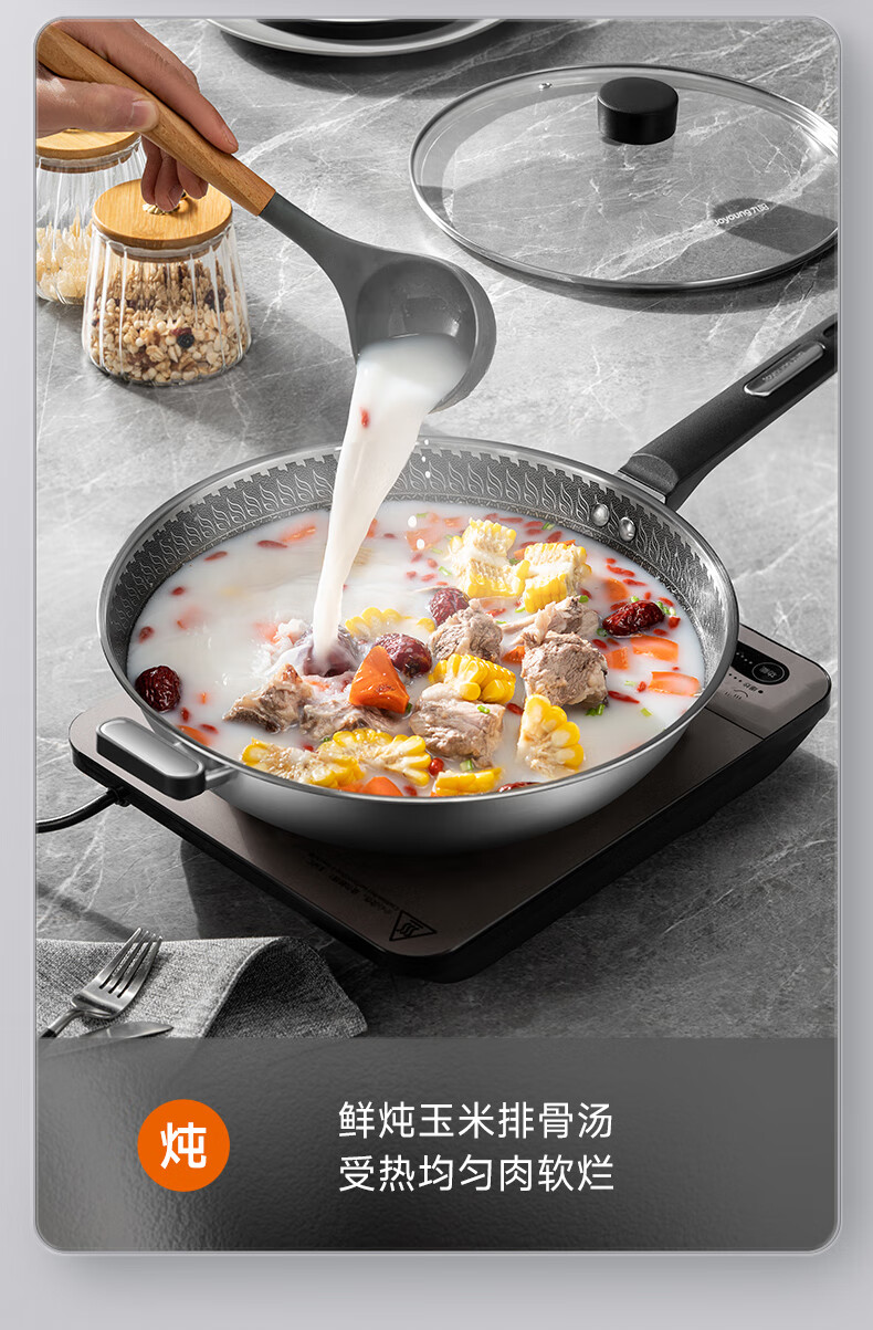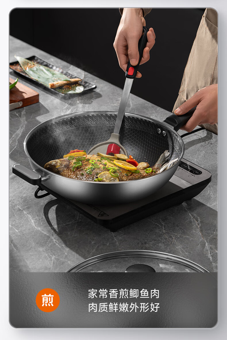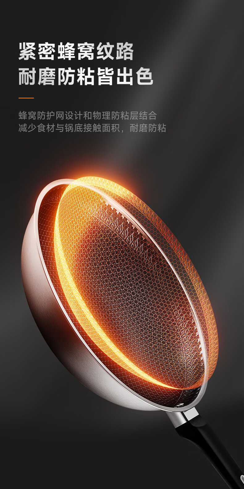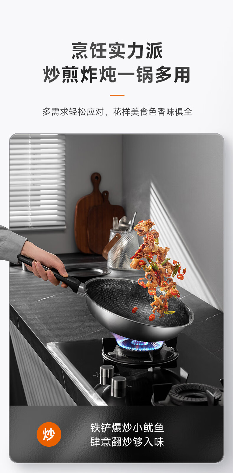 九阳(Joyoung)炒锅不锈钢蜂窝不粘炒菜锅煎锅炉灶通用32cm