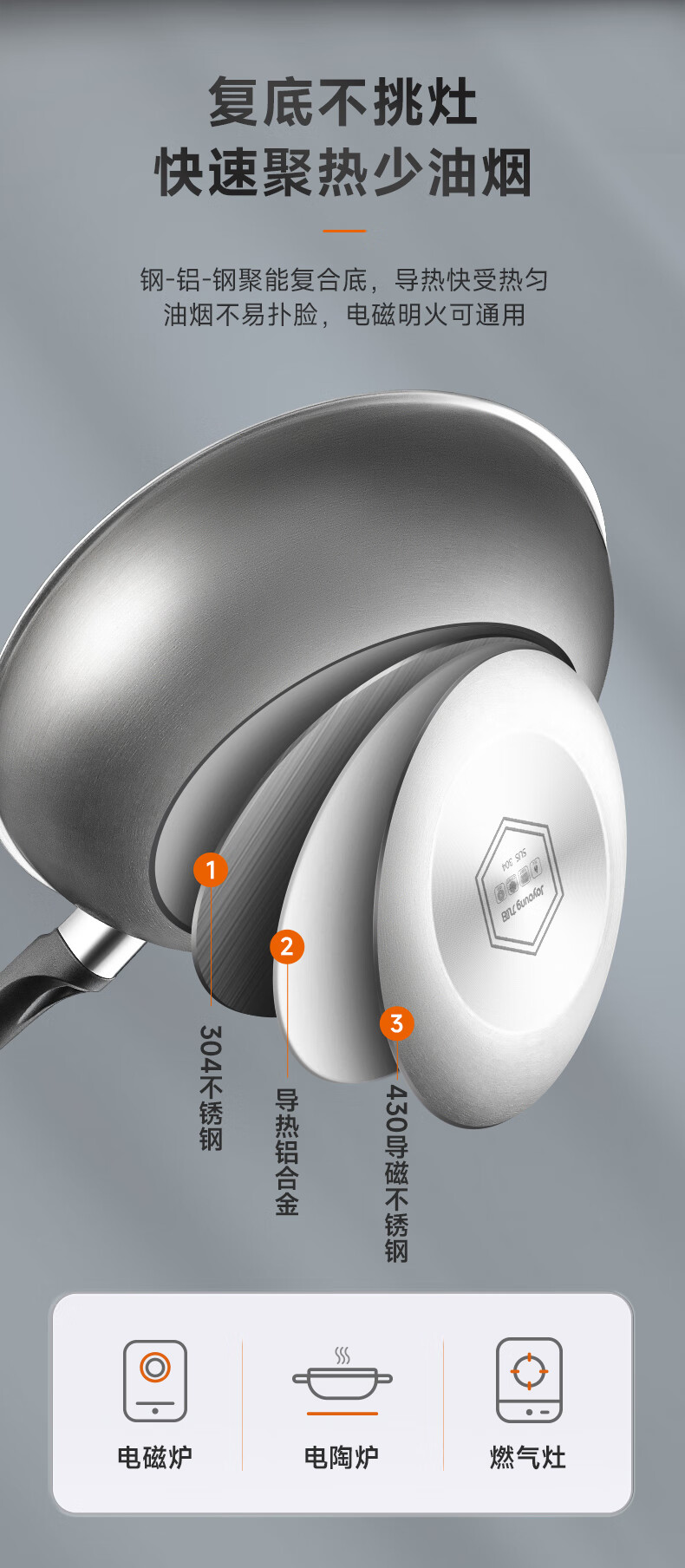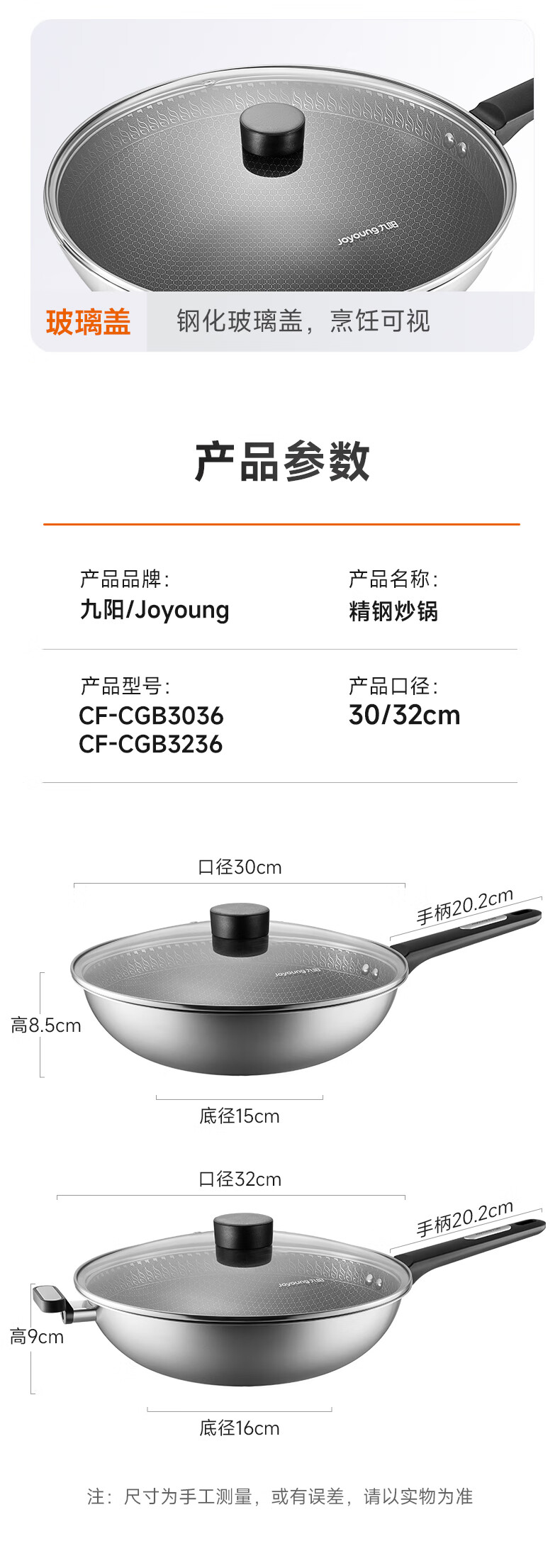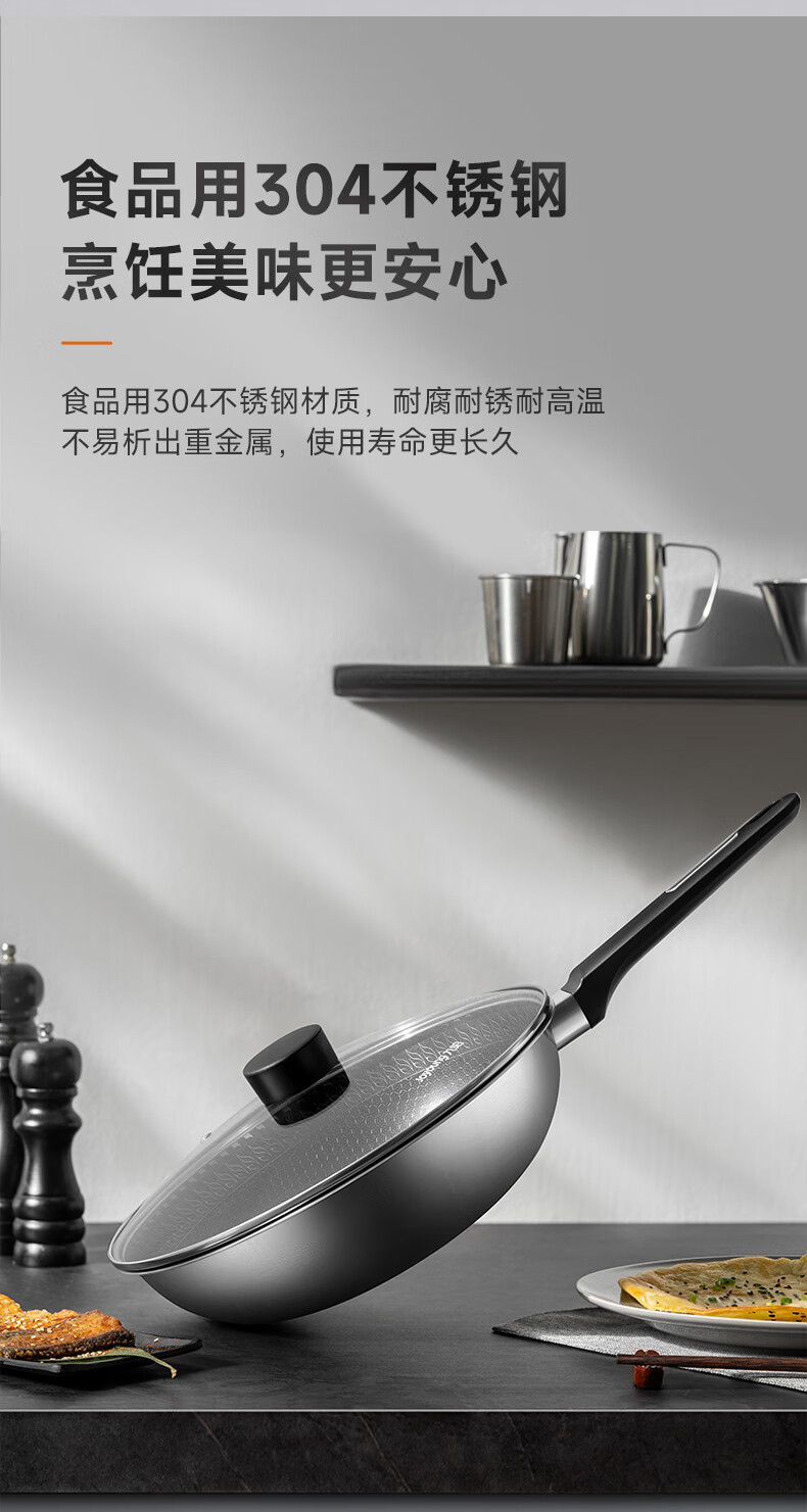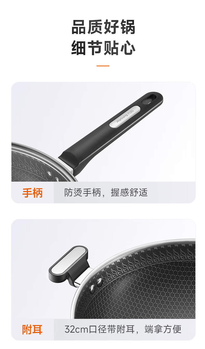 九阳(Joyoung)炒锅不锈钢蜂窝不粘炒菜锅煎锅炉灶通用32cm