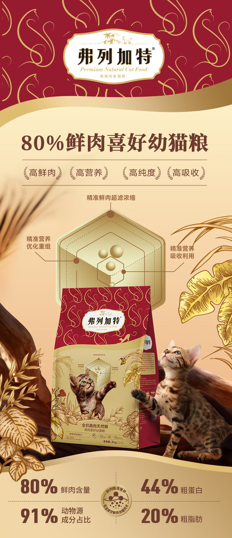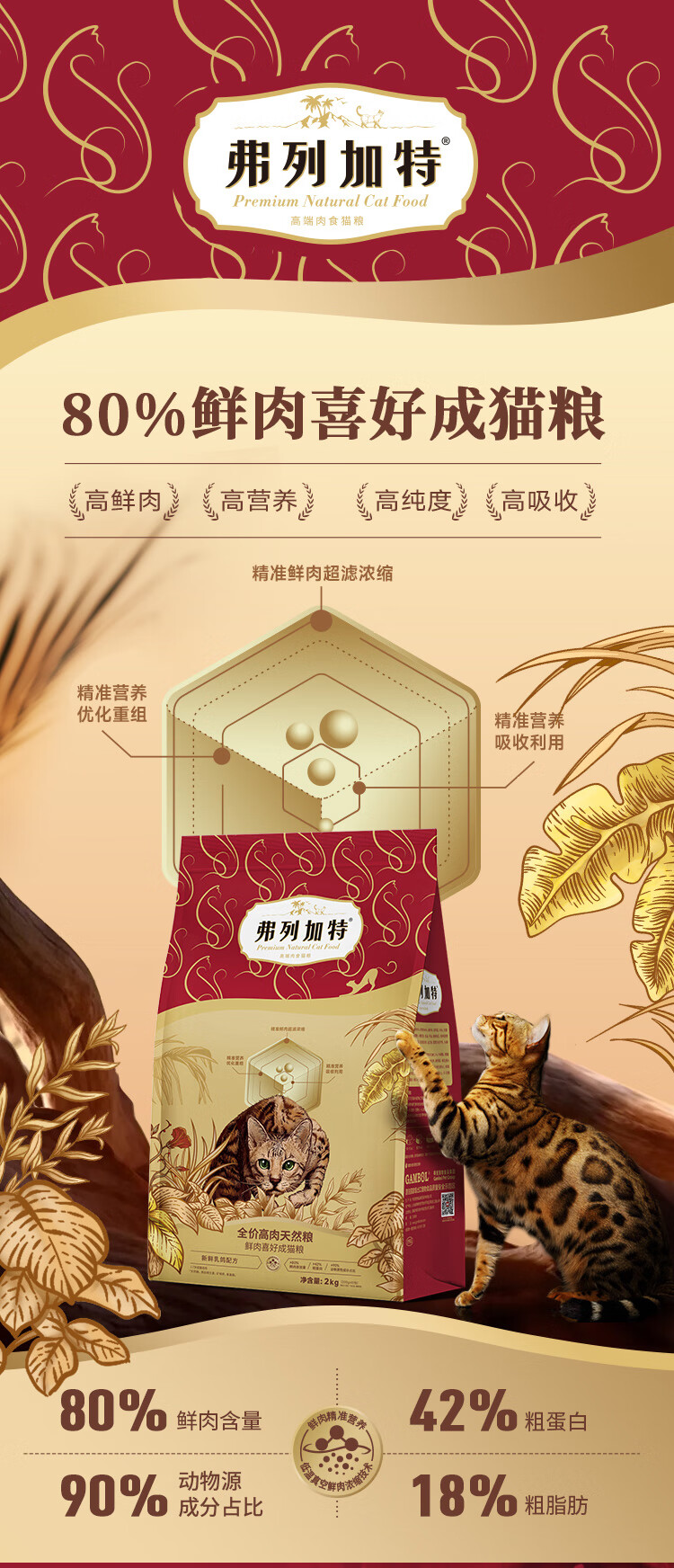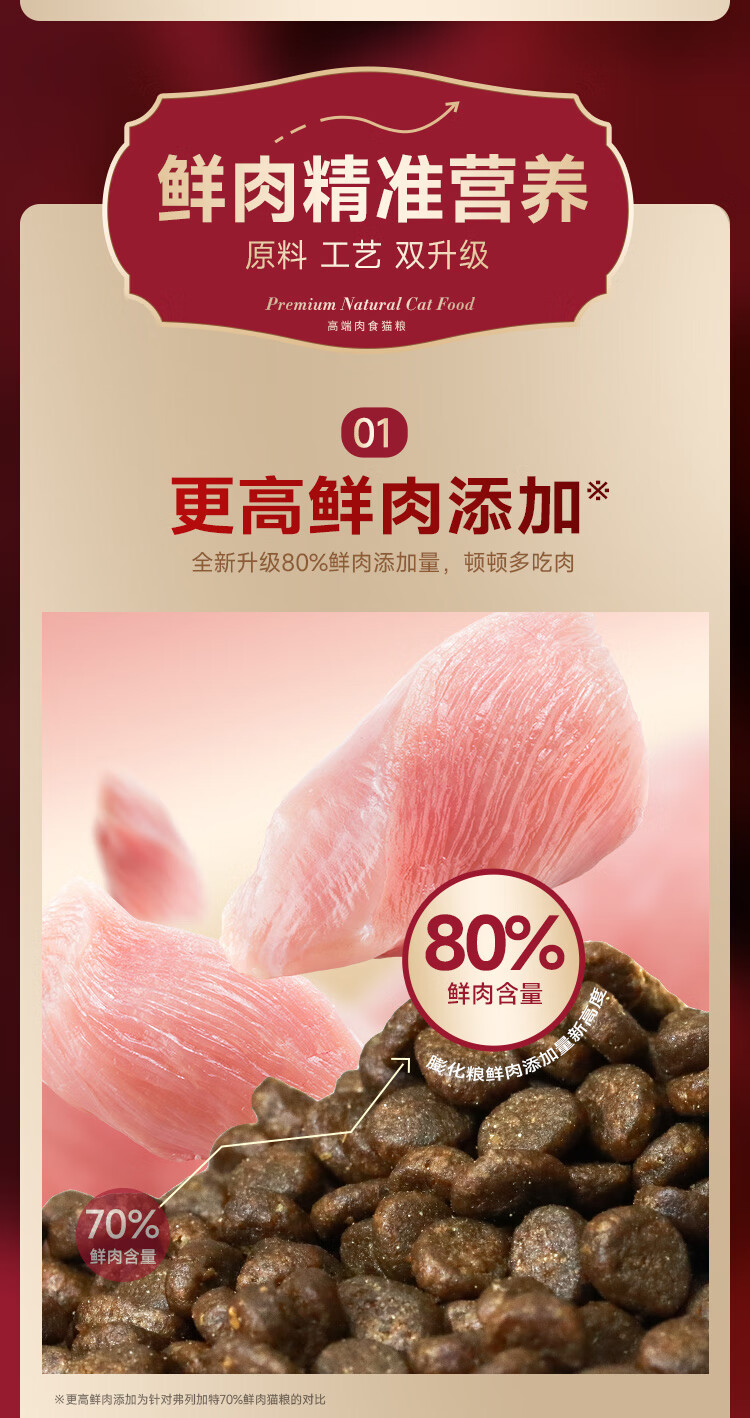 弗列加特猫粮70%高肉鲜肉冻干天然粮80%鲜肉喜好无谷全价低敏成猫粮幼猫粮 【升级80%鲜肉】成猫粮鸡肉味2kg