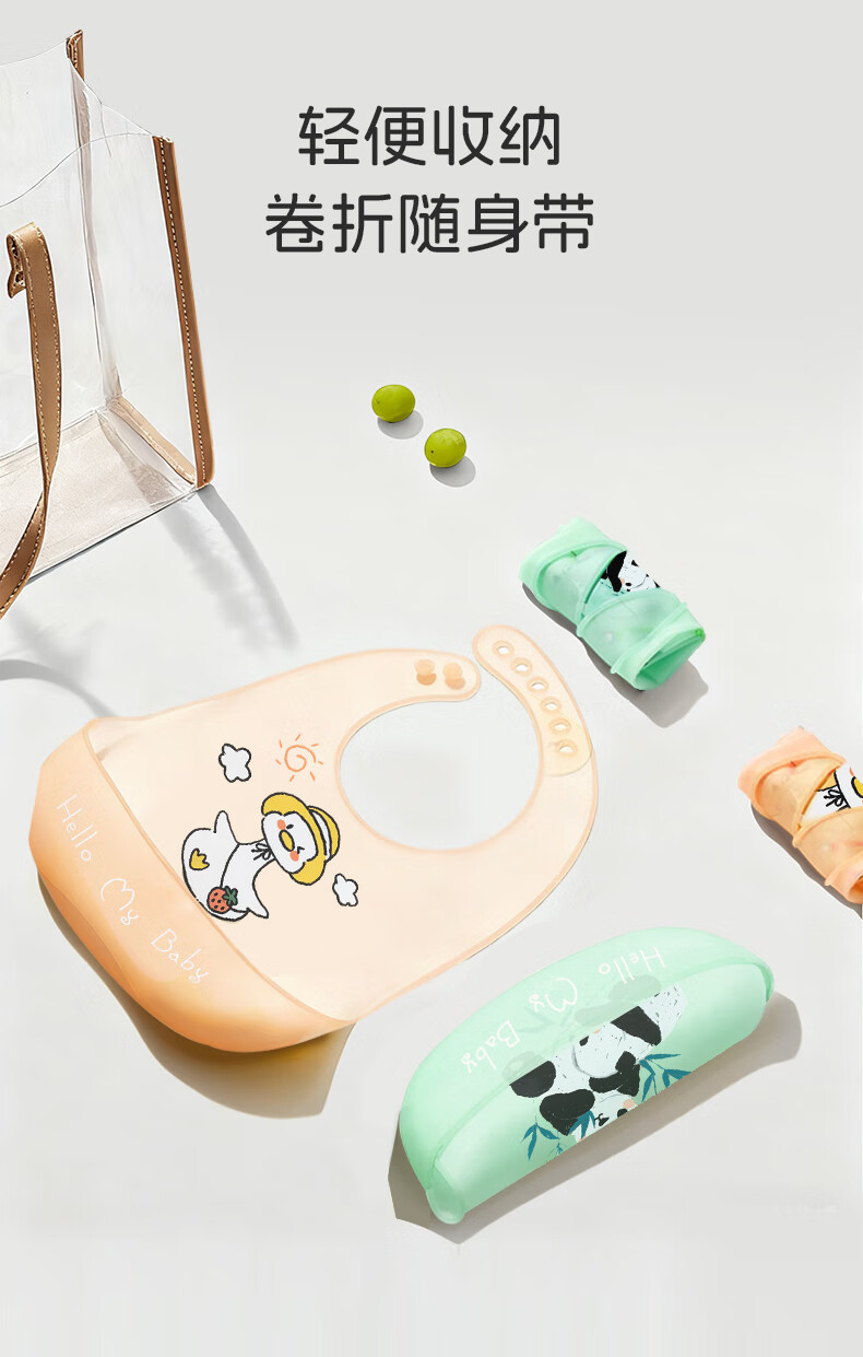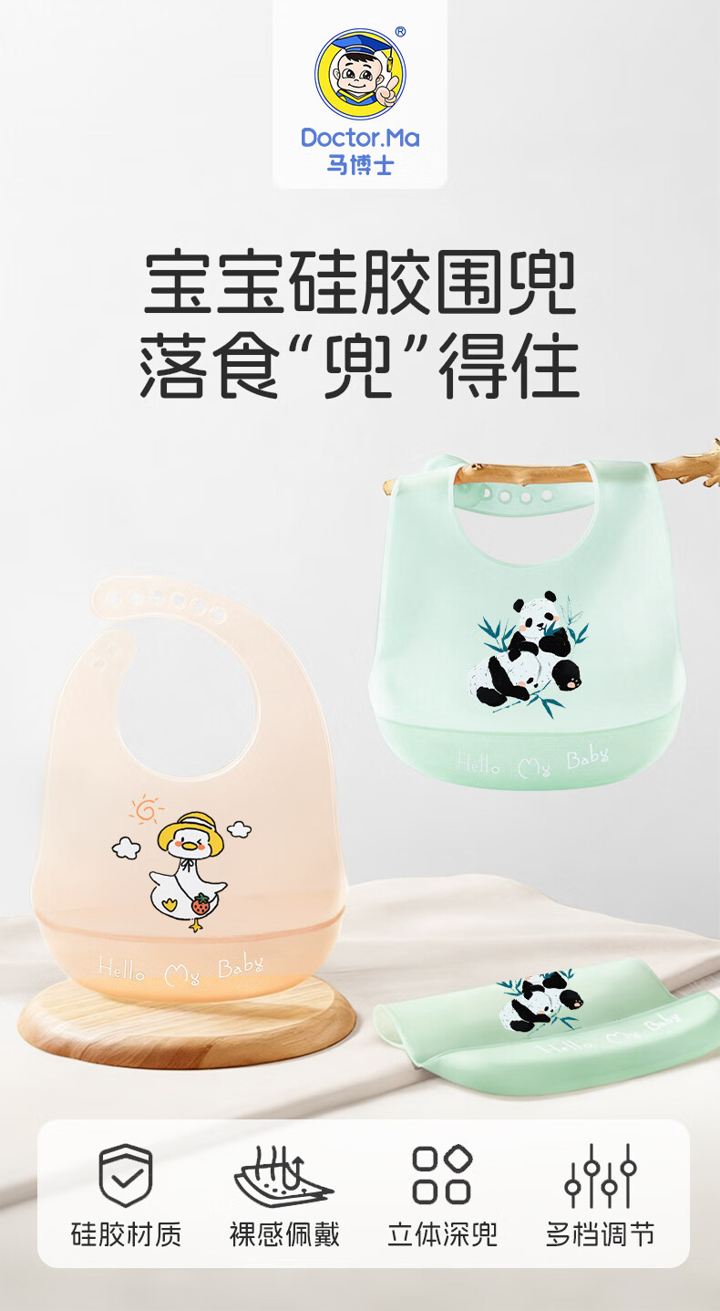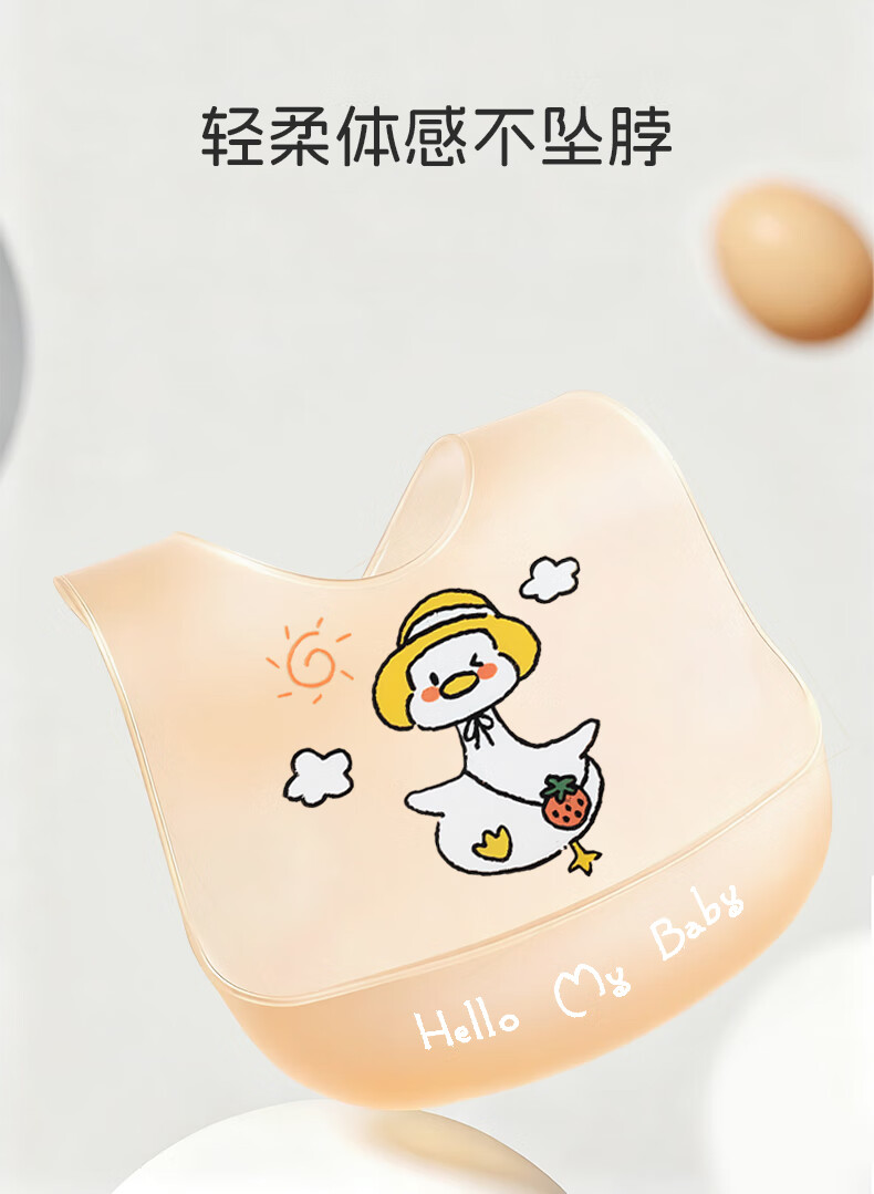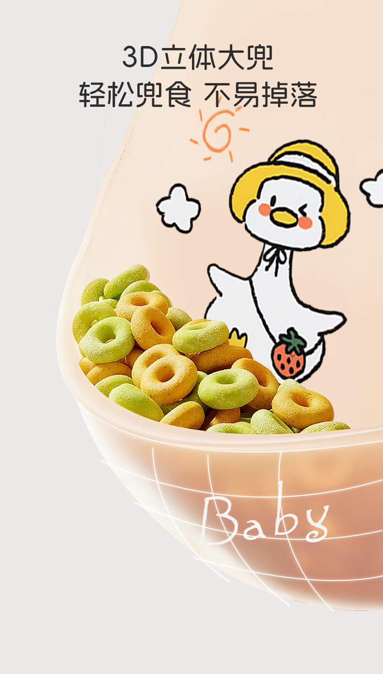 马博士 宝宝吃饭围兜防水硅胶辅食饭兜婴儿便携儿童围嘴零食餐兜 草莓鸭