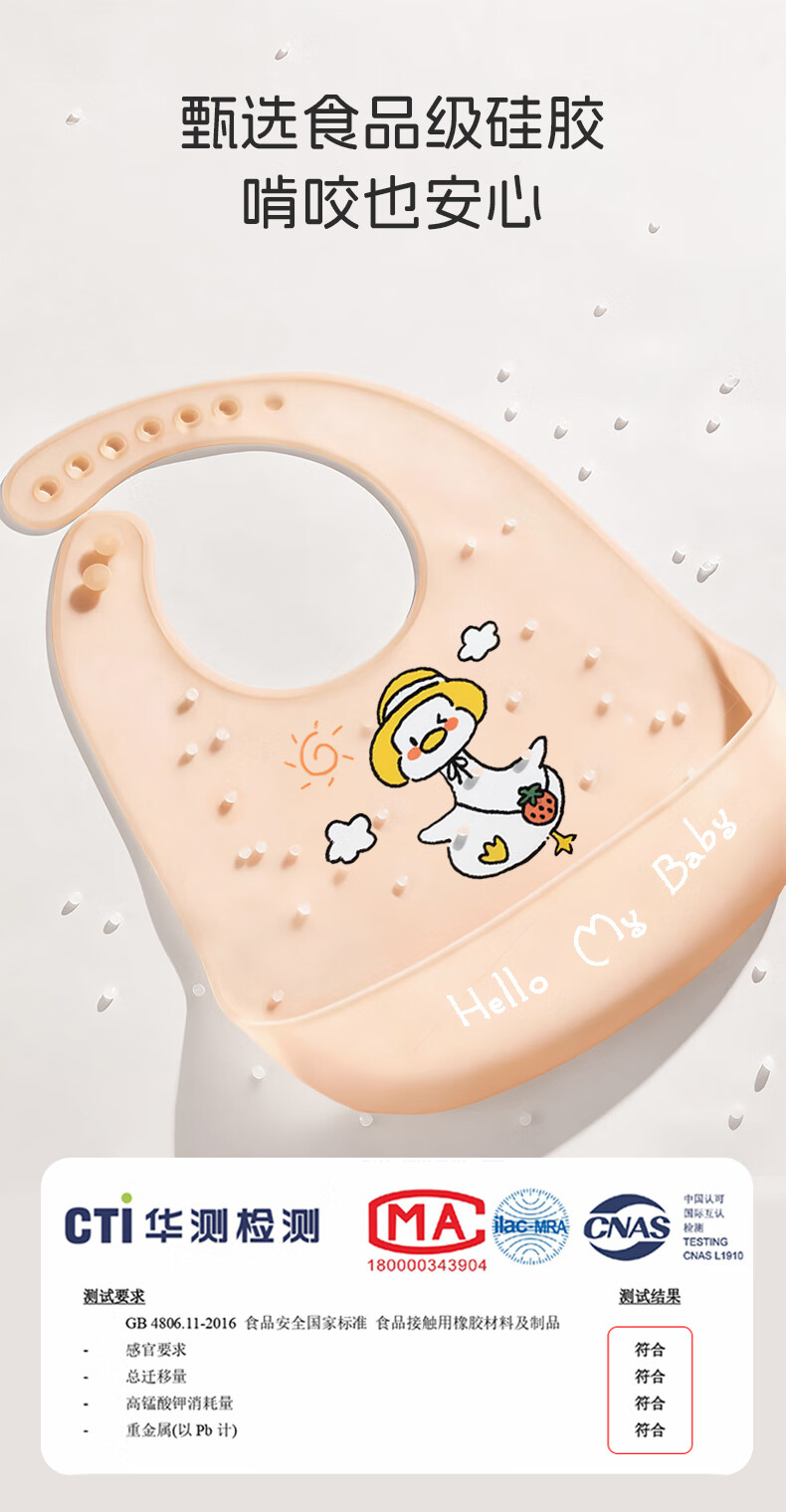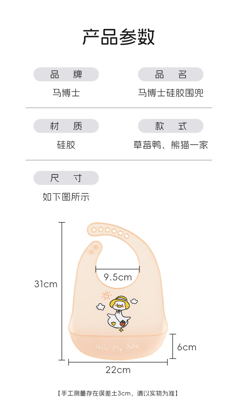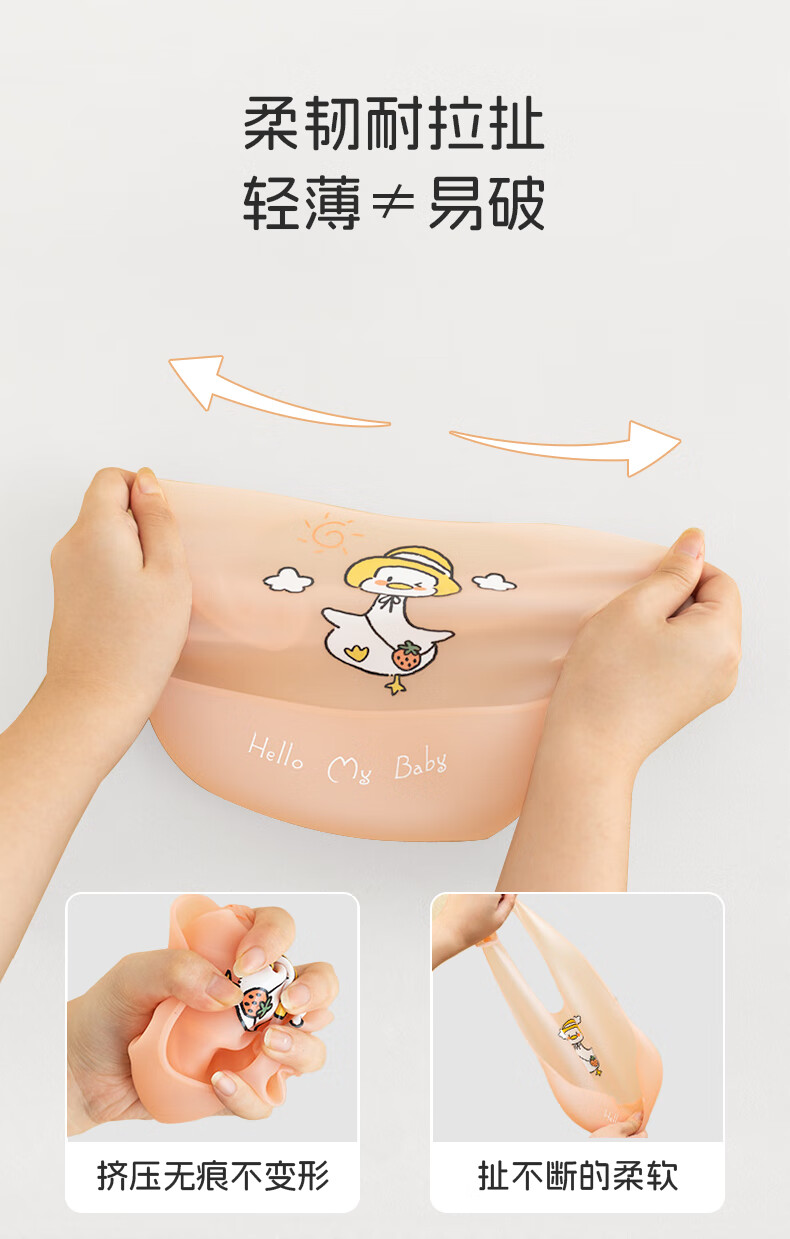 马博士 宝宝吃饭围兜防水硅胶辅食饭兜婴儿便携儿童围嘴零食餐兜 草莓鸭