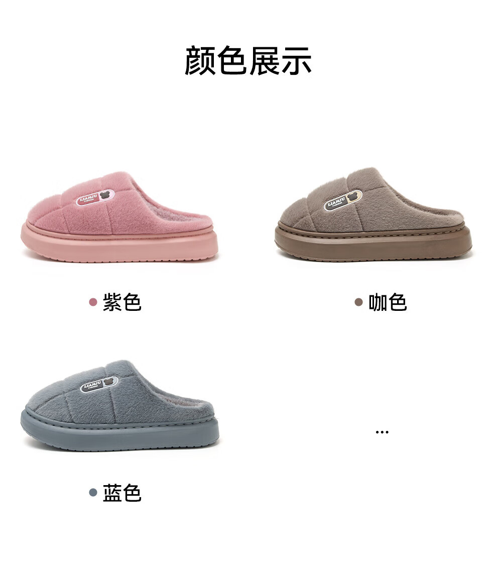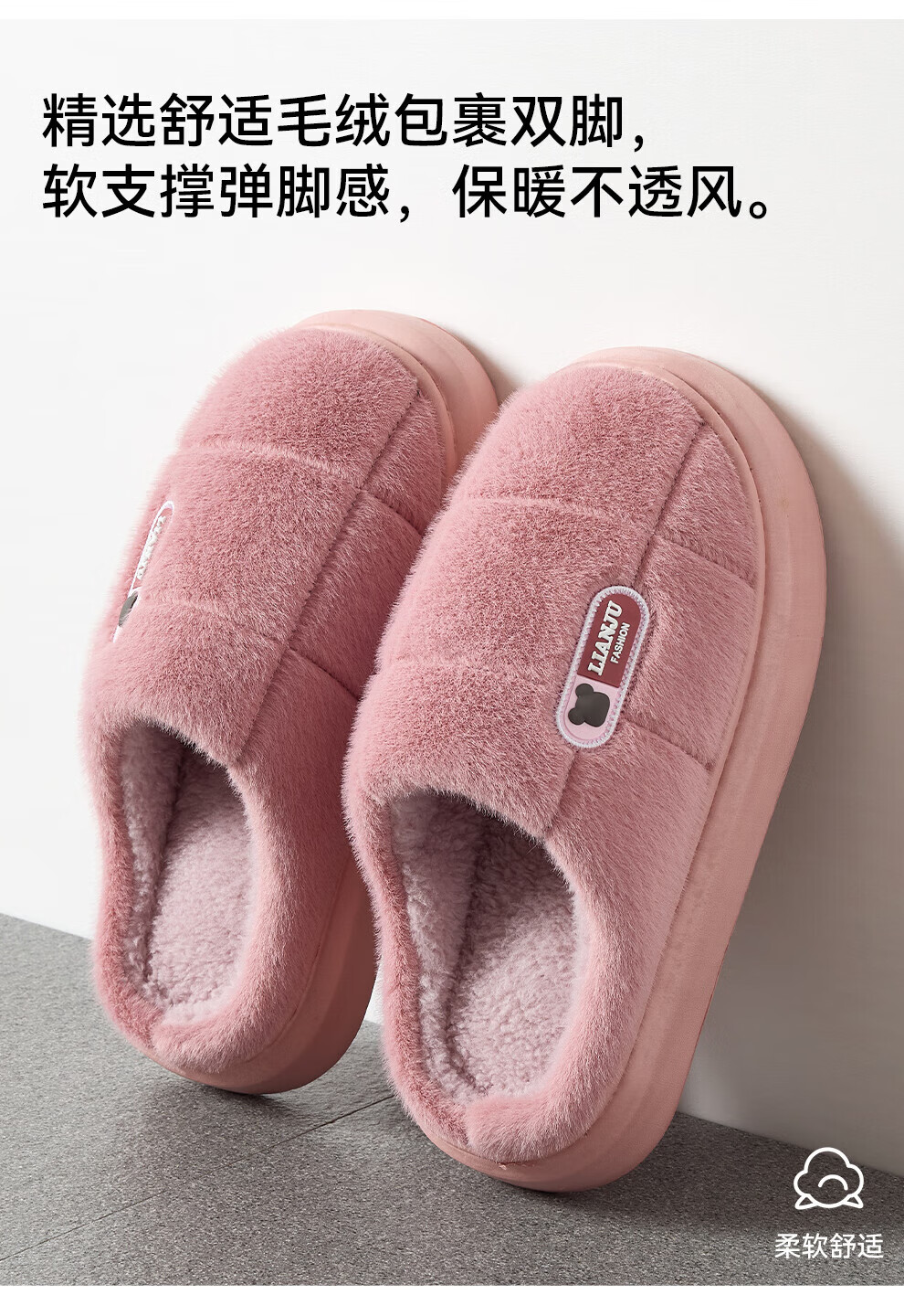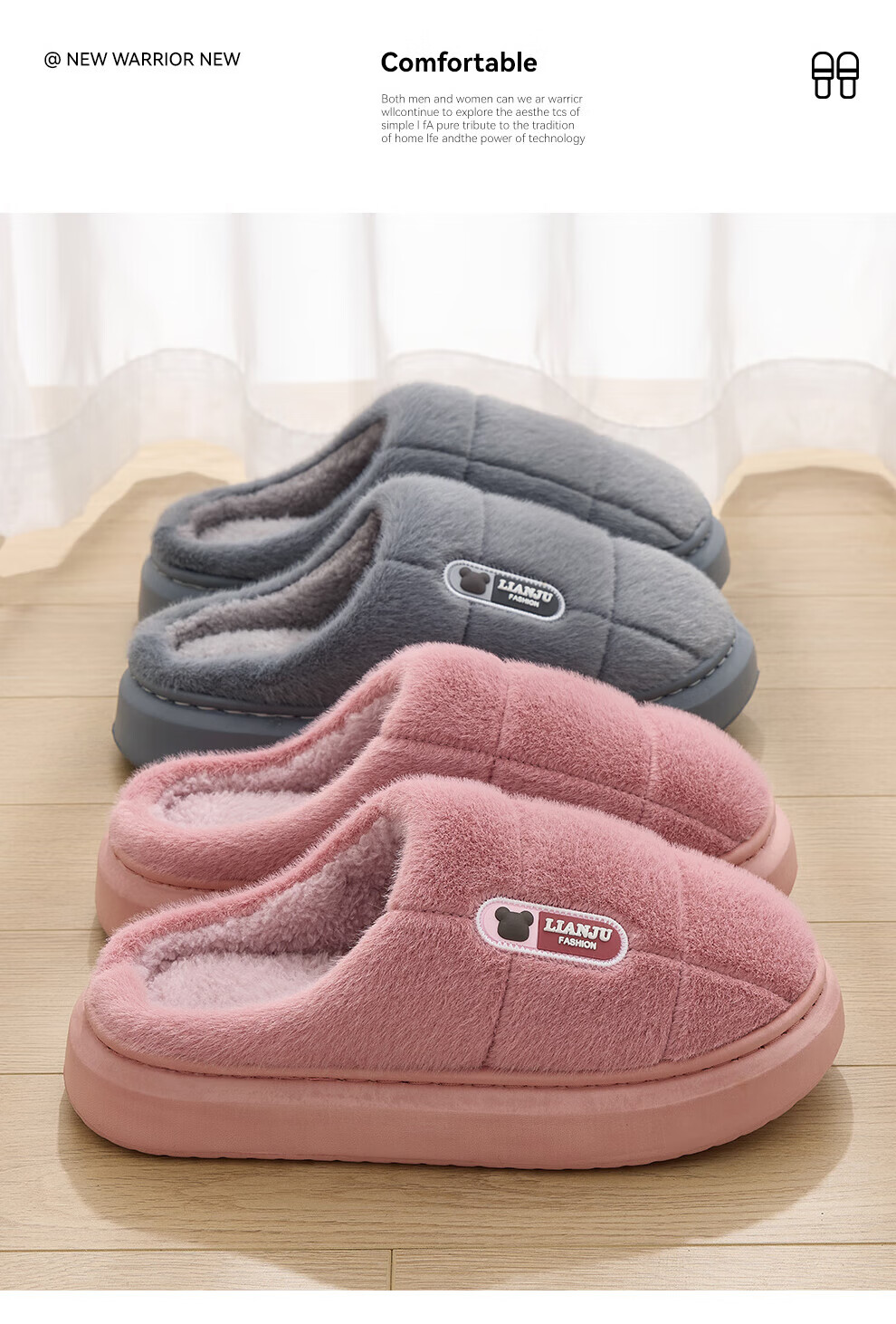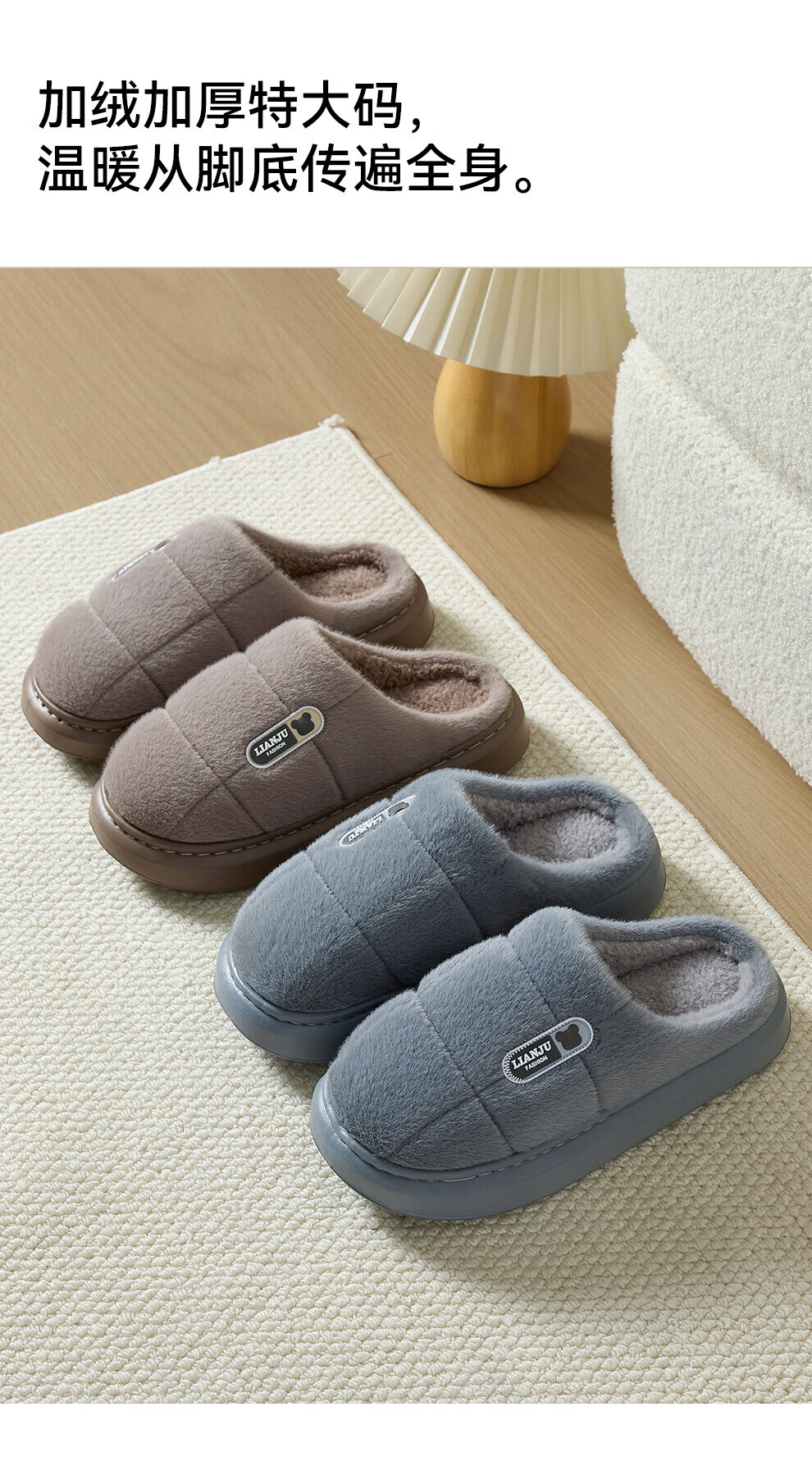 FZT棉拖鞋女2025秋冬新款保暖加绒防滑防臭厚底简约居家外穿棉拖鞋男 紫色 36-37 适合35-36【内长220mm】