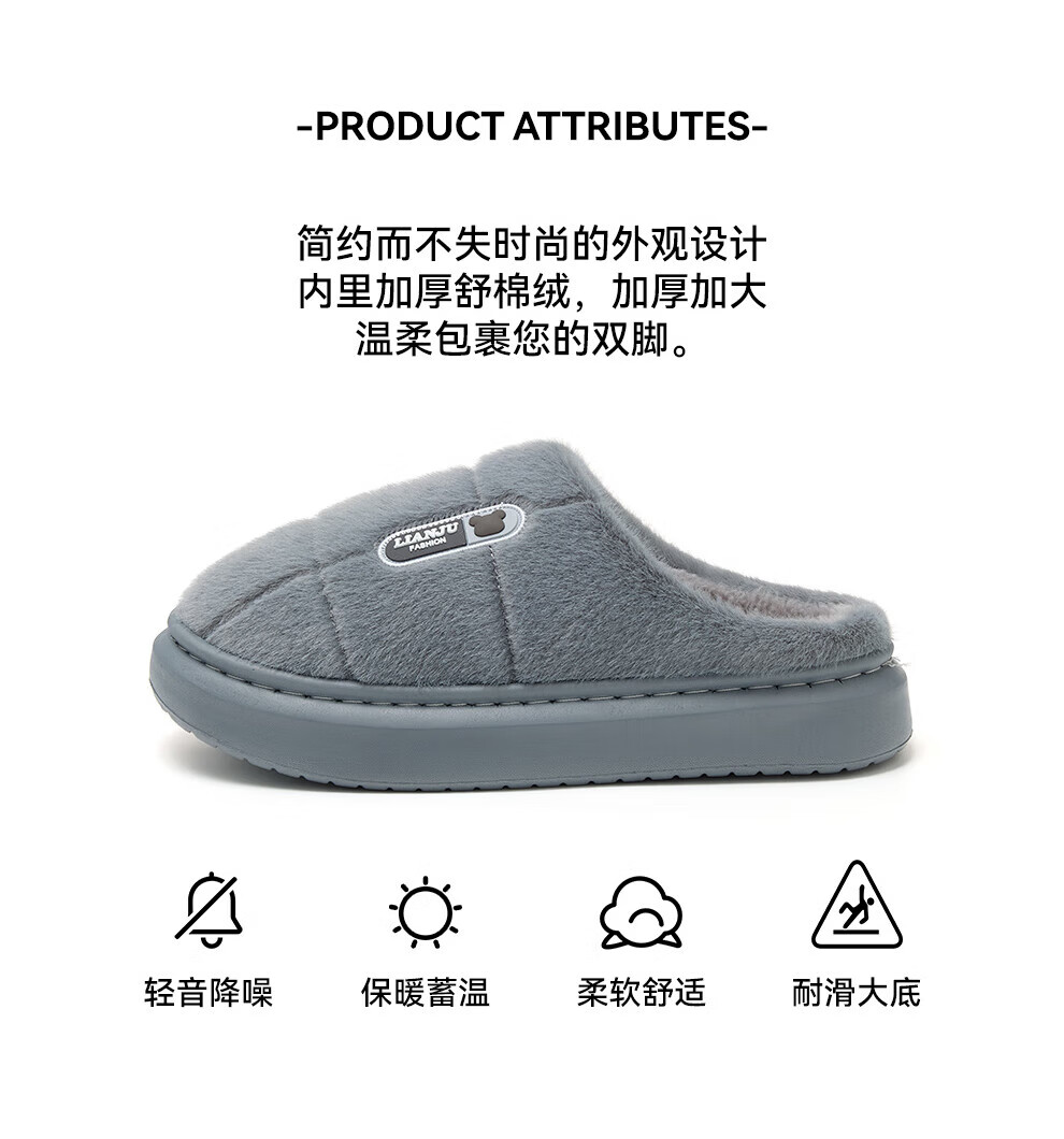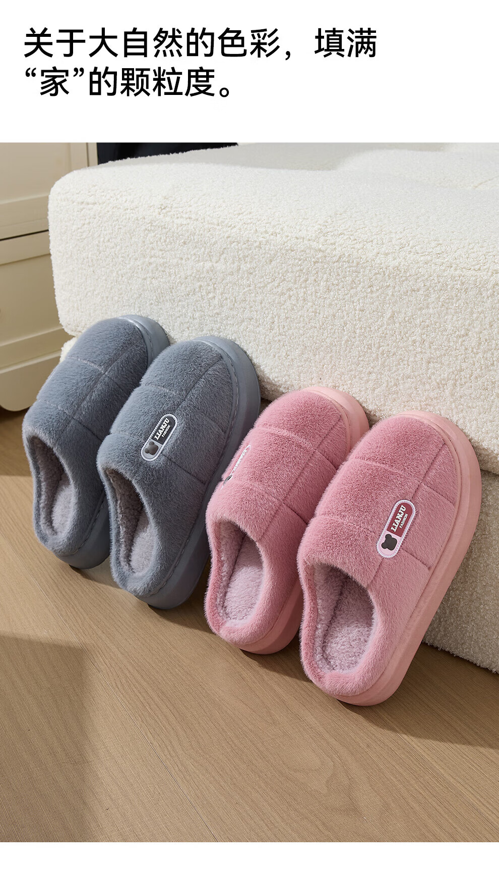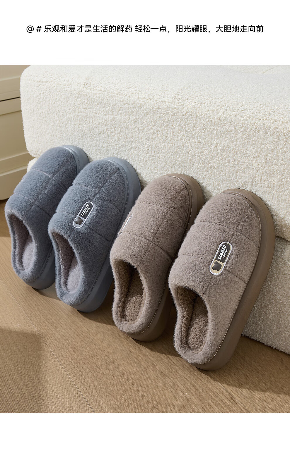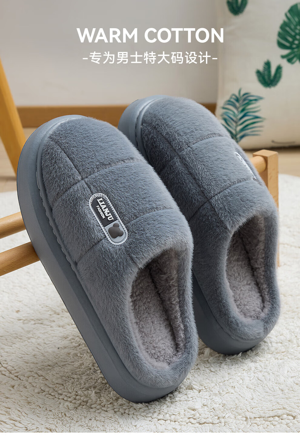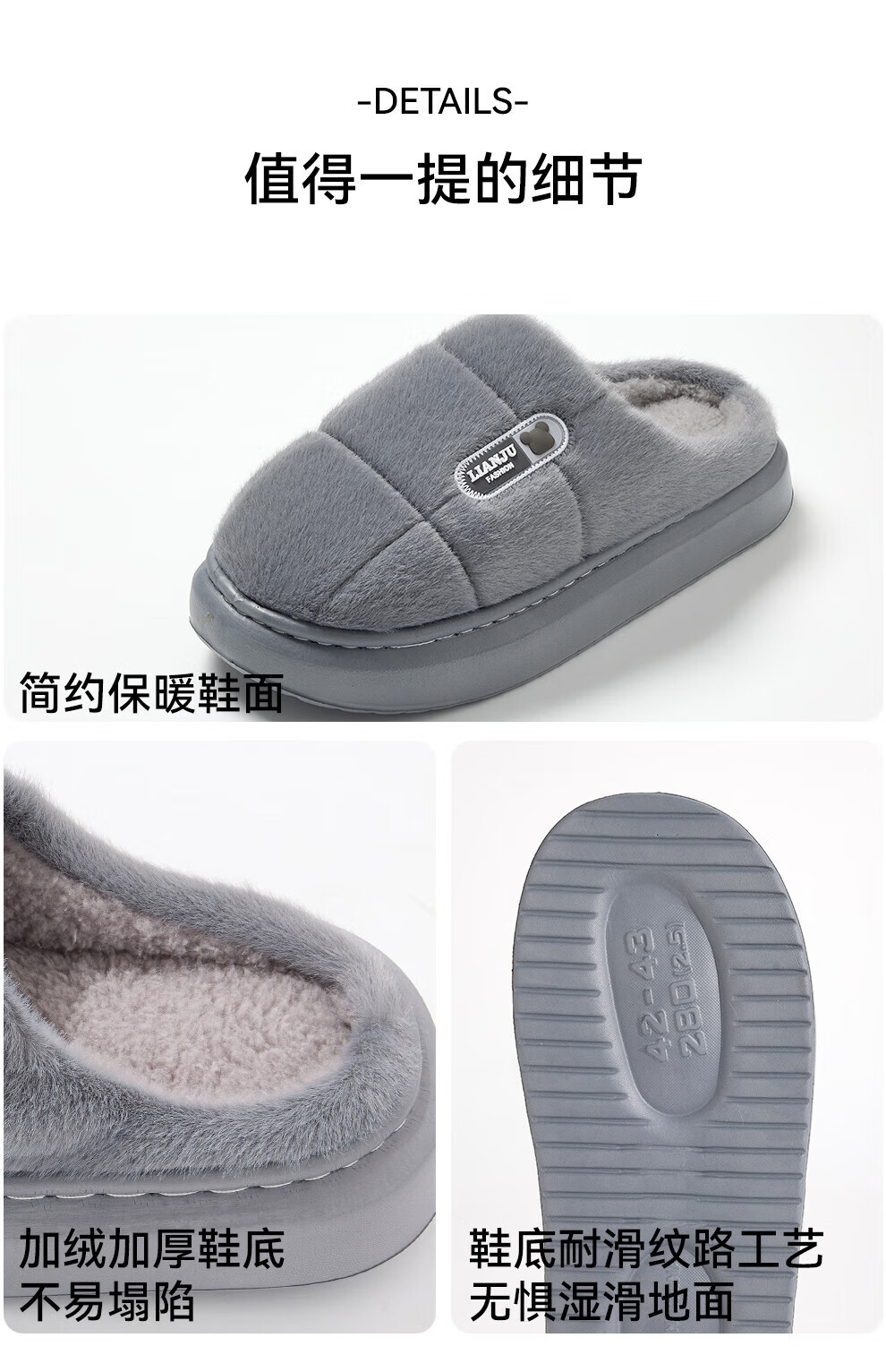 FZT棉拖鞋女2025秋冬新款保暖加绒防滑防臭厚底简约居家外穿棉拖鞋男 紫色 36-37 适合35-36【内长220mm】