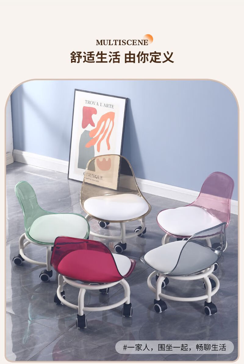 亚克力小凳子静音带万向轮儿童学步凳网红小椅子滑轮矮凳浴室凳 颜色随机【活动款】