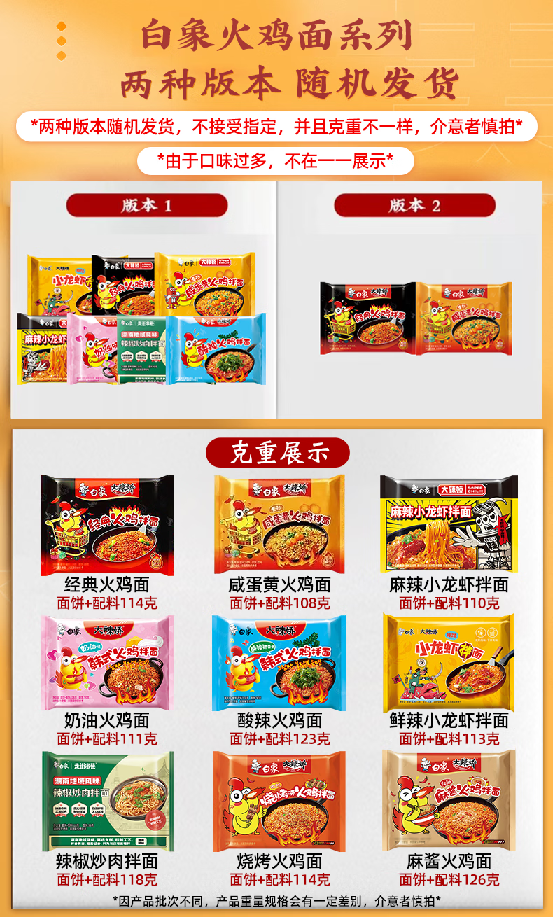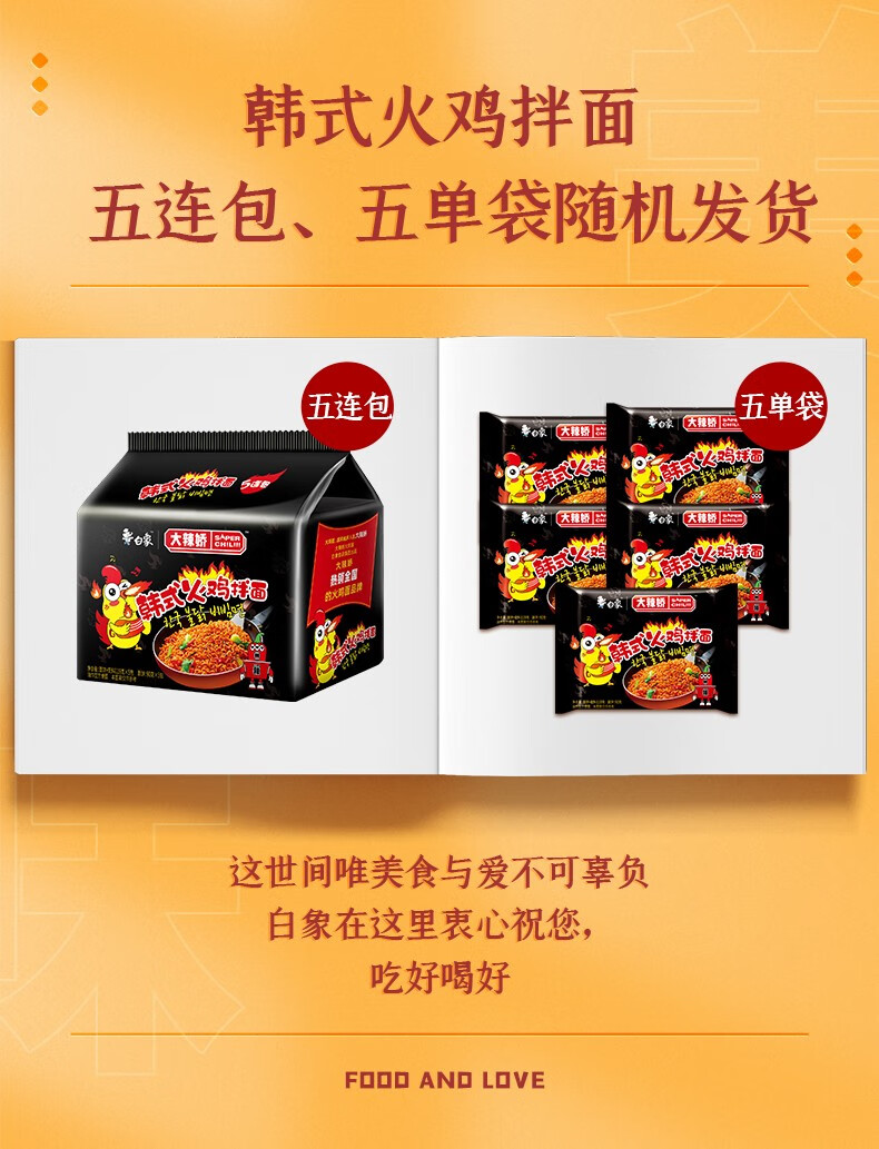 白象火鸡面 大辣娇 干拌面泡面 方便面超辣速食袋装国产网红整箱 【5包】韩式火鸡面114g