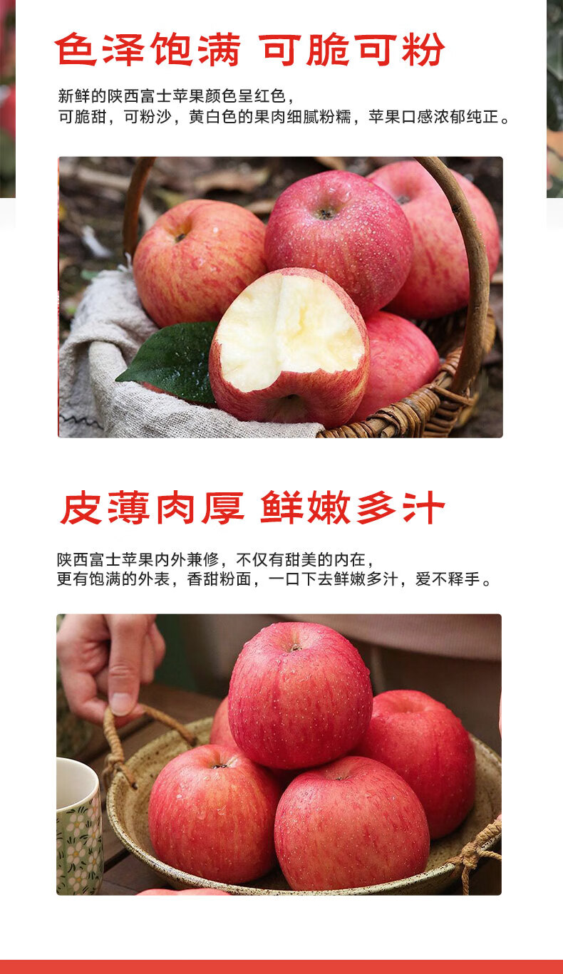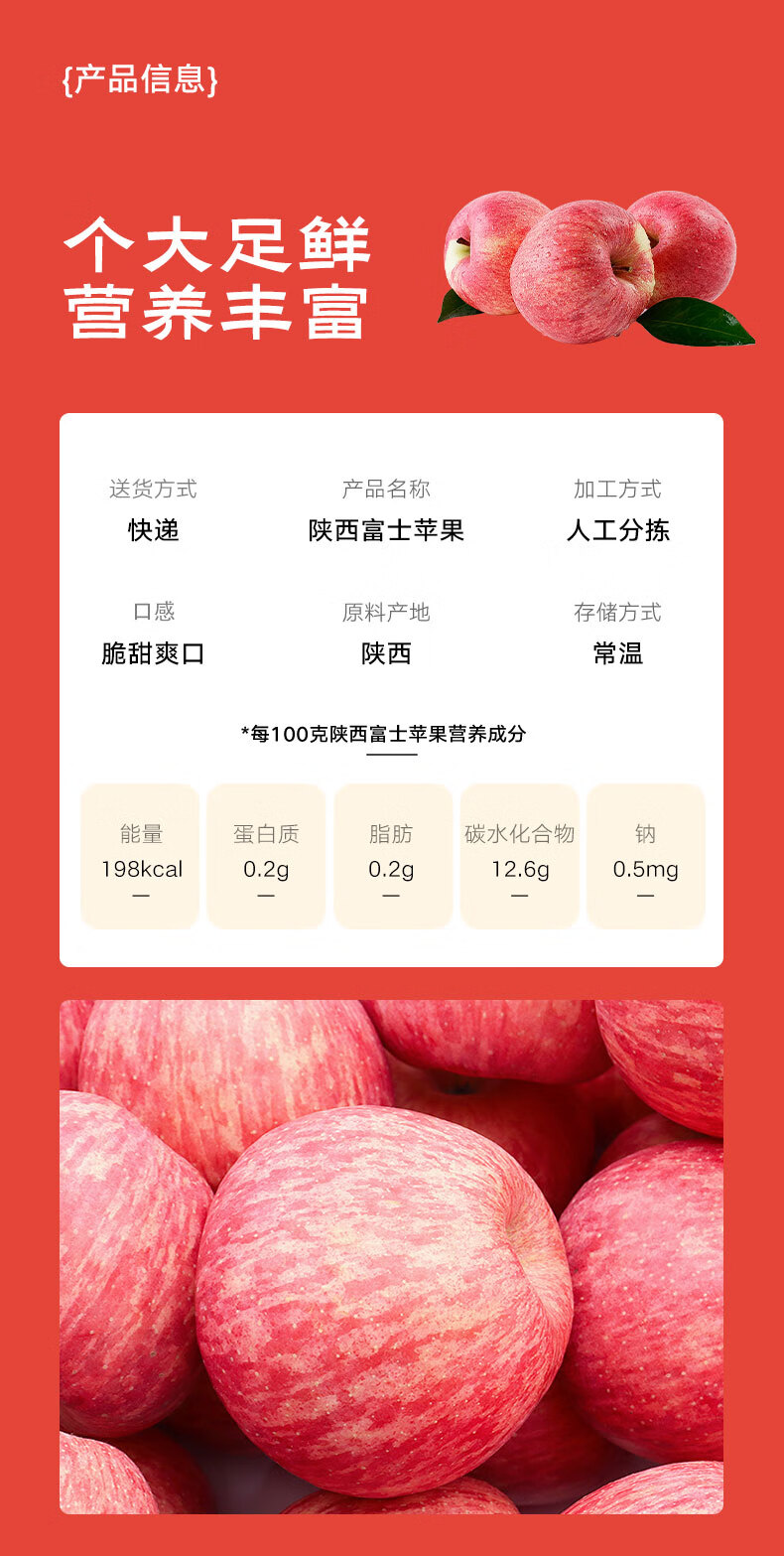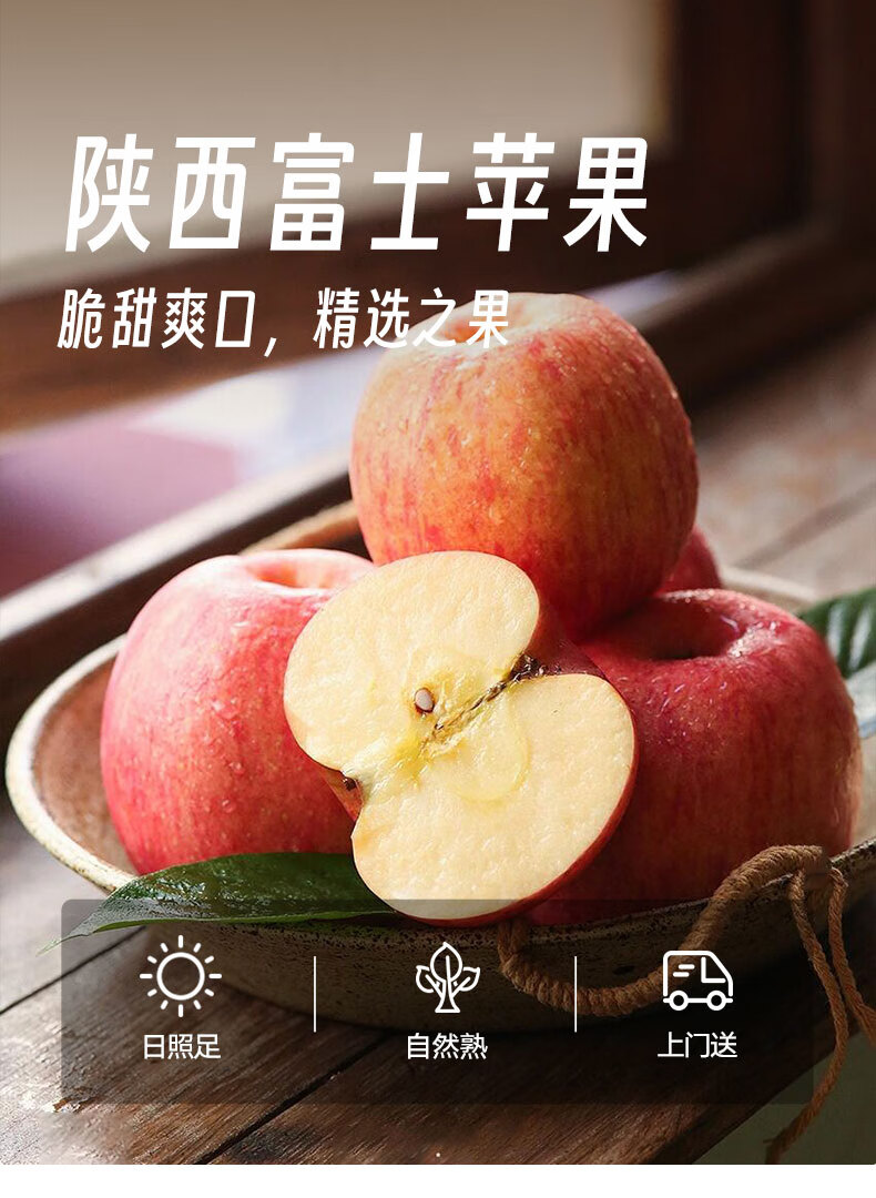 京鲜生陕西洛川红富士苹果 净重5斤 单果75-80mm 新鲜水果 源头直发