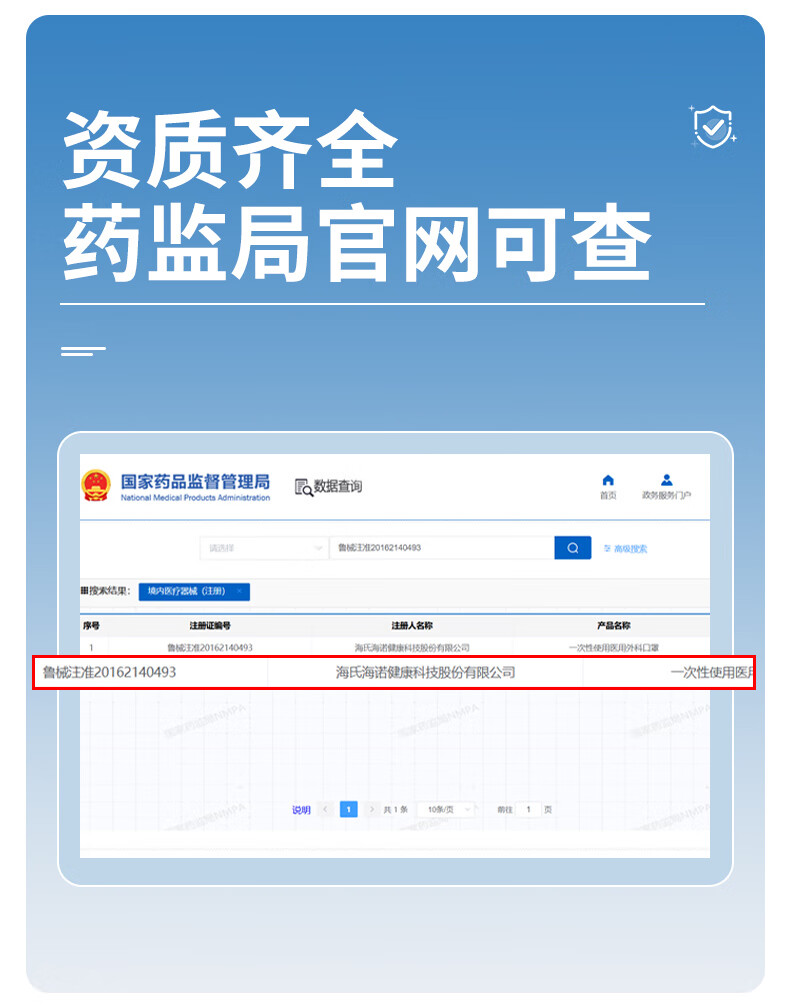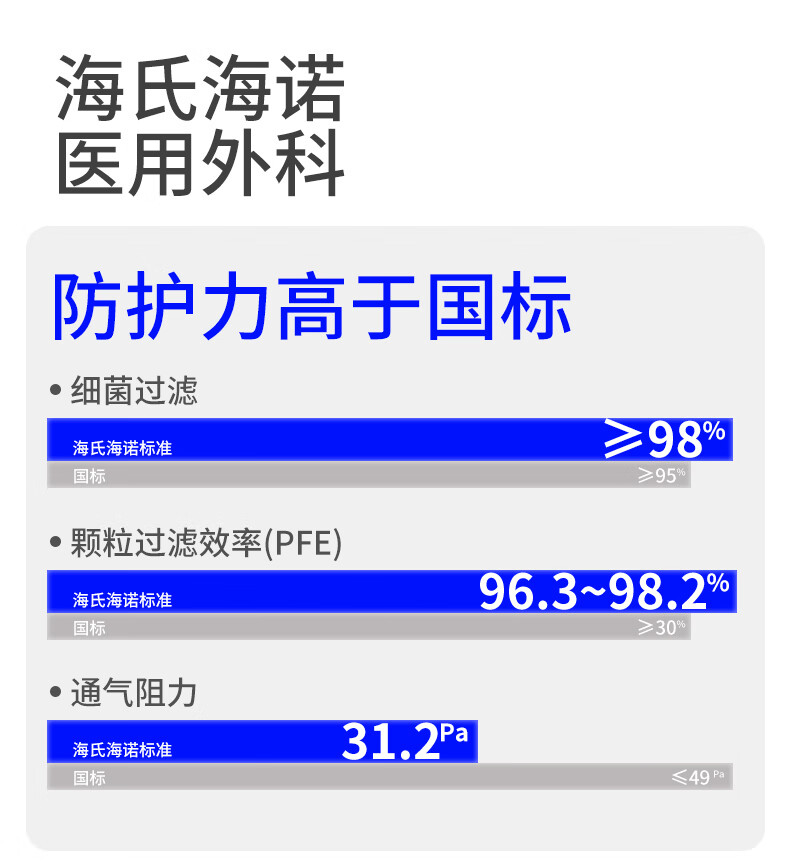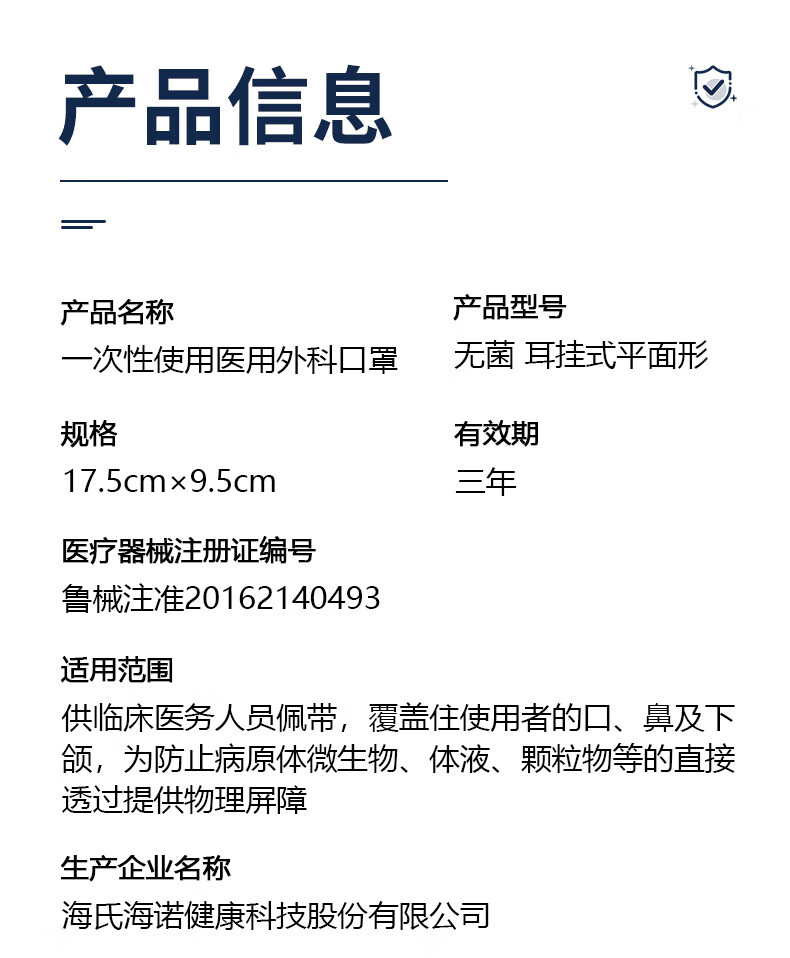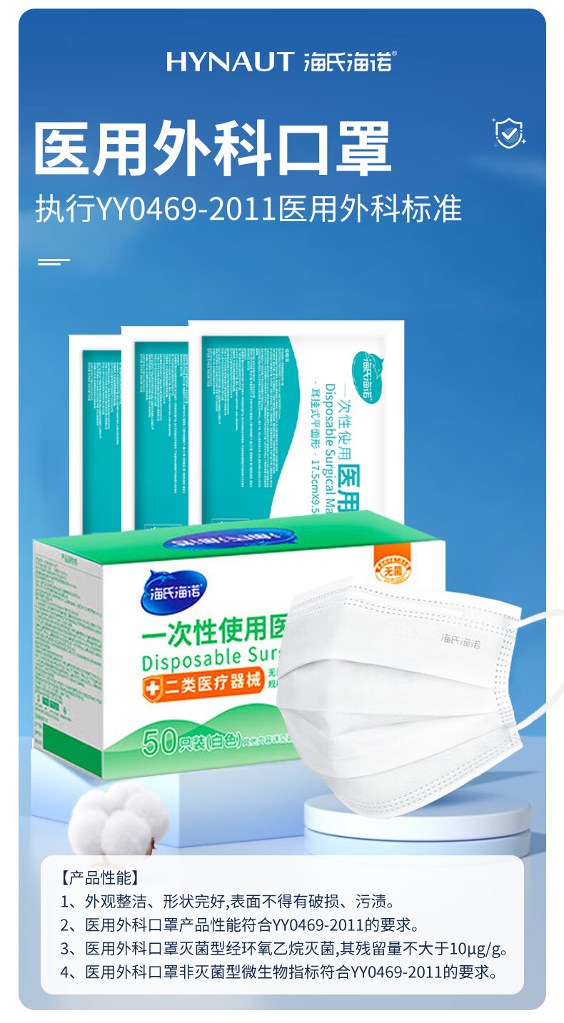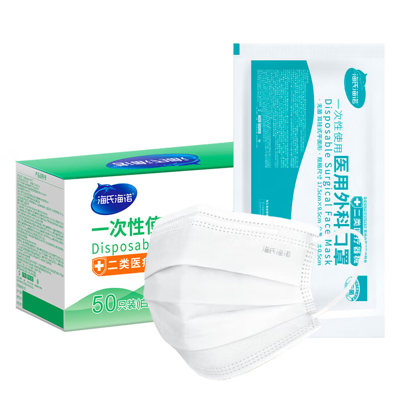 海氏海诺一次性医用外科口罩灭菌级独立包装一只一袋口罩防尘白色50只