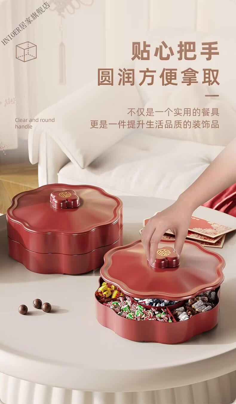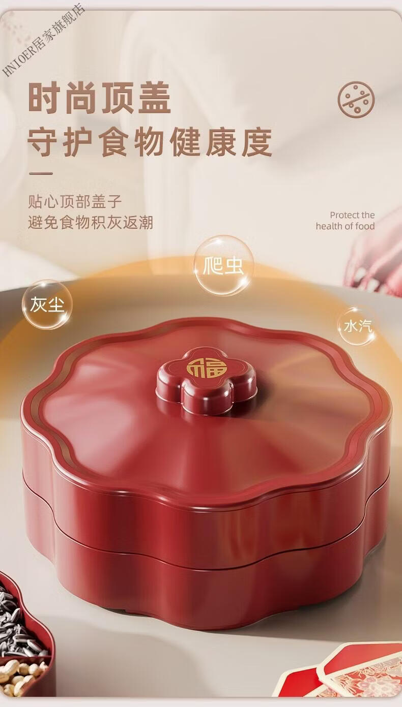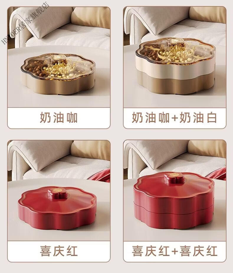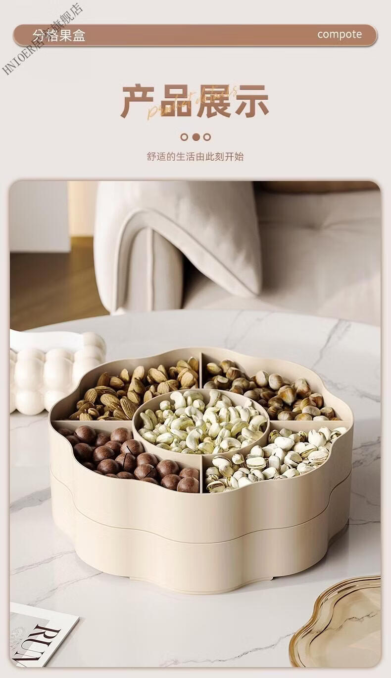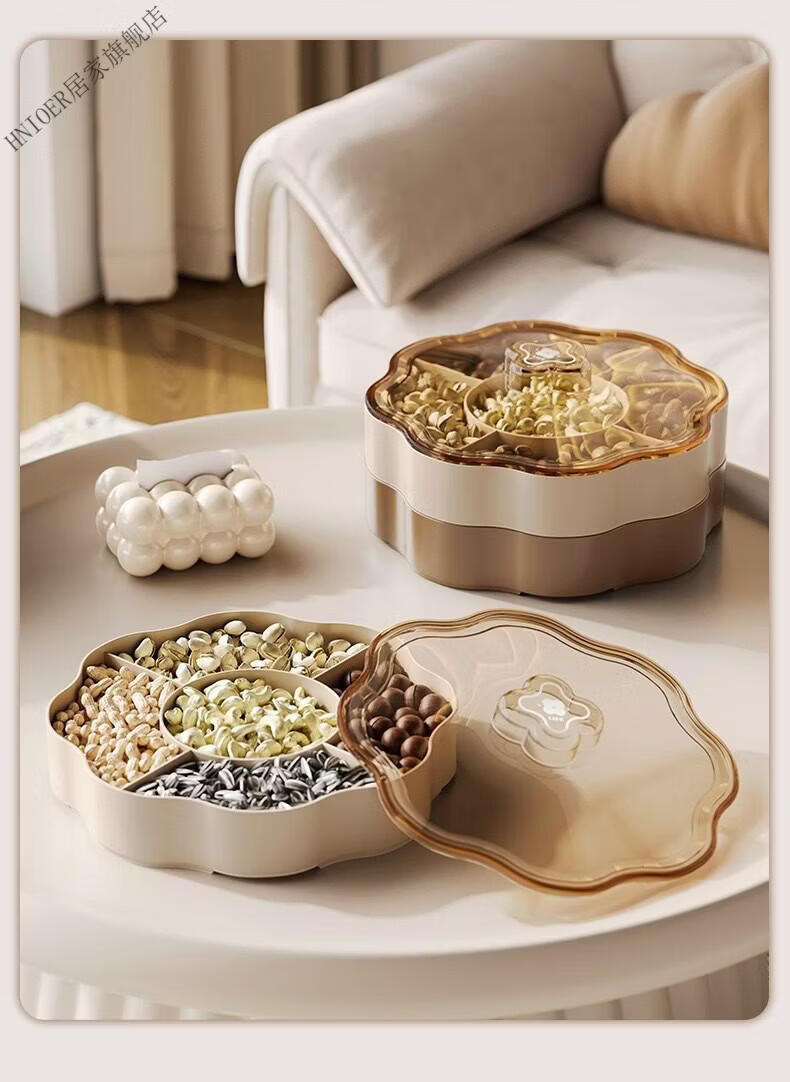 温诗欧果盘新年新婚水果盘坚果盘家用糖果盒客厅茶几瓜子零食摆盘收纳盒 奶油色-双层【五分格/带盖】