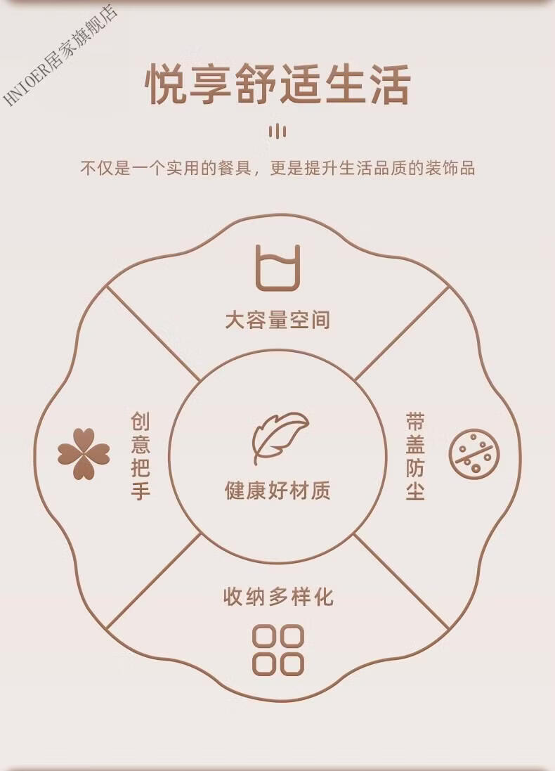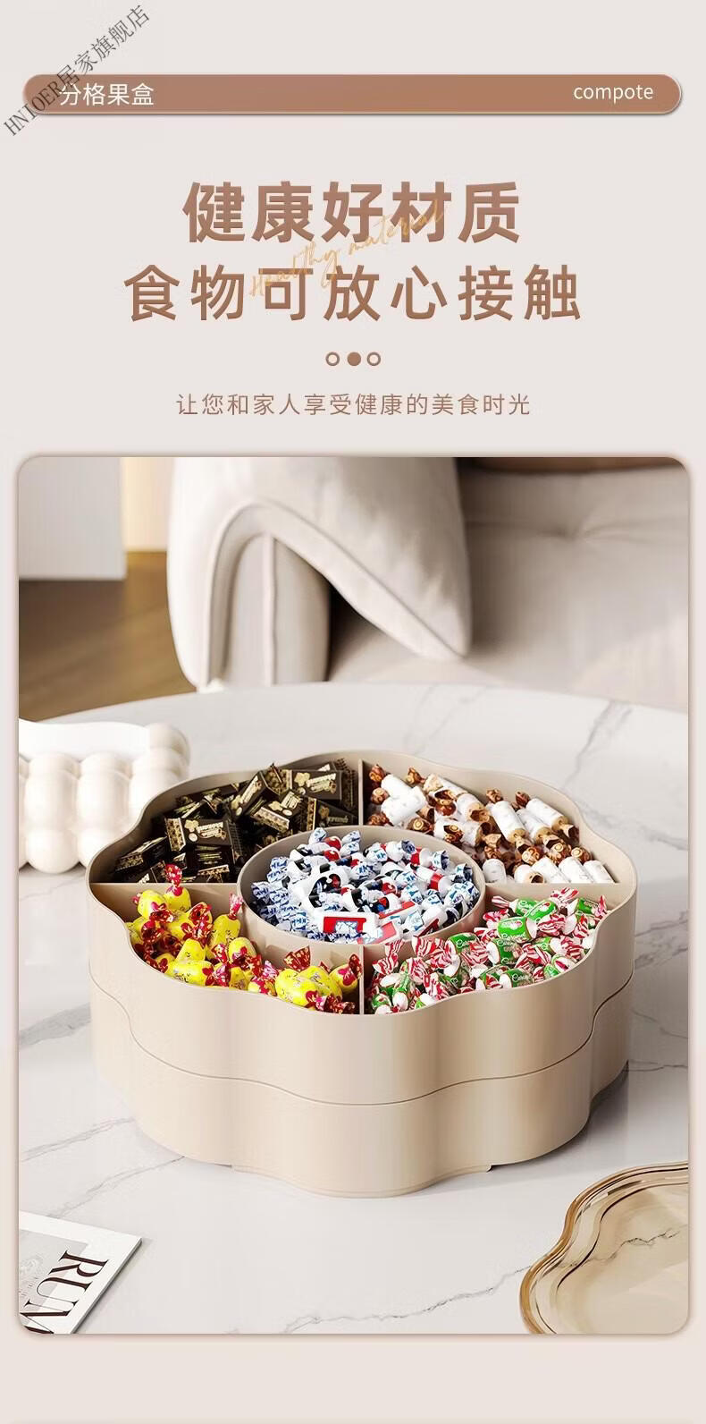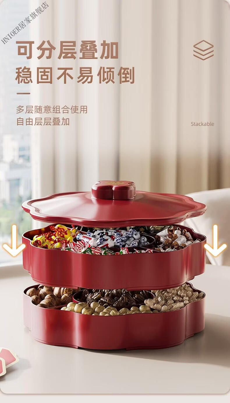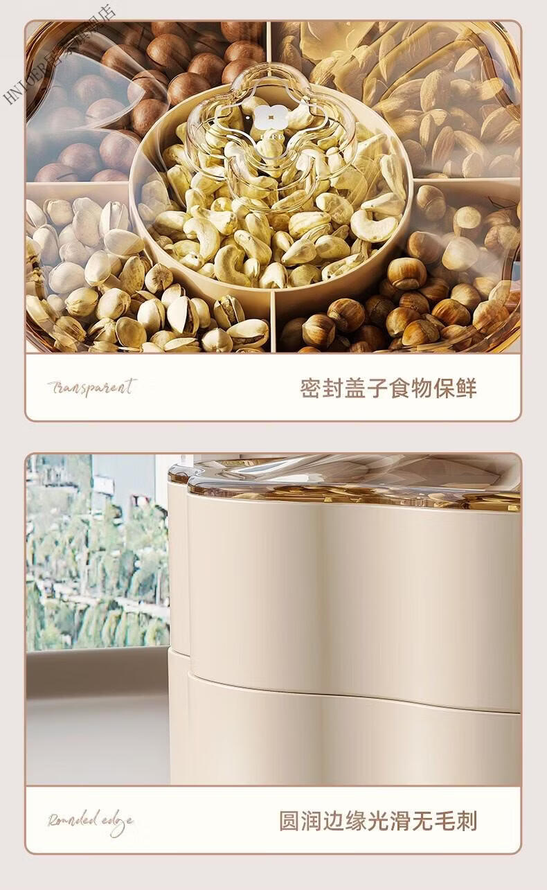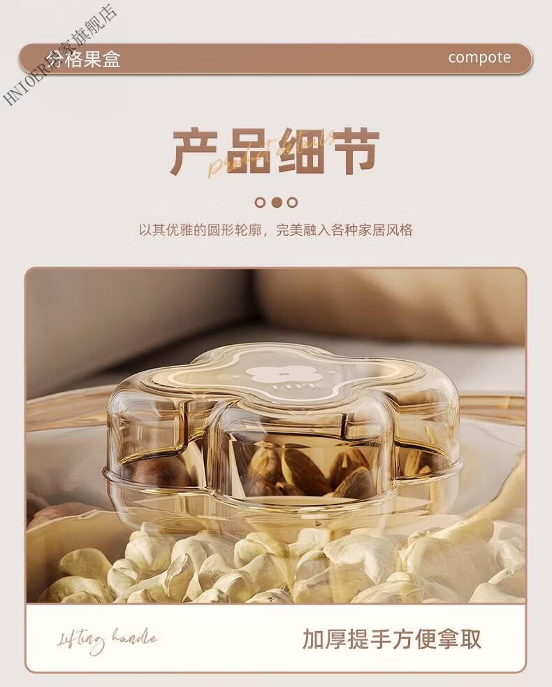 温诗欧果盘新年新婚水果盘坚果盘家用糖果盒客厅茶几瓜子零食摆盘收纳盒 奶油色-双层【五分格/带盖】