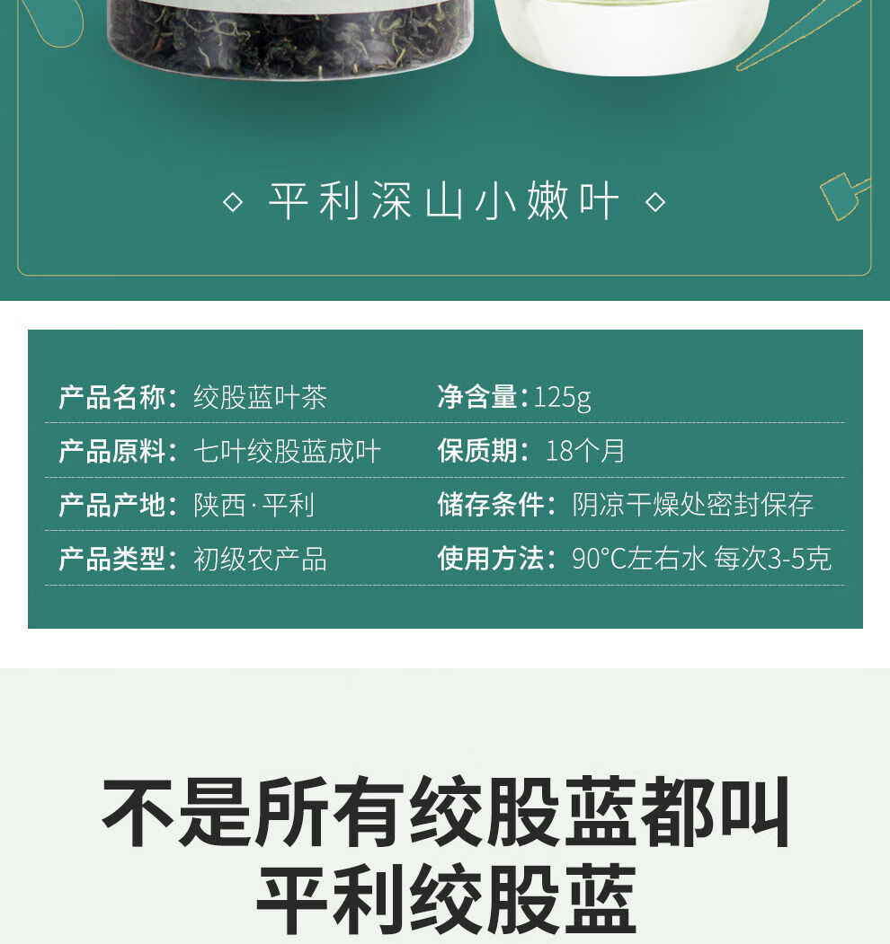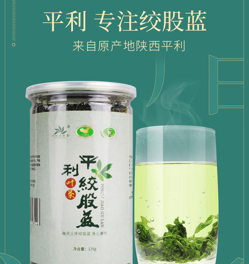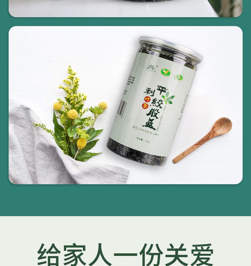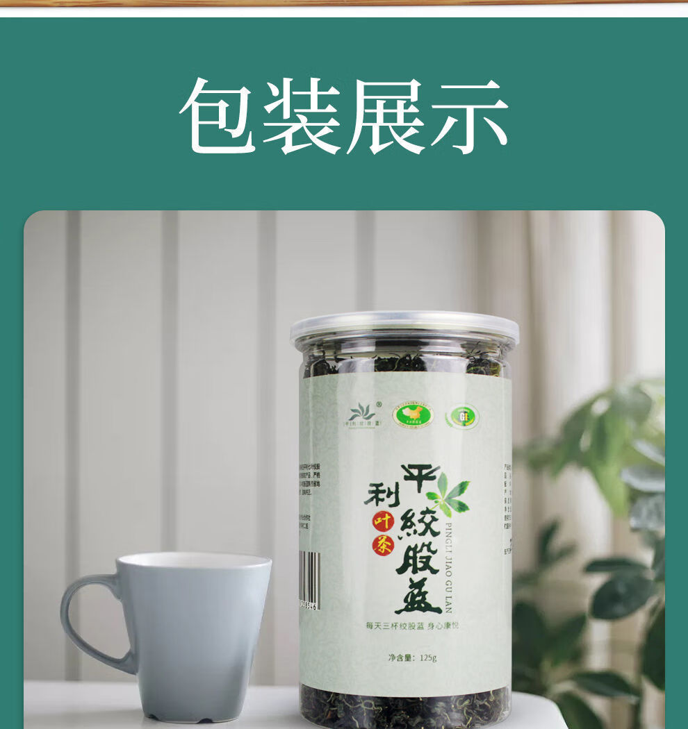 平利绞股蓝茶叶无糖(平利县核心原产地 深山小嫩叶) 七叶绞股蓝送山楂 125g*4罐