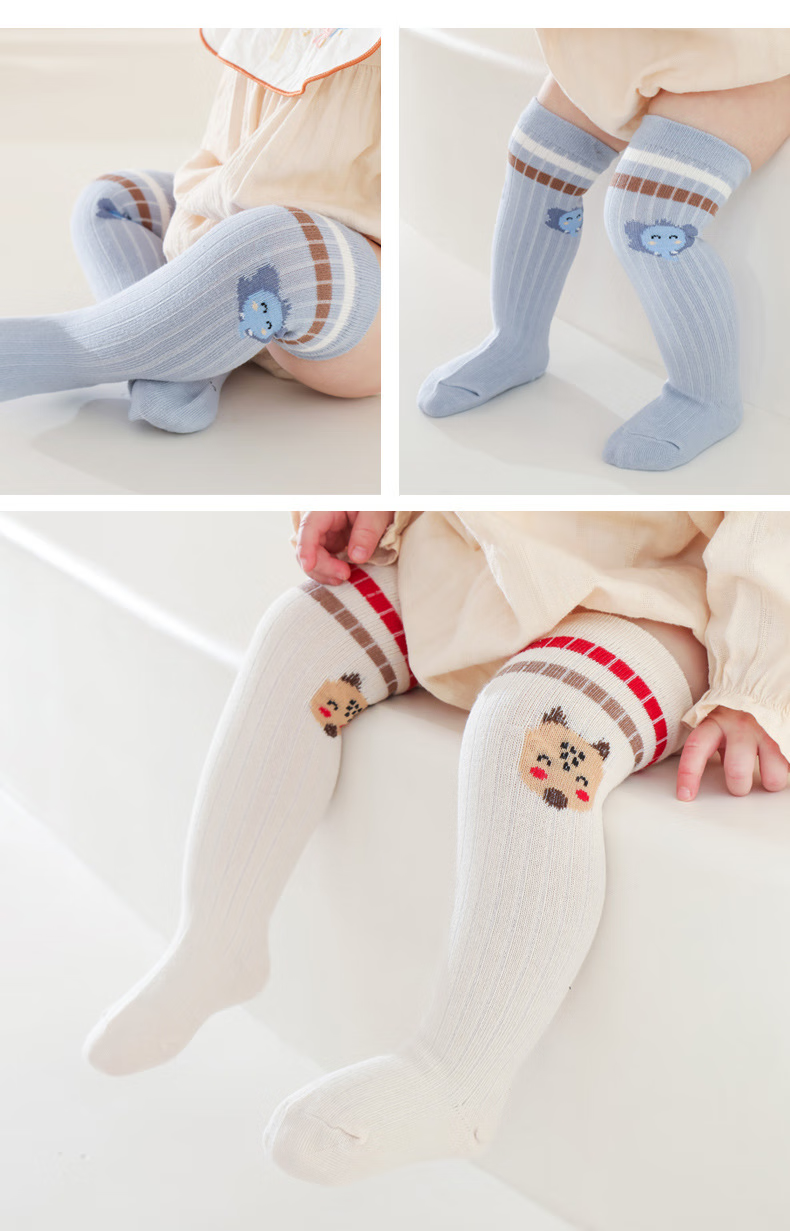 boxbaby婴儿中筒袜春秋棉袜子新生儿宝宝袜高筒袜婴幼儿长袜松口不勒腿 女宝3双装(猫咪 狐狸 小熊) M码(推荐1-3岁)