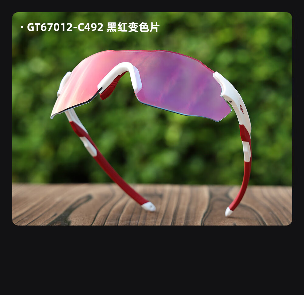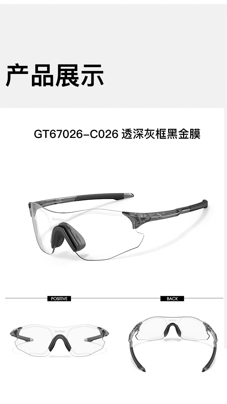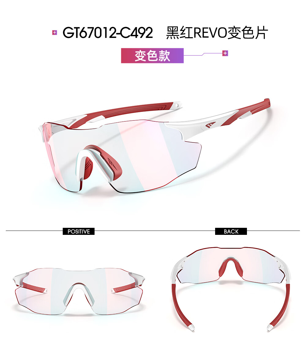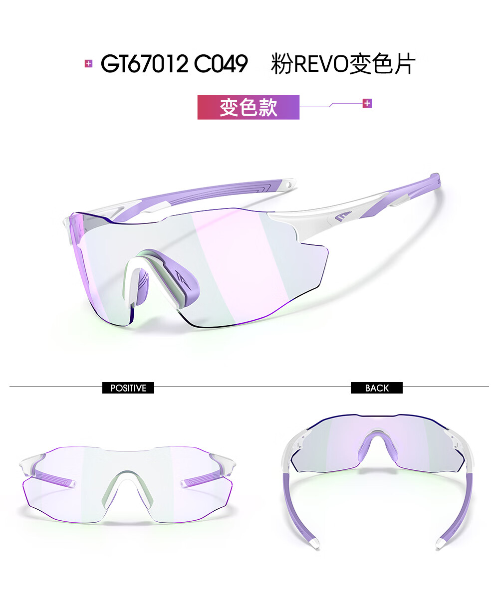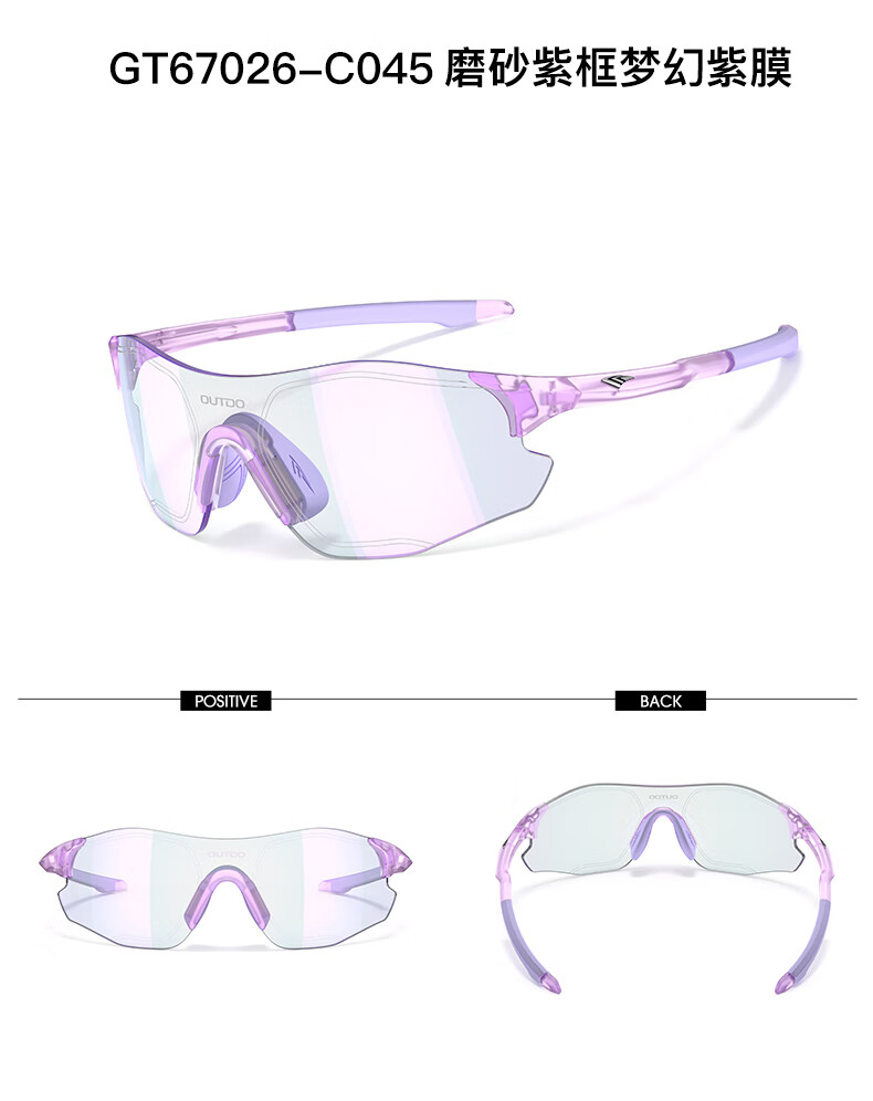 高特(OUTDO)跑步眼镜马拉松男女防紫外线护目镜登山偏光运动太阳镜变色墨镜 变色款GT67012-C049白框粉紫
