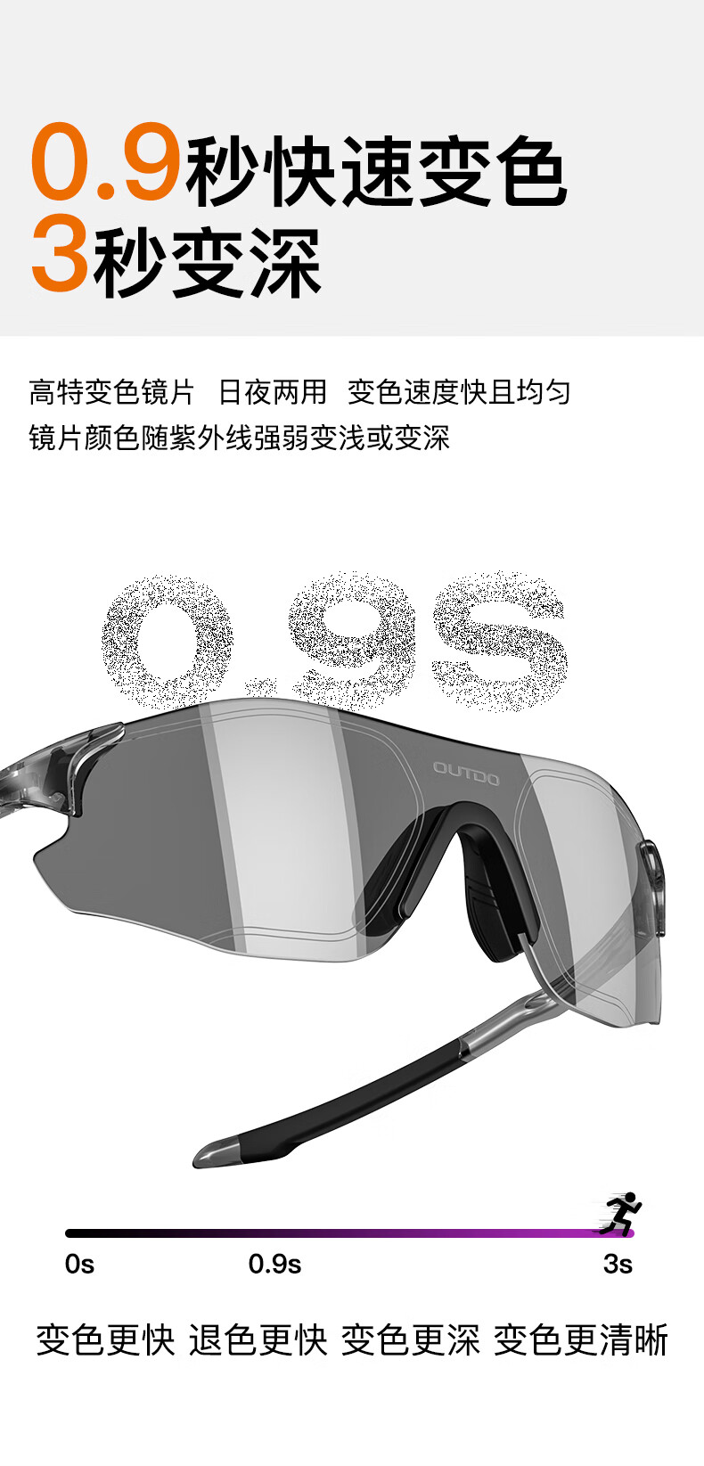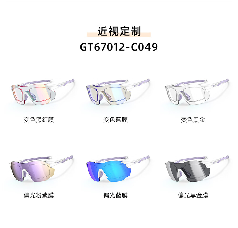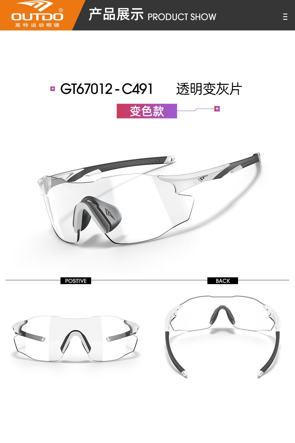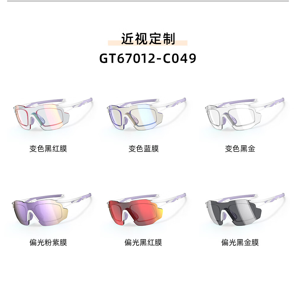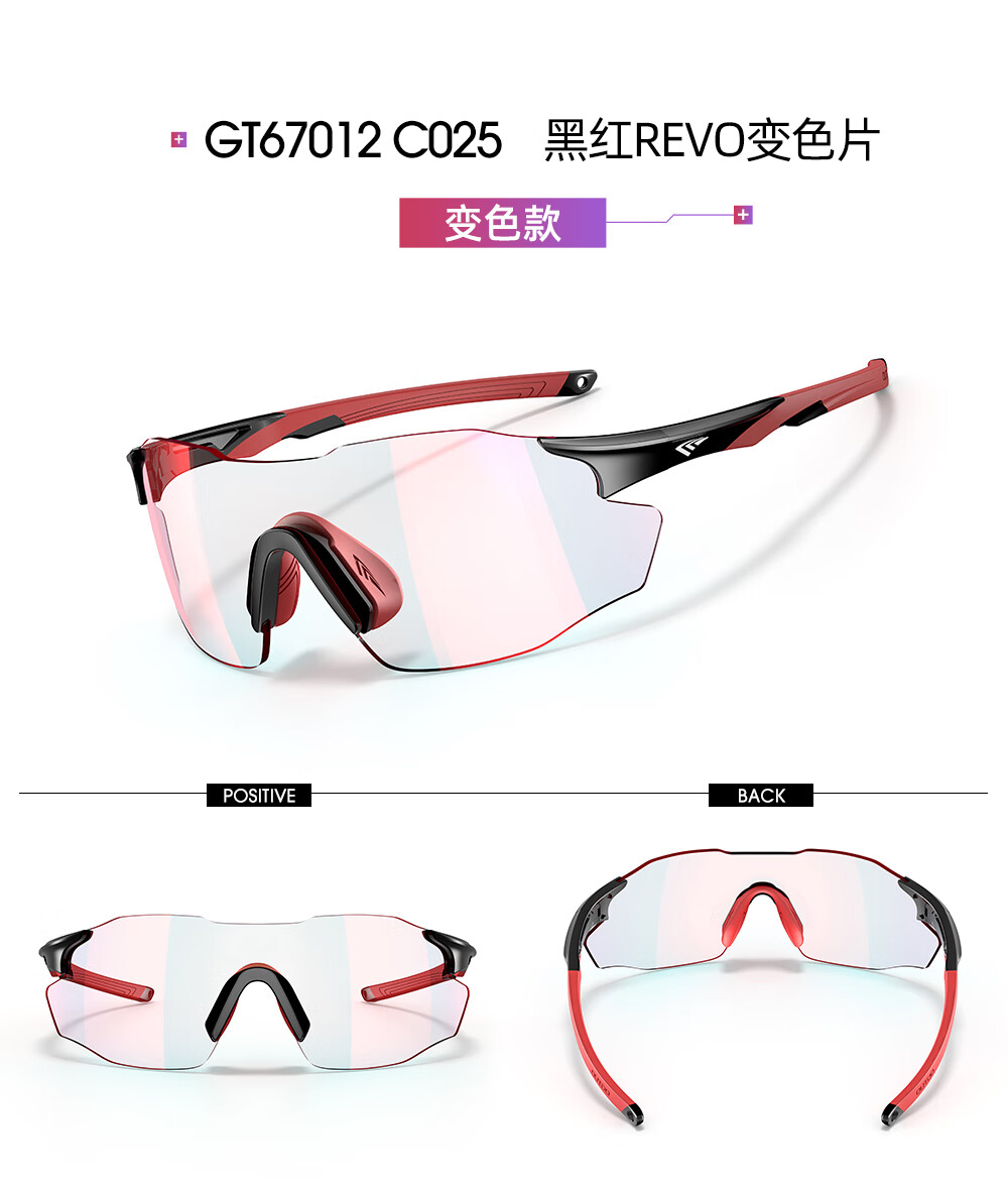 高特(OUTDO)跑步眼镜马拉松男女防紫外线护目镜登山偏光运动太阳镜变色墨镜 变色款GT67012-C049白框粉紫