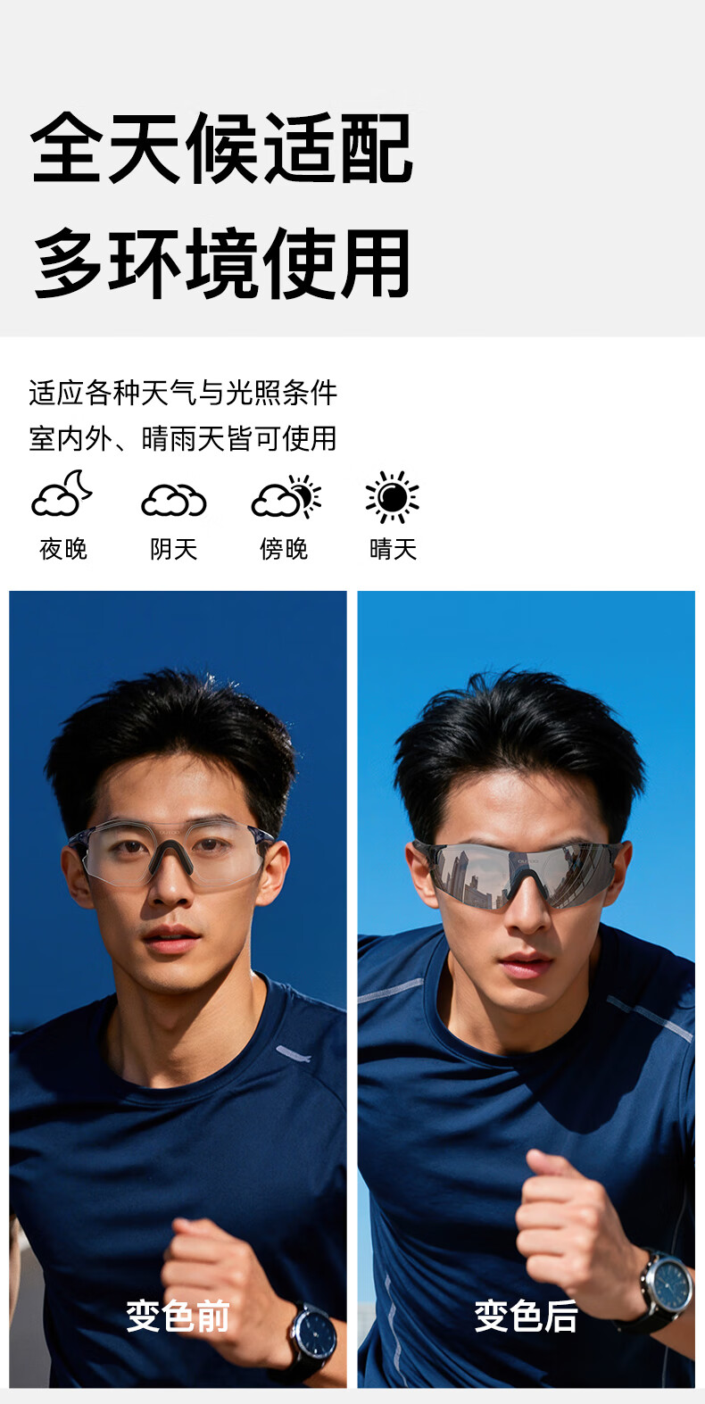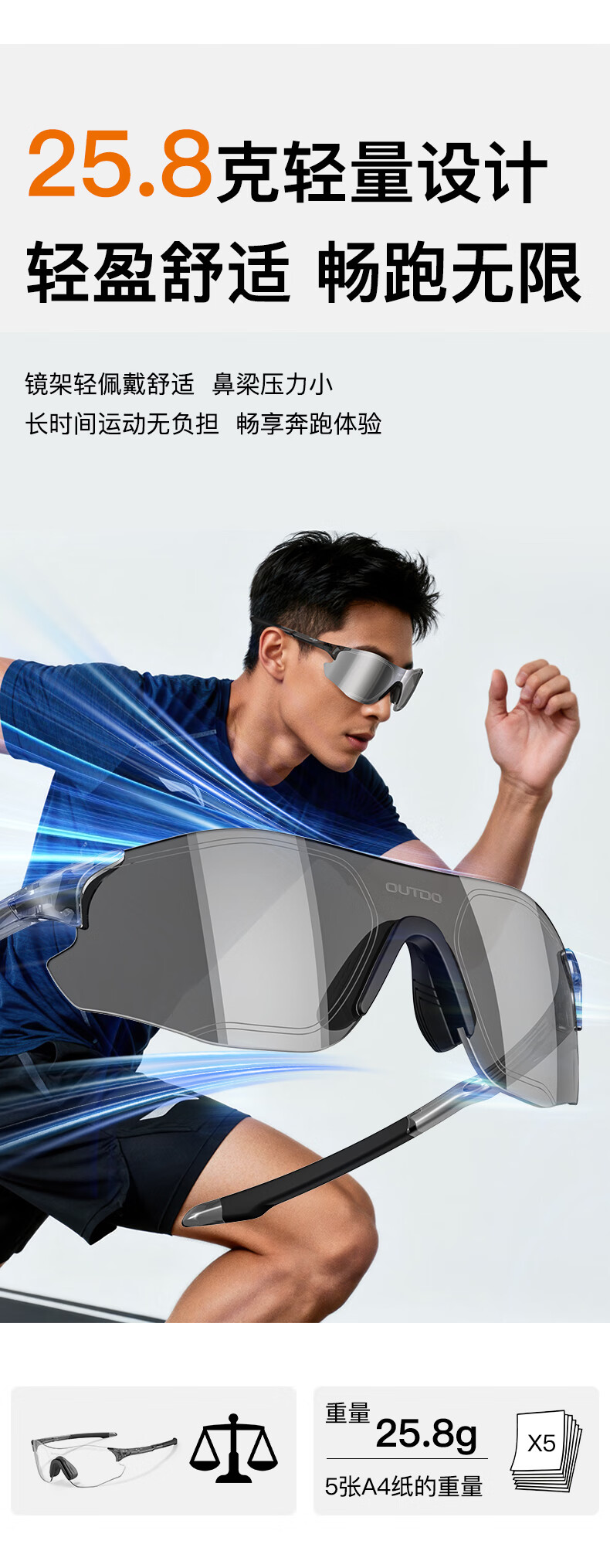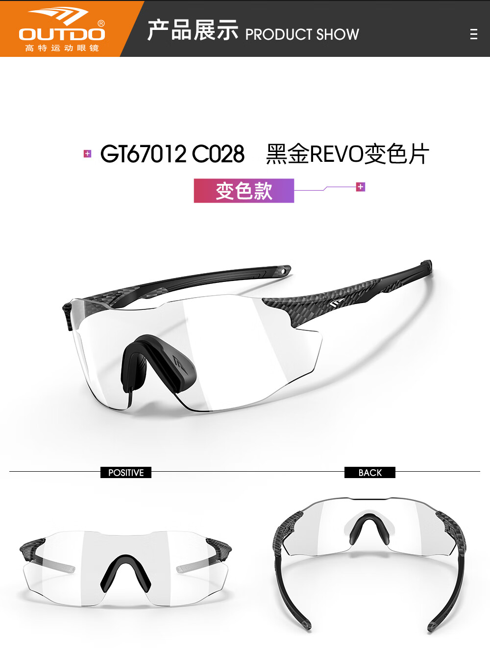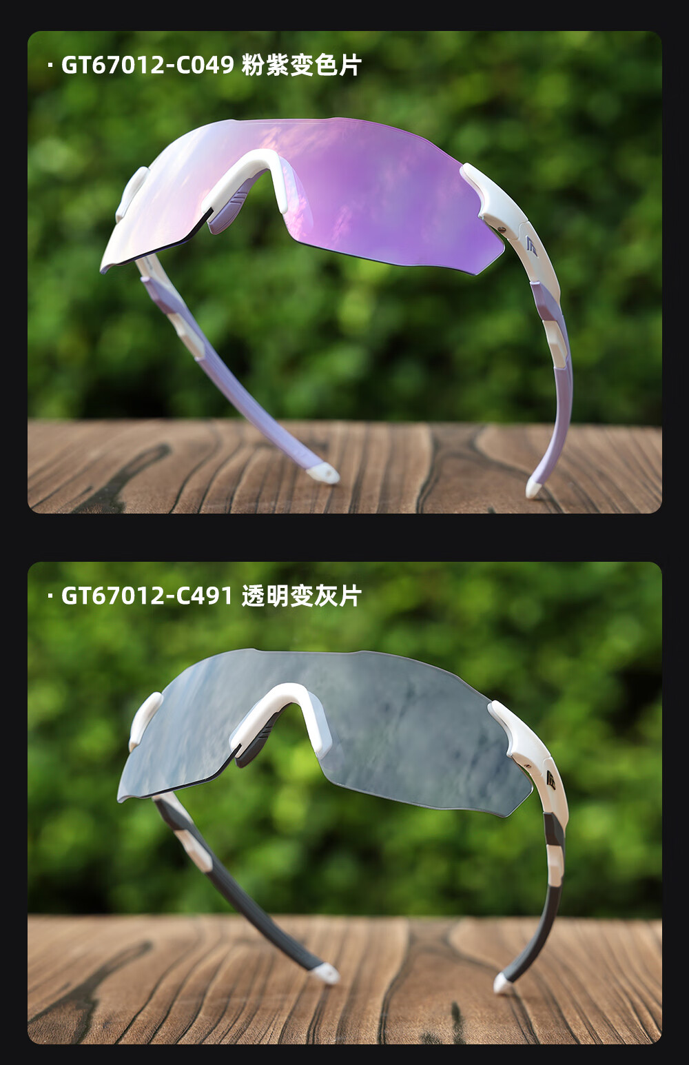 高特(OUTDO)跑步眼镜马拉松男女防紫外线护目镜登山偏光运动太阳镜变色墨镜 变色款GT67012-C049白框粉紫
