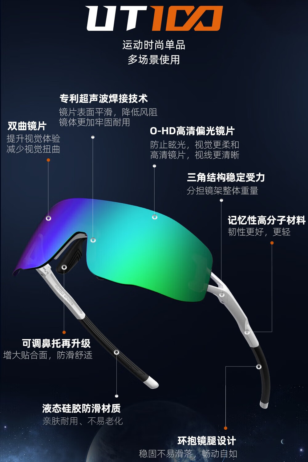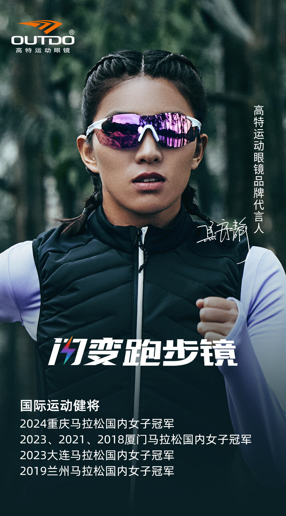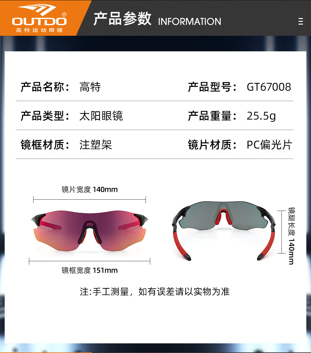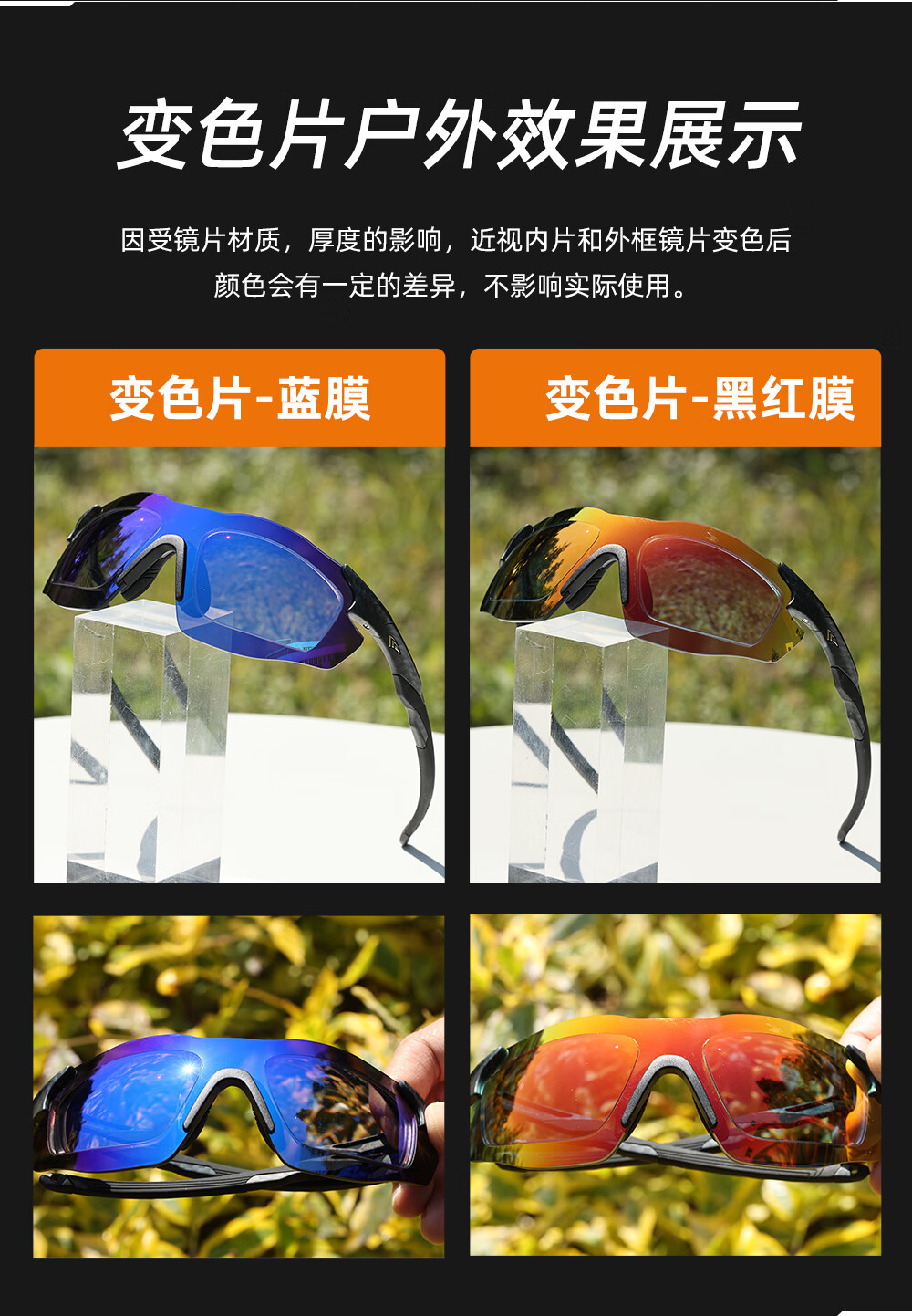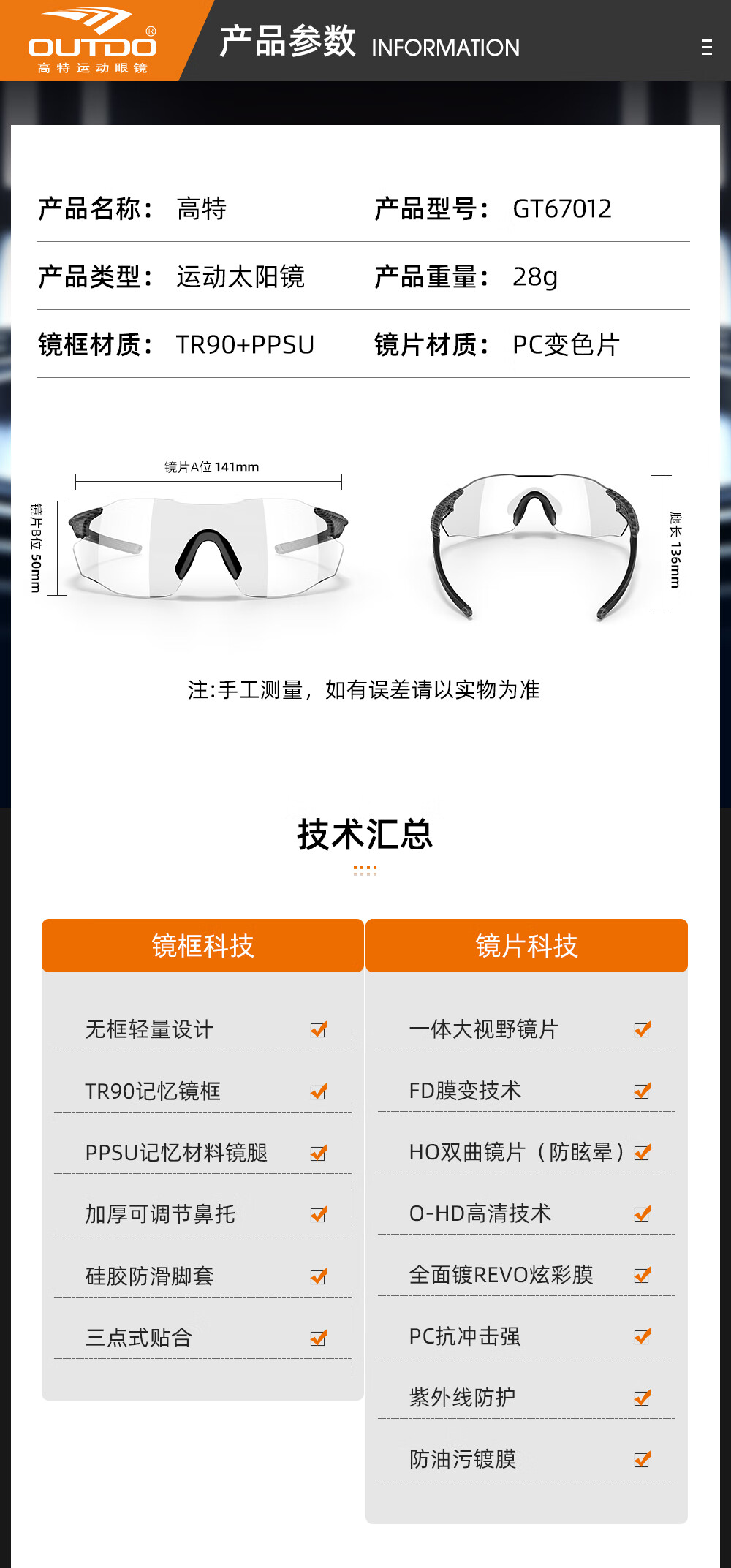 高特(OUTDO)跑步眼镜马拉松男女防紫外线护目镜登山偏光运动太阳镜变色墨镜 变色款GT67012-C049白框粉紫